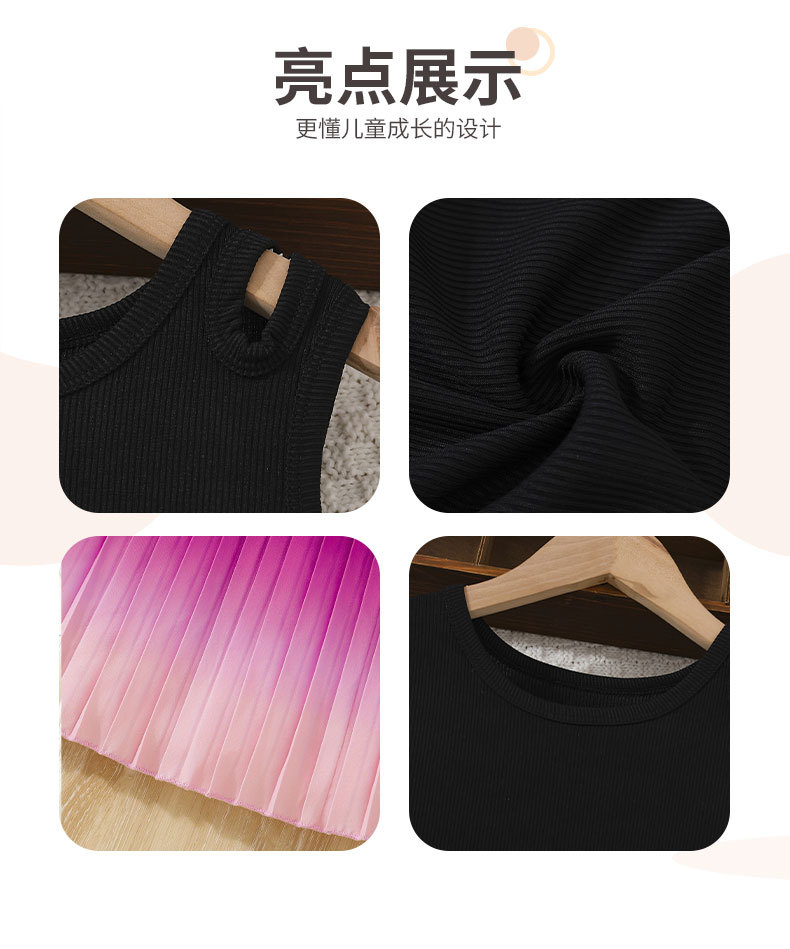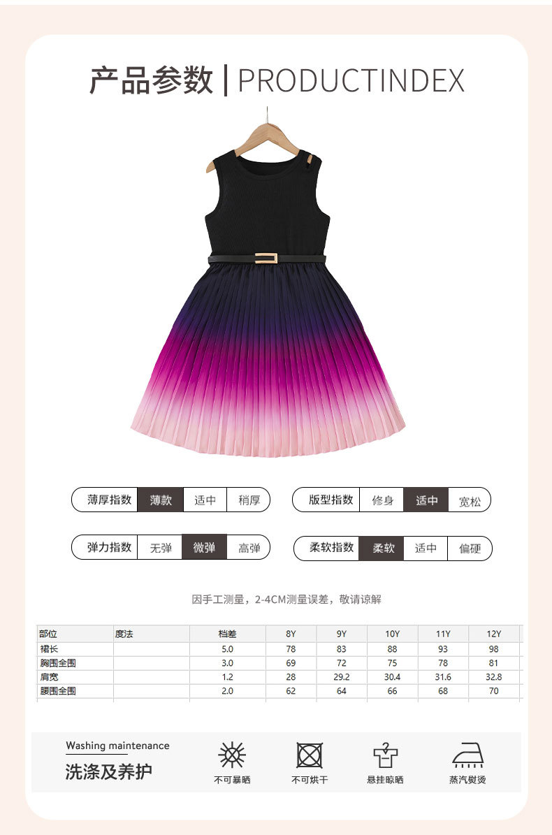 패셔너블한 중대형 아동용 그라데이션 컬러 캐미솔 신축성 있는 허리 주름 롱 스커트 패셔너블한 벨트 민소매 여아 드레스스토어 가기