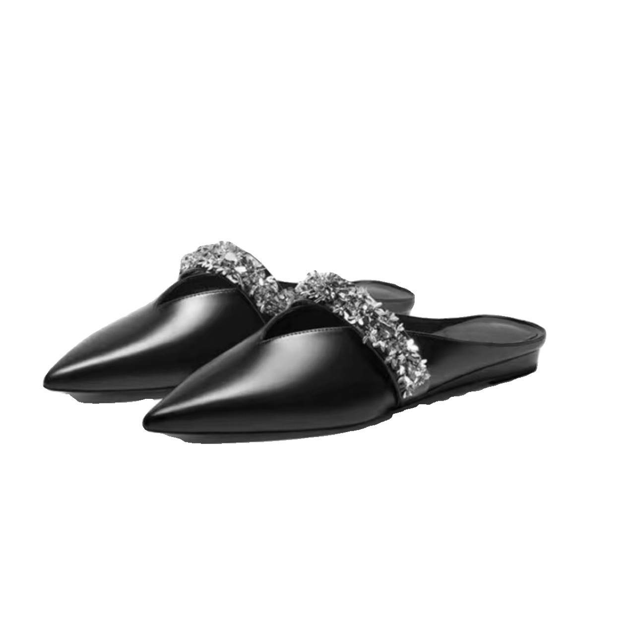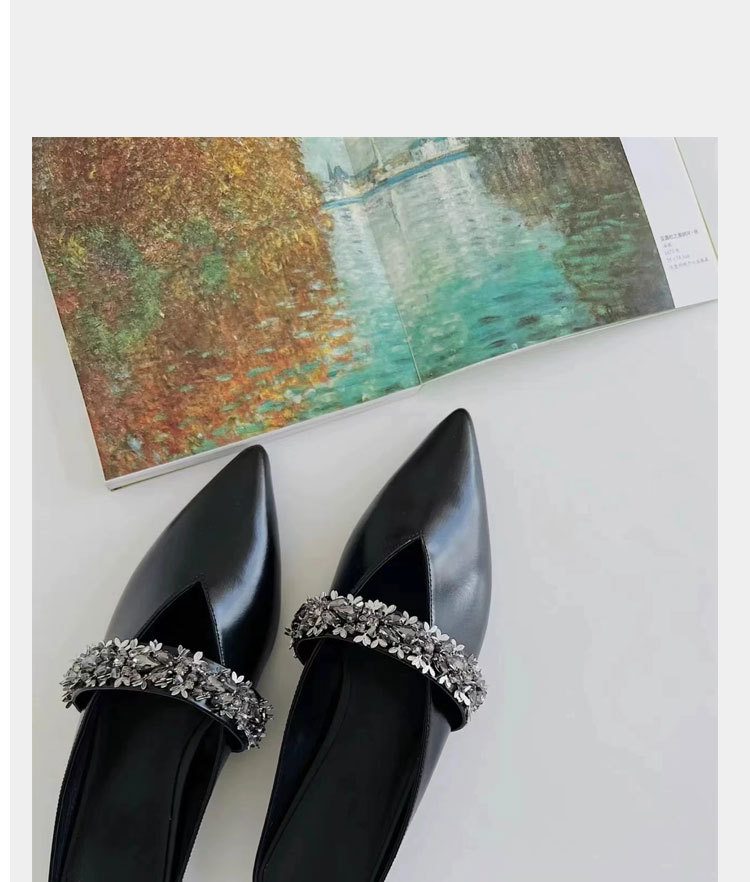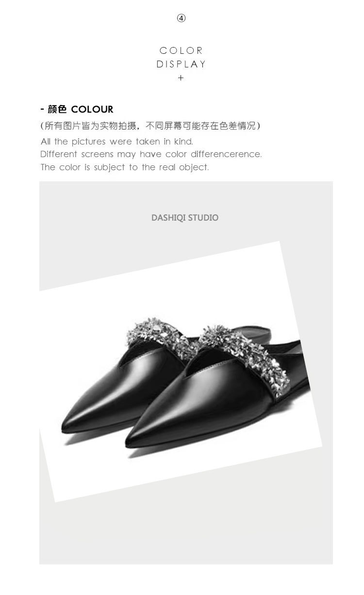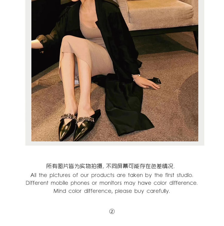 Zhao Lusi의 같은 스타일 Baotou 슬리퍼 여성용 뮬러 신발 메이플 리프 V 모조 다이아몬드 포인티드 토 플랫 바닥 복고풍 프렌치 슈즈스토어 가기