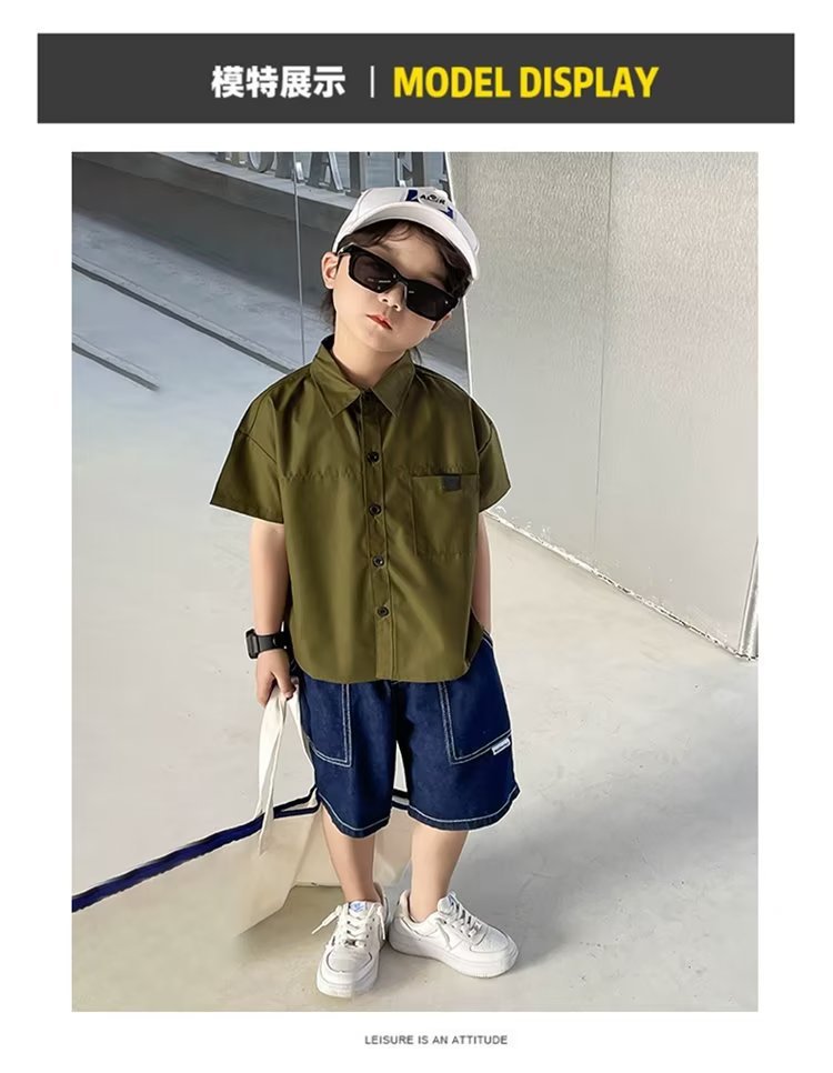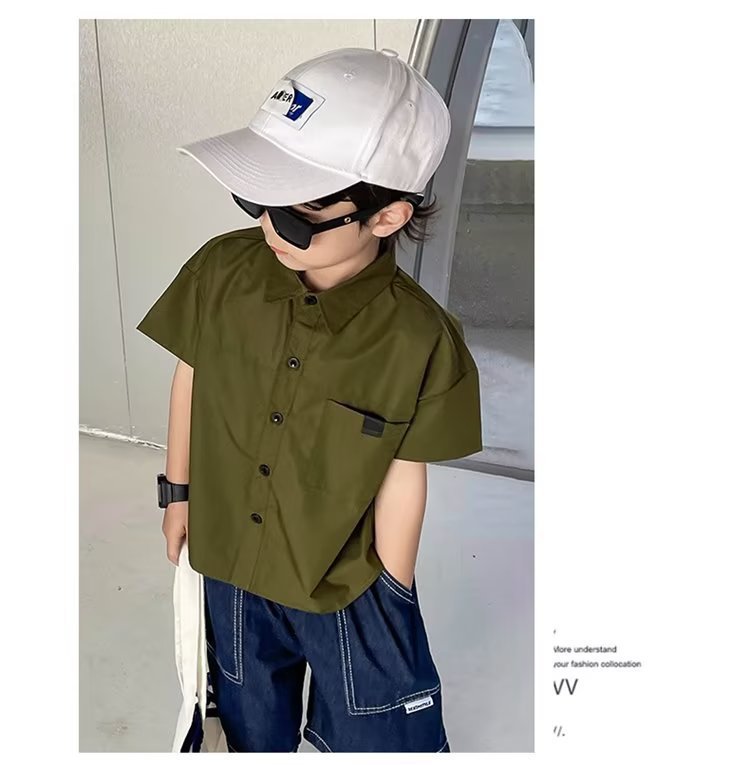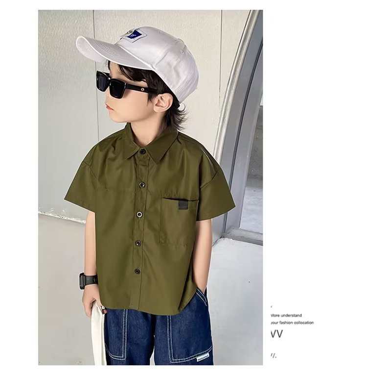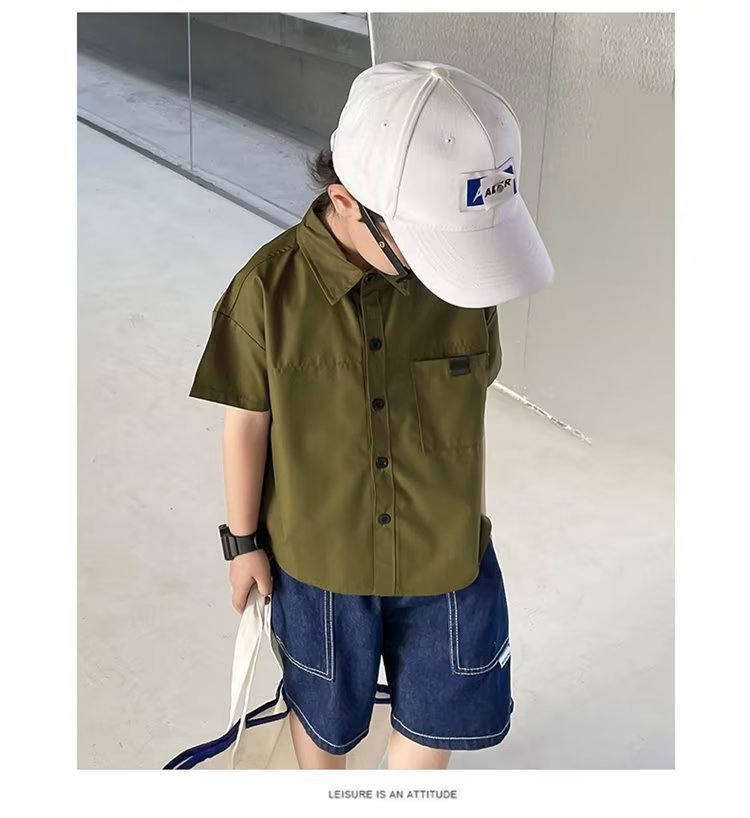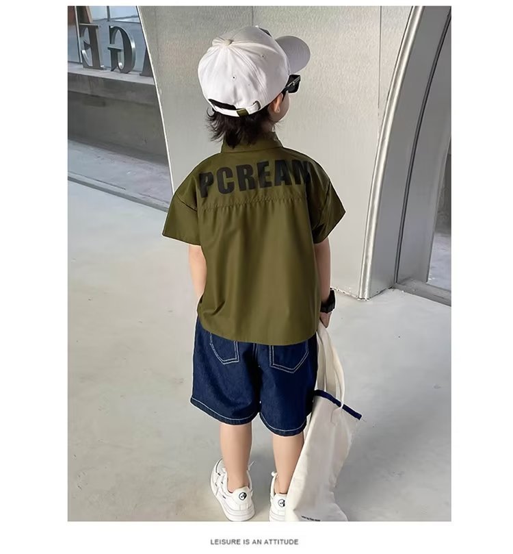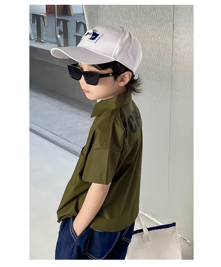 여름 아동용 반팔 셔츠, 멋스럽고 얇고 트렌디한 중대형 아동용 다용도 상의, 남성용 일본식 작업복 루즈 셔츠스토어 가기
