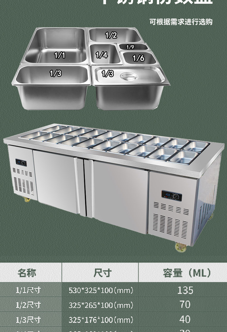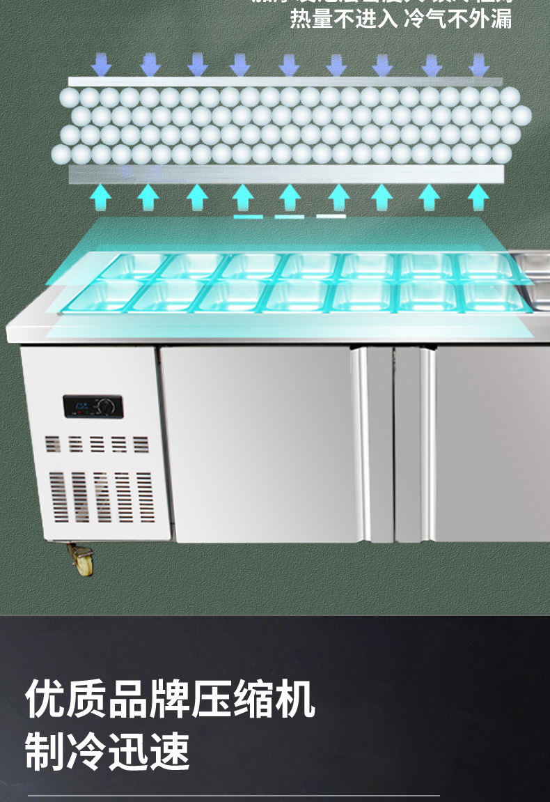 작은 야채 냉장고 상업용 스프레이 스테인레스 스틸 슬롯 샐러드 테이블 냉장 피자 작업대 과일 디스플레이 캐비닛