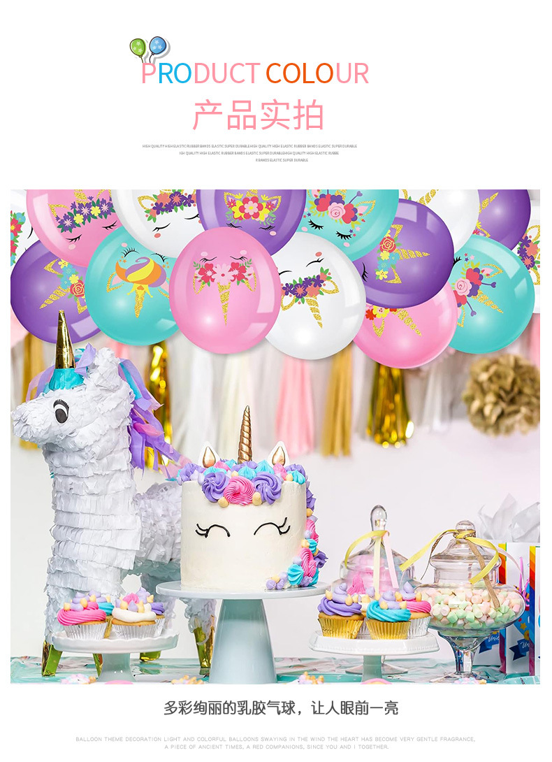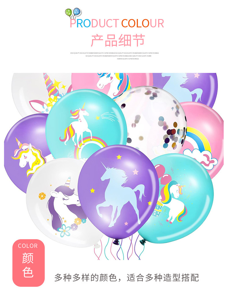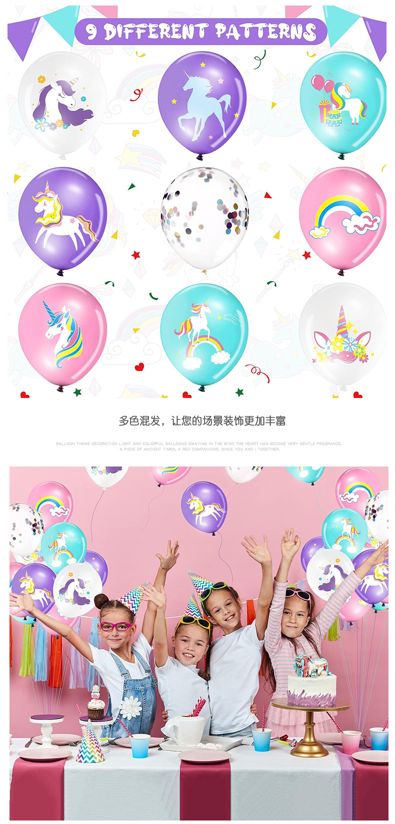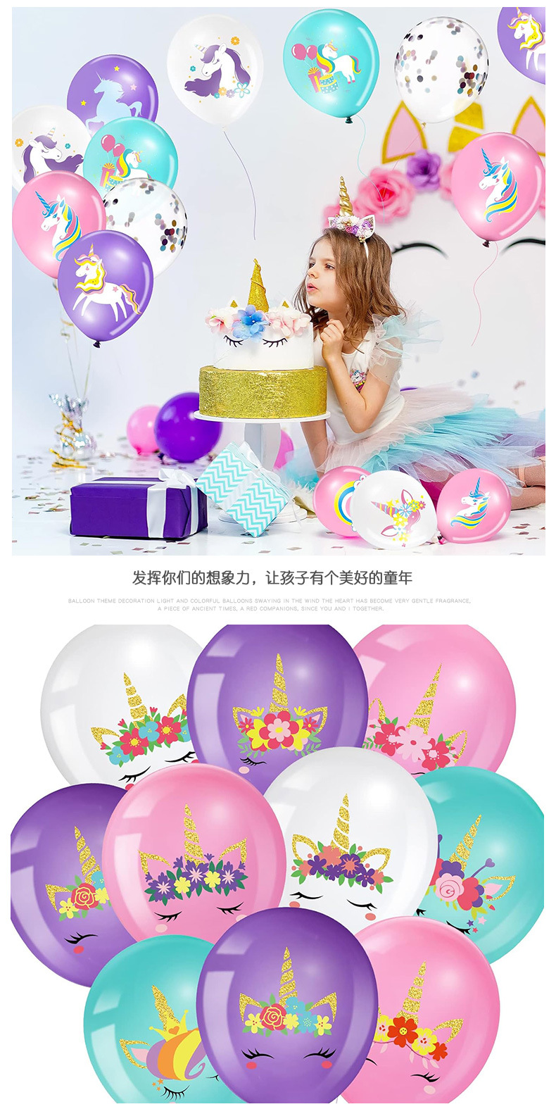 유니콘 테마 풍선 생일 파티 장식 장면 레이아웃 용품 12inch 라텍스 만화 풍선 세트