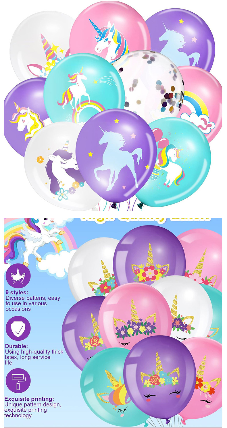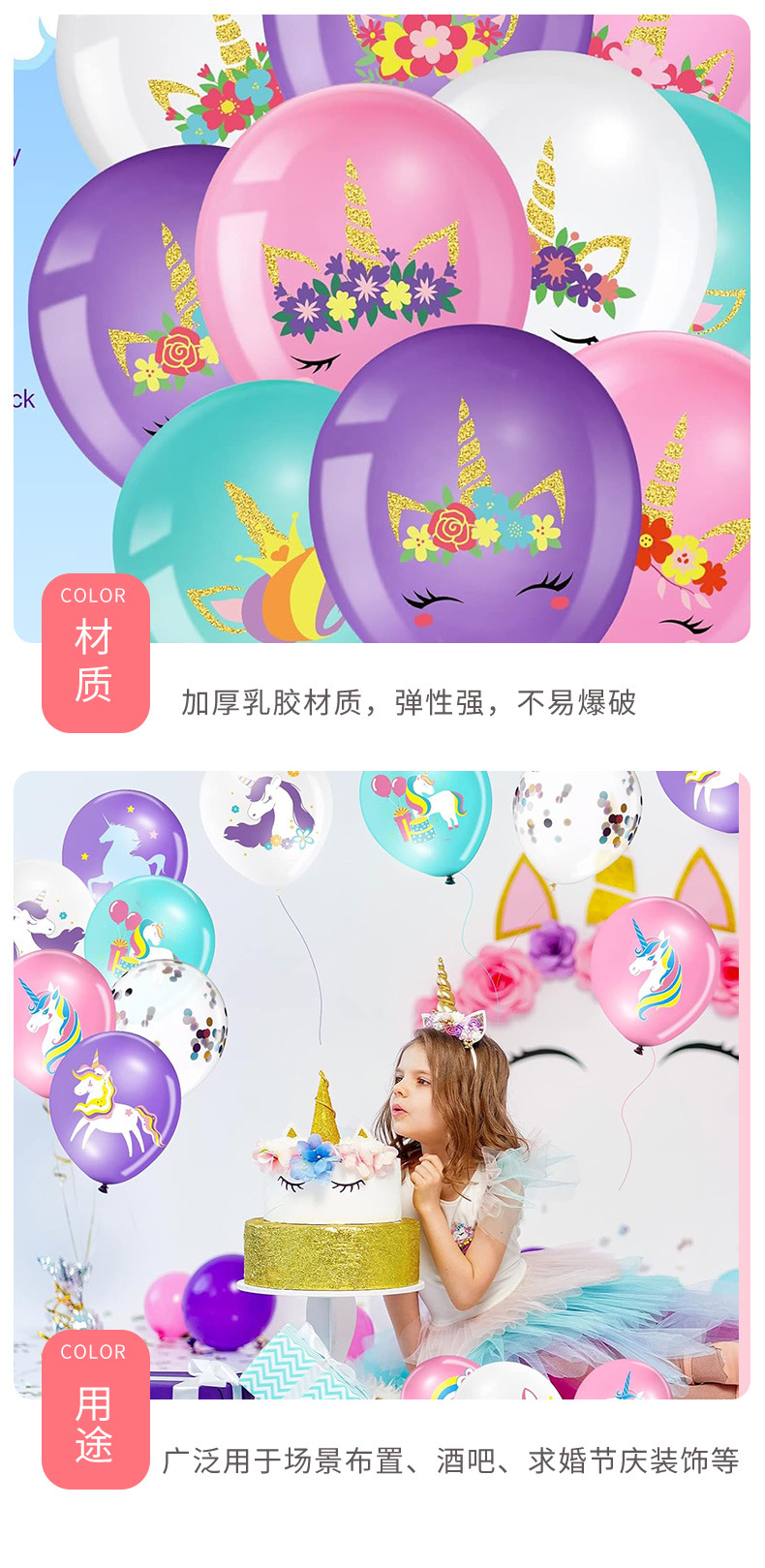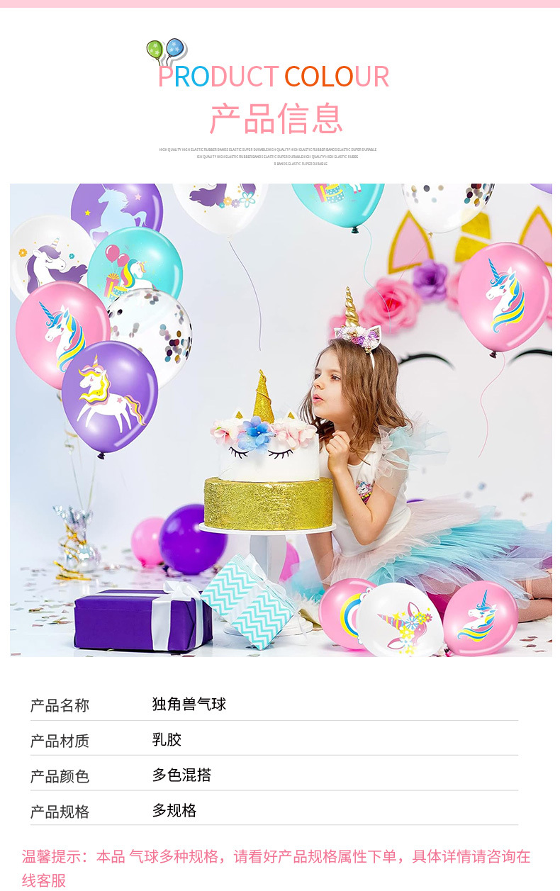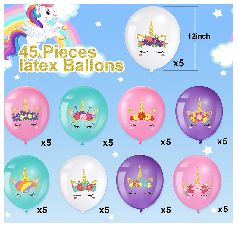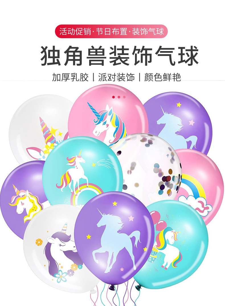 유니콘 테마 풍선 생일 파티 장식 장면 레이아웃 용품 12inch 라텍스 만화 풍선 세트