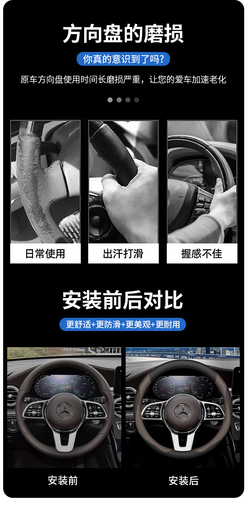 메르세데스-벤츠 스티어링 휠 커버 정품 가죽 GLC300l/GLB220 신형 E/C/A 클래스 E300L/c260l 자동차 핸들 커버스토어 가기