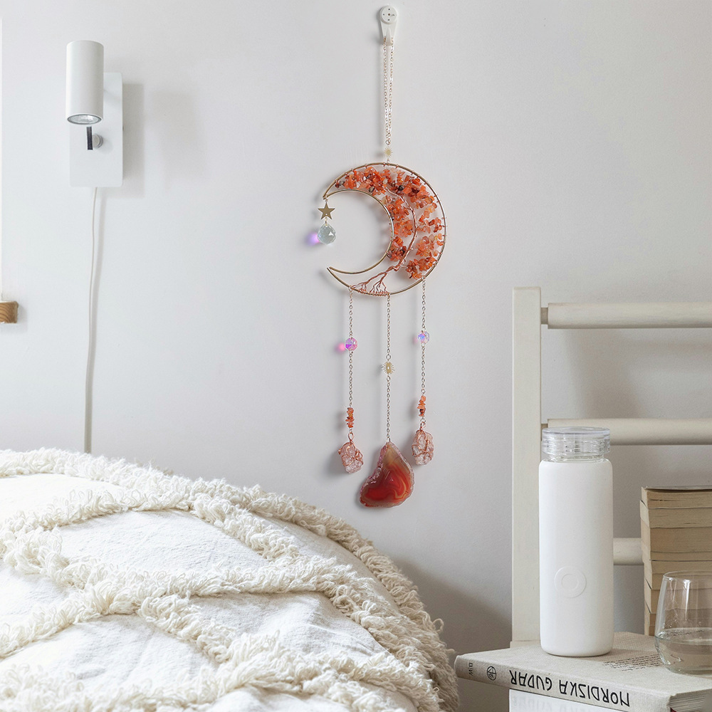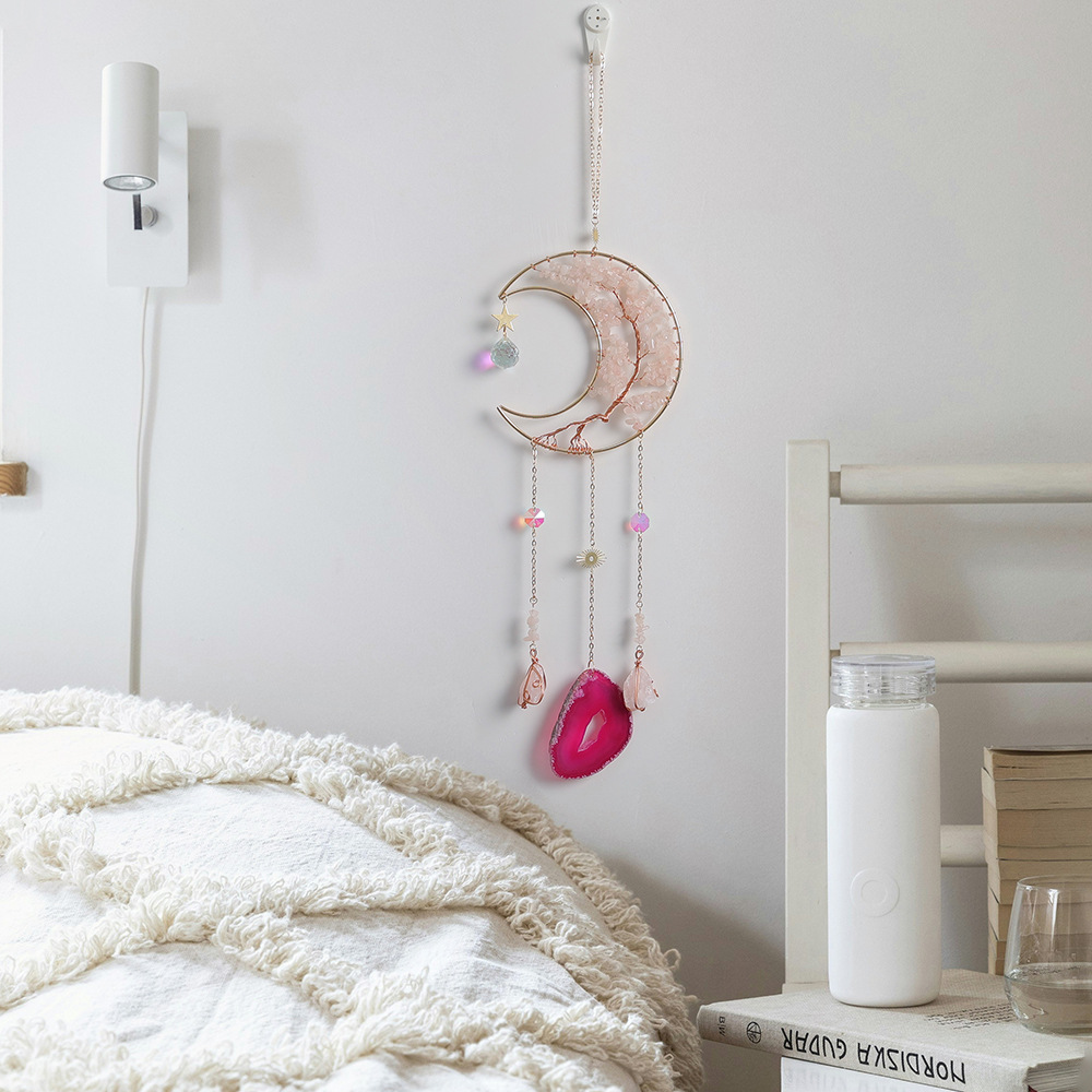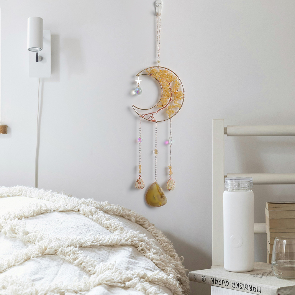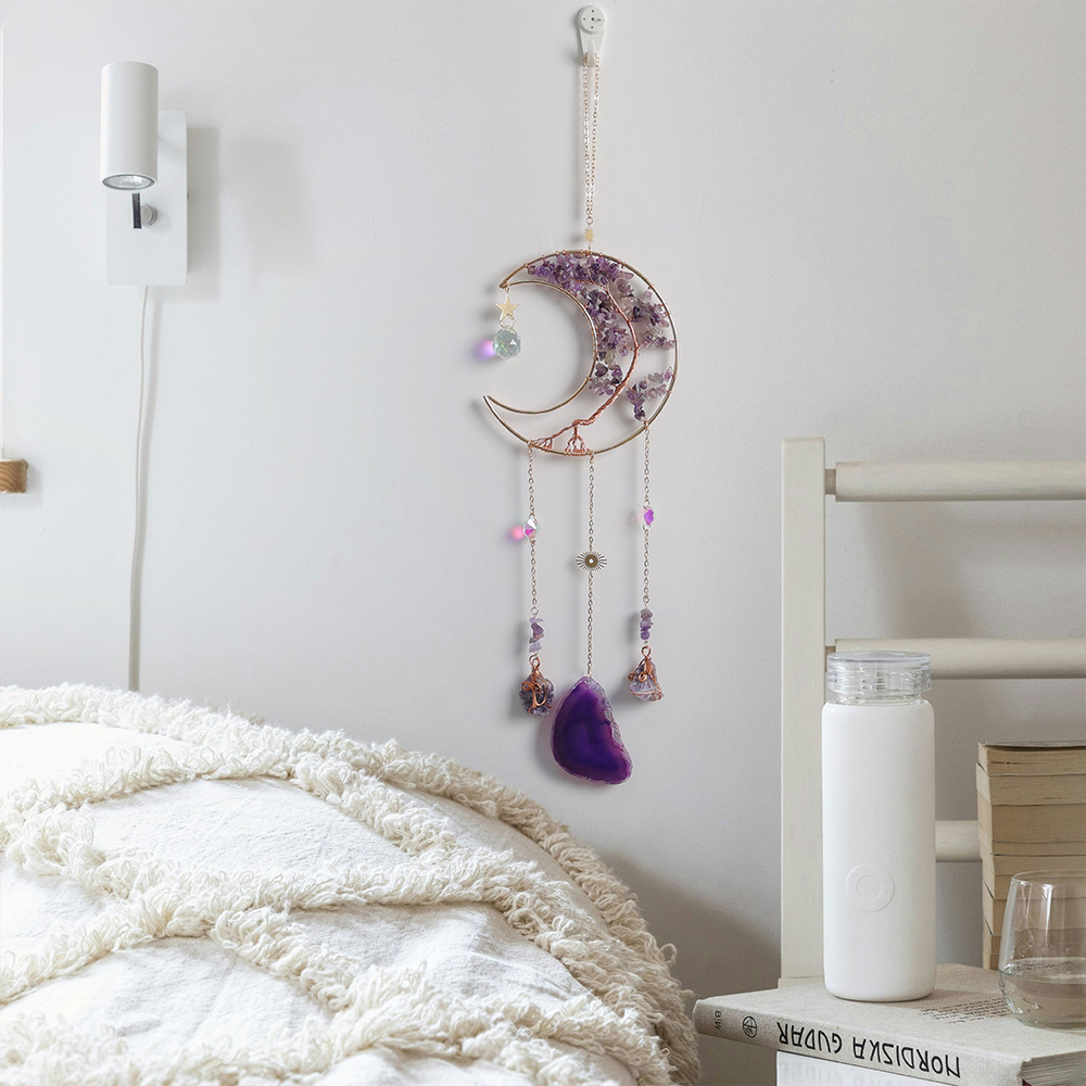 천연 크리스탈 자갈 달 바람 종소리 공예 장식 DIY 햇빛 펜던트 자수정 태양 포수