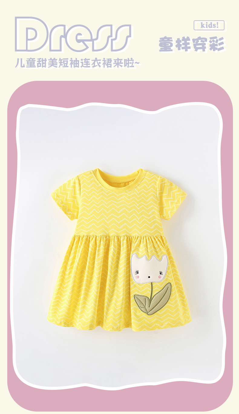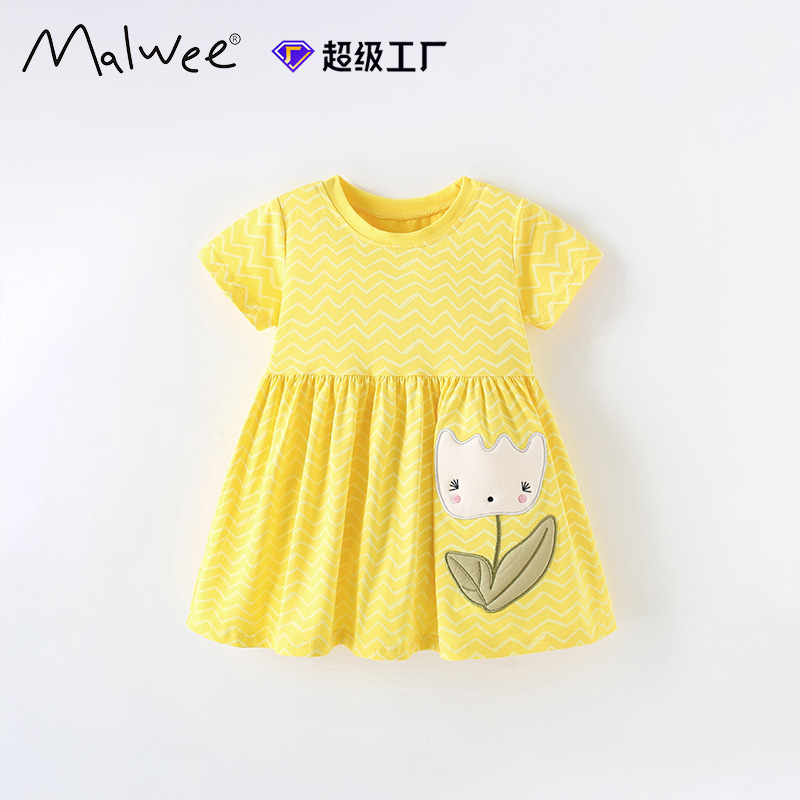 국경 간 malwee 여자 스커트 여름 라운드 넥 반팔 새로운 유럽과 미국의 어린이 스타일 어린 소녀 드레스