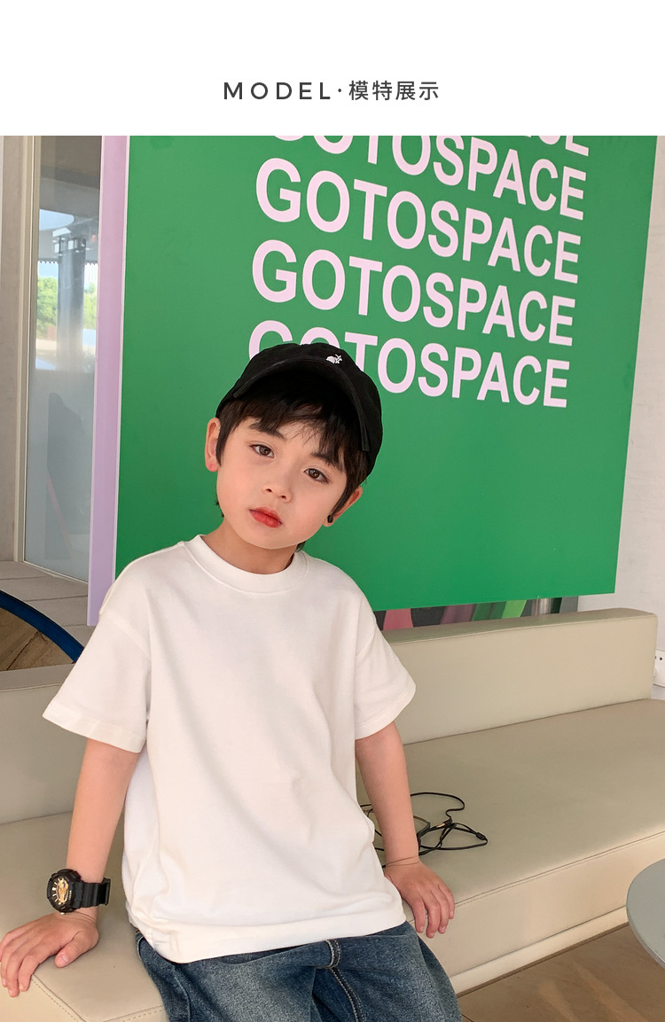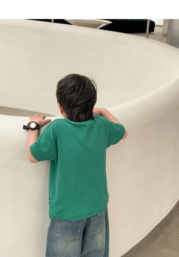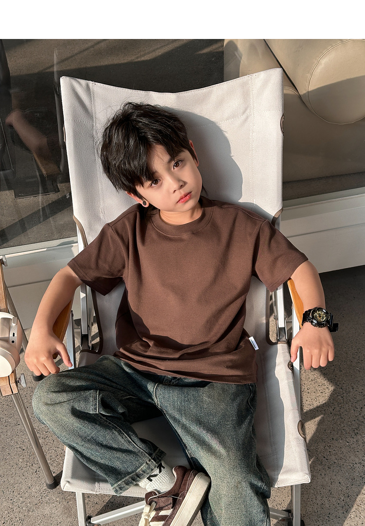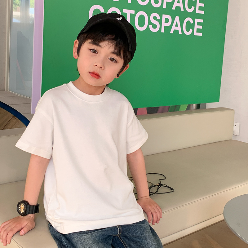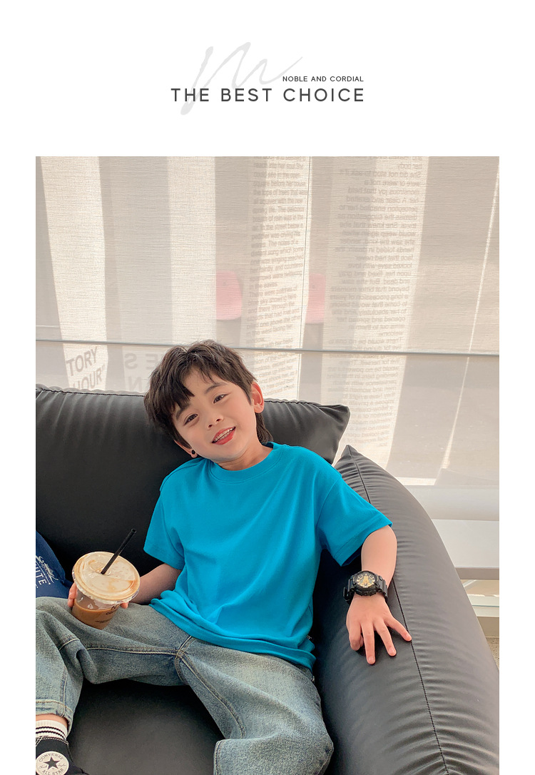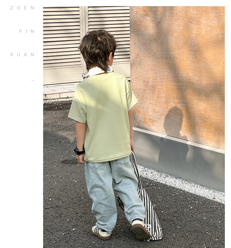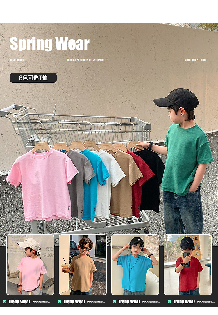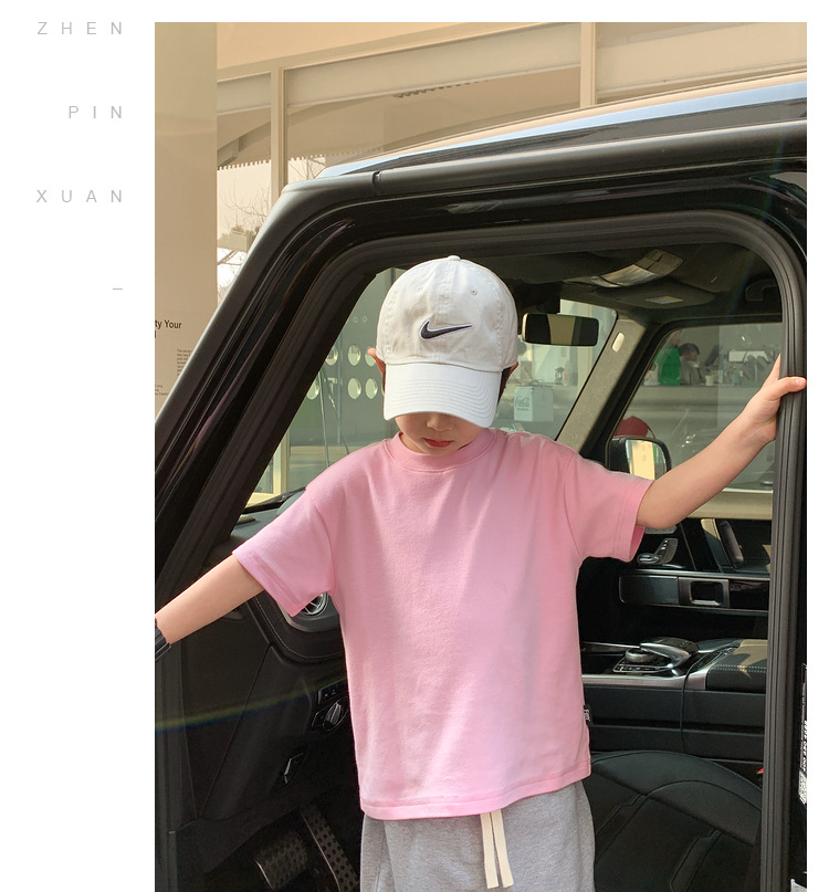 Zhenpinxuan 아동 의류 소년 반팔 티셔츠 2025 새로운 중대형 어린이 여름 솔리드 컬러 탑 어린이 반팔 여름 옷스토어 가기