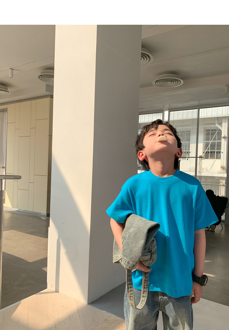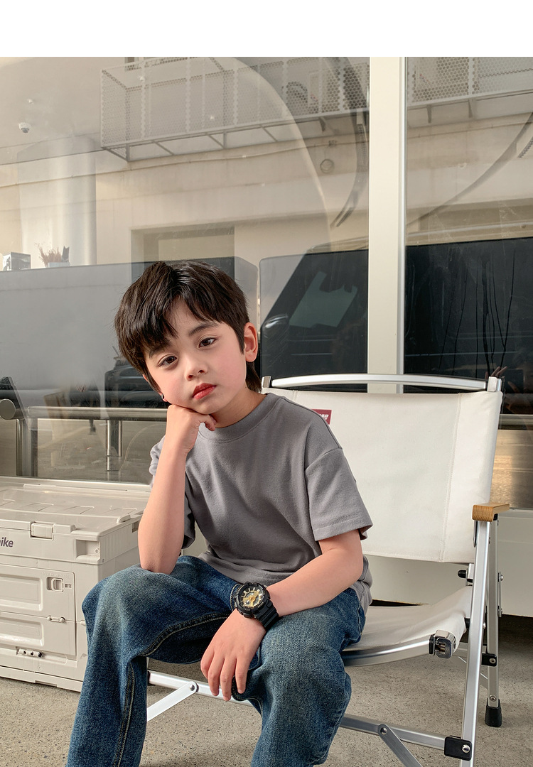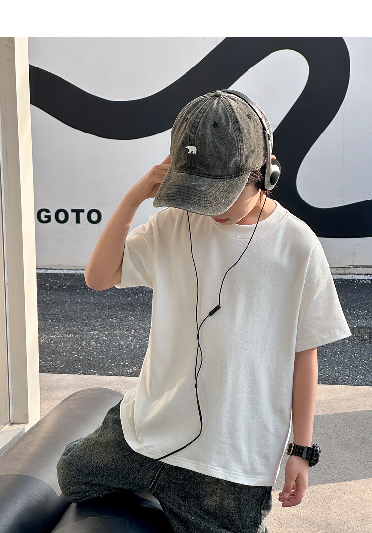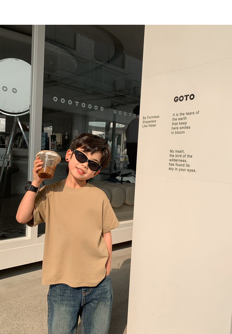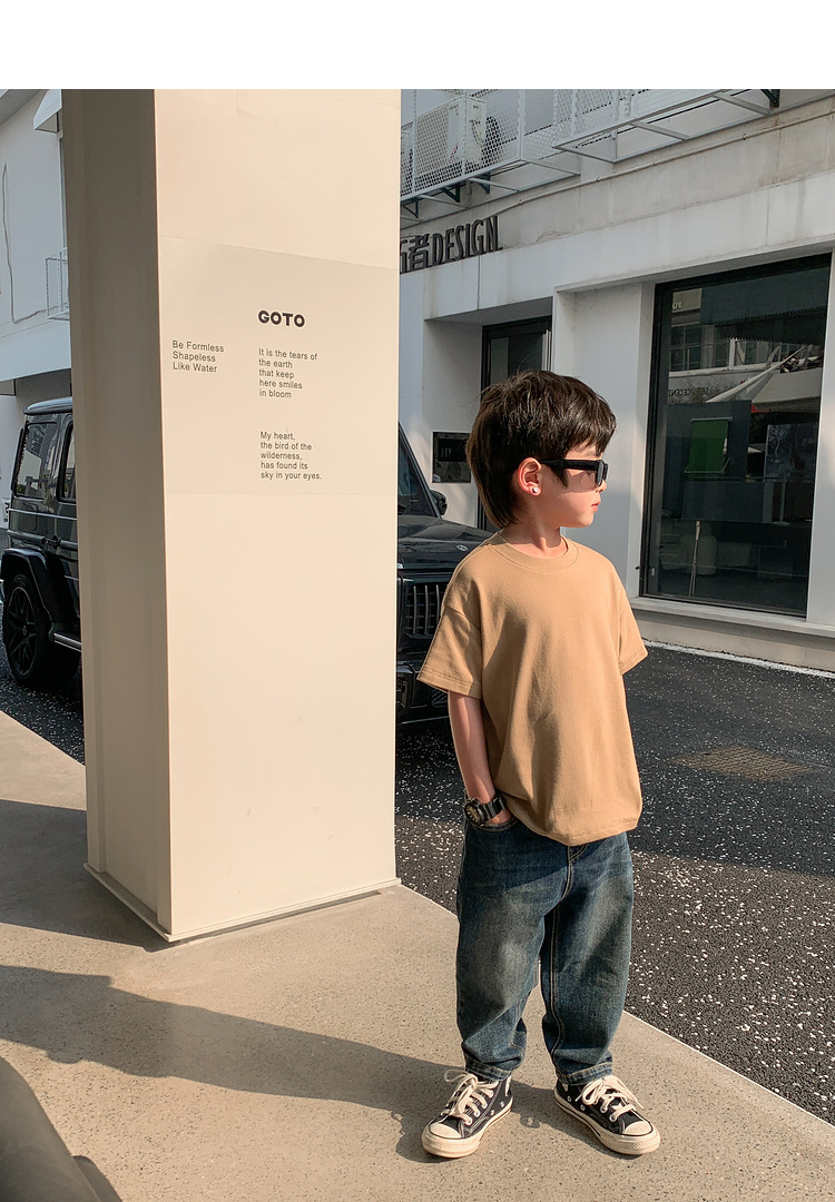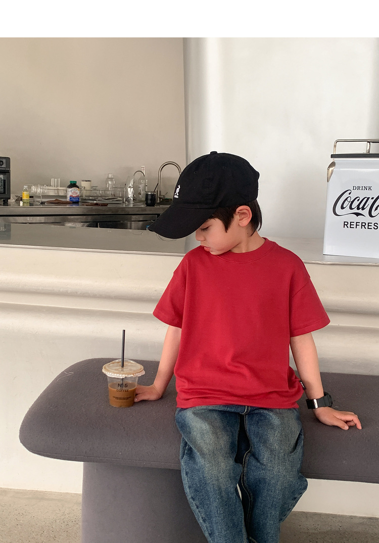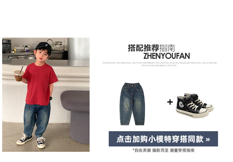 Zhenpinxuan 아동 의류 소년 반팔 티셔츠 2025 새로운 중대형 어린이 여름 솔리드 컬러 탑 어린이 반팔 여름 옷스토어 가기