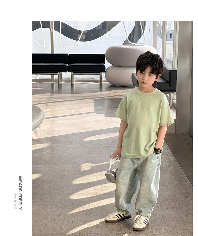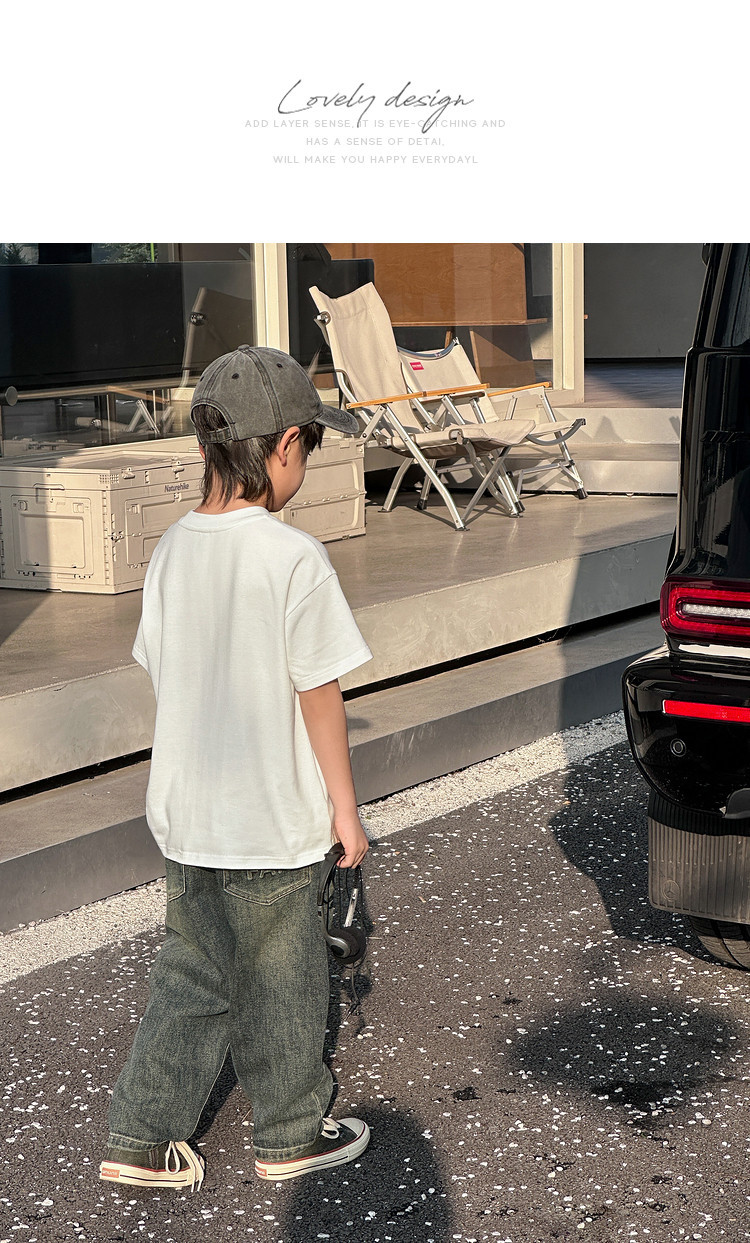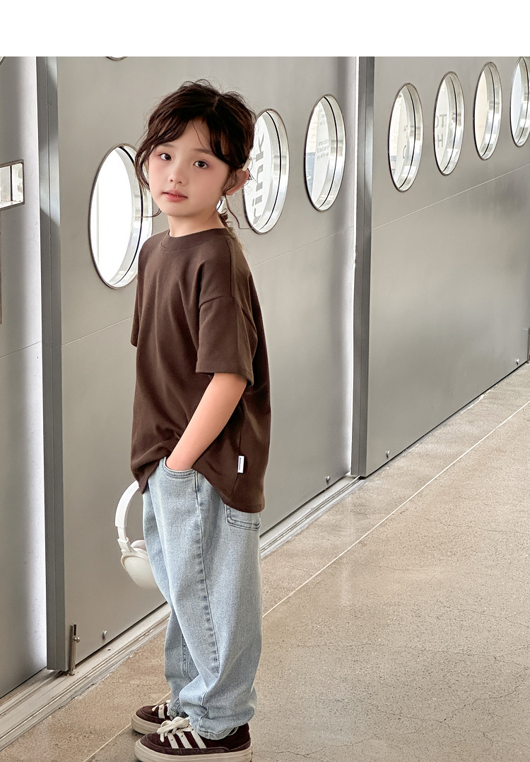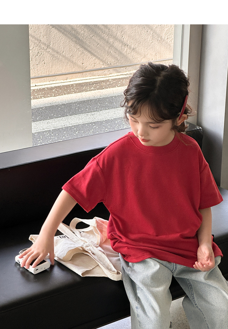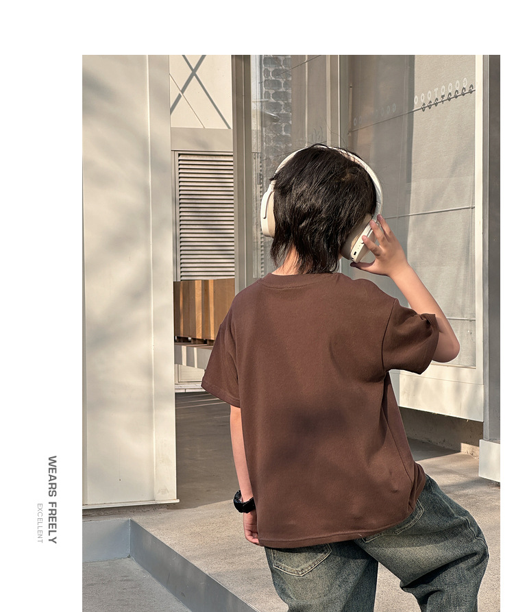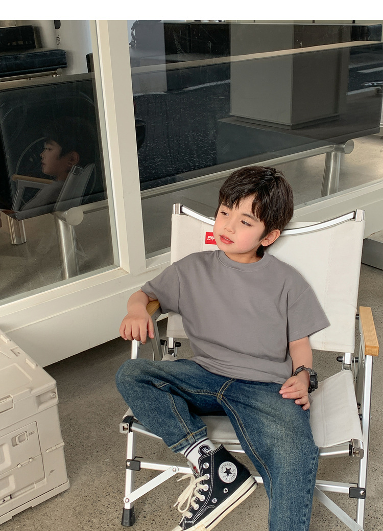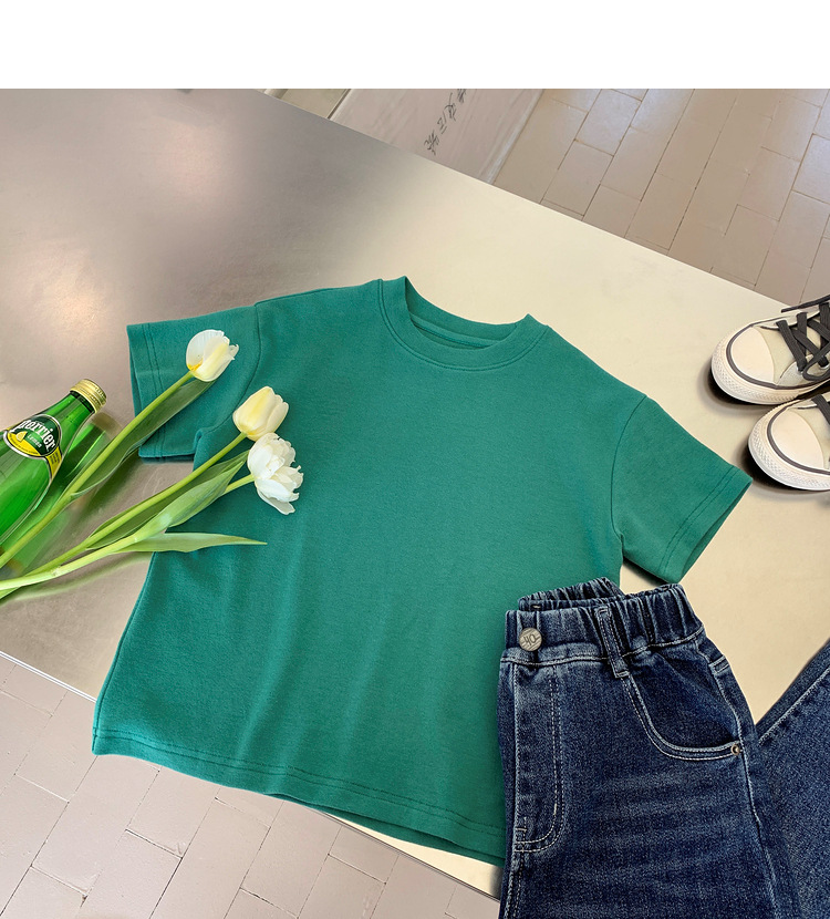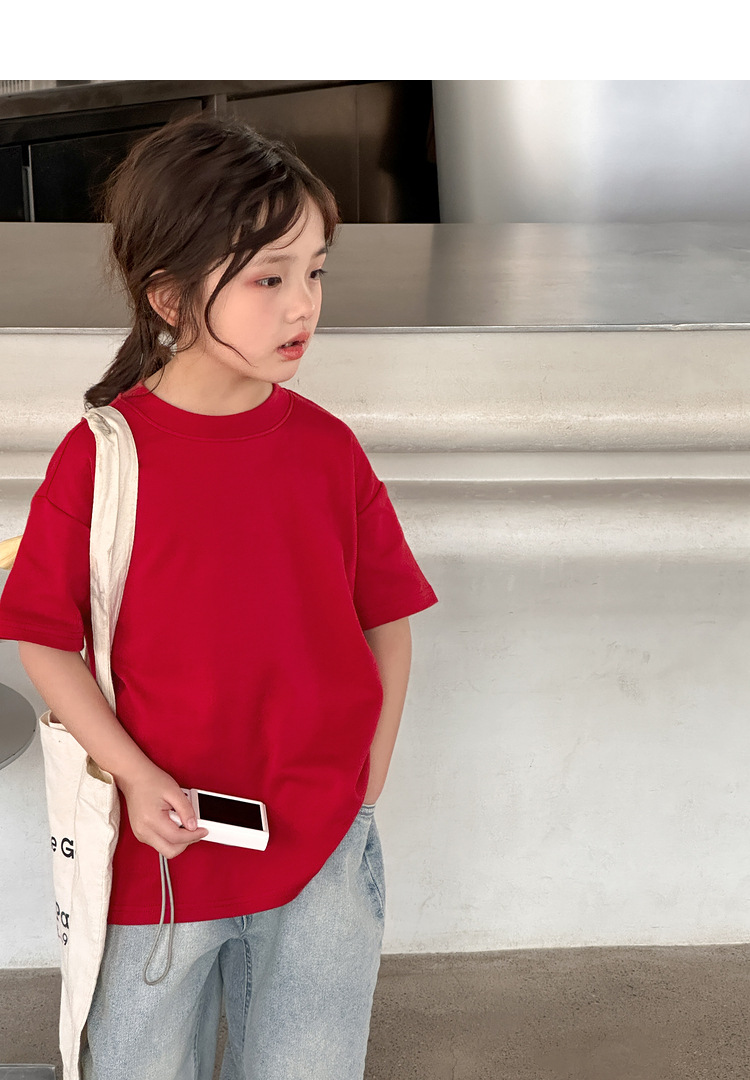 Zhenpinxuan 아동 의류 소년 반팔 티셔츠 2025 새로운 중대형 어린이 여름 솔리드 컬러 탑 어린이 반팔 여름 옷스토어 가기