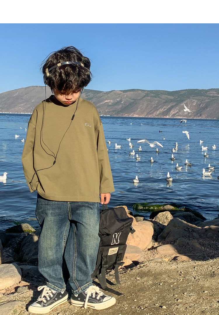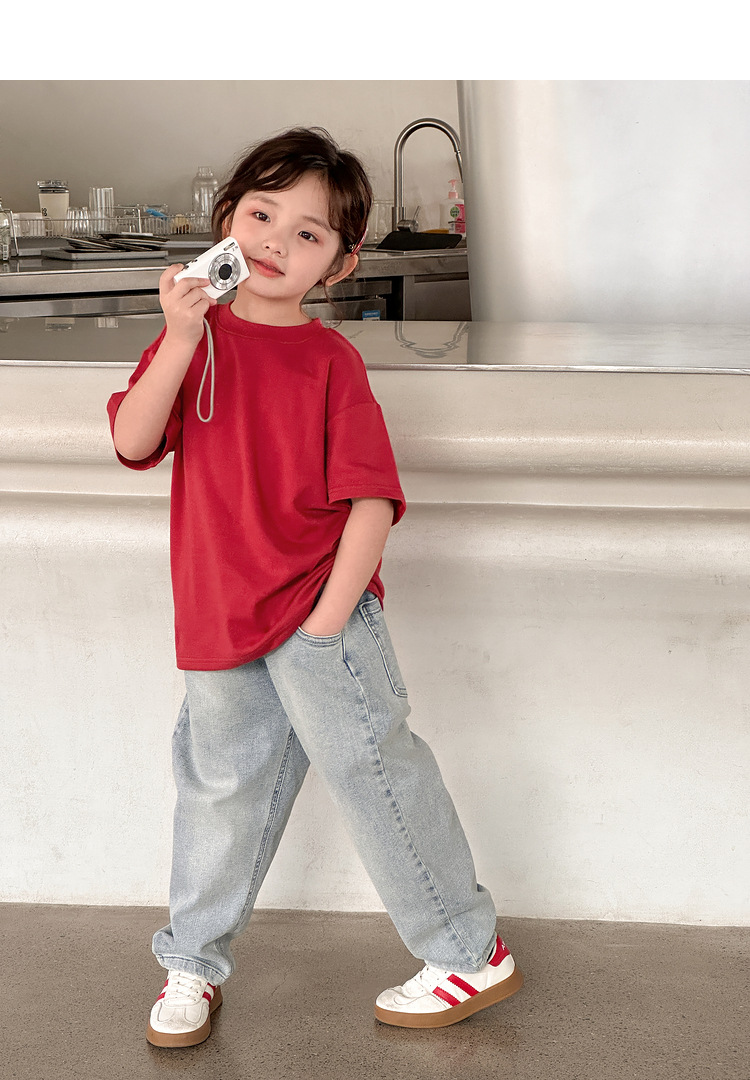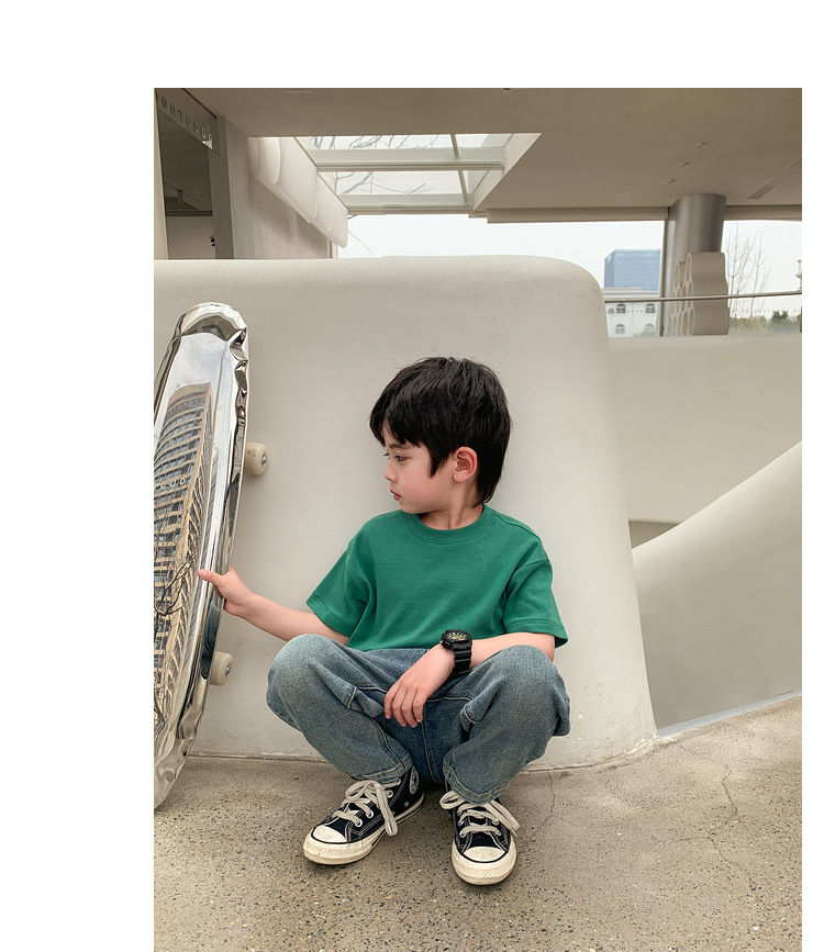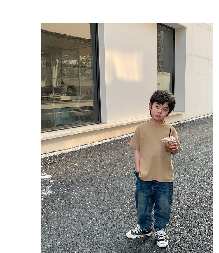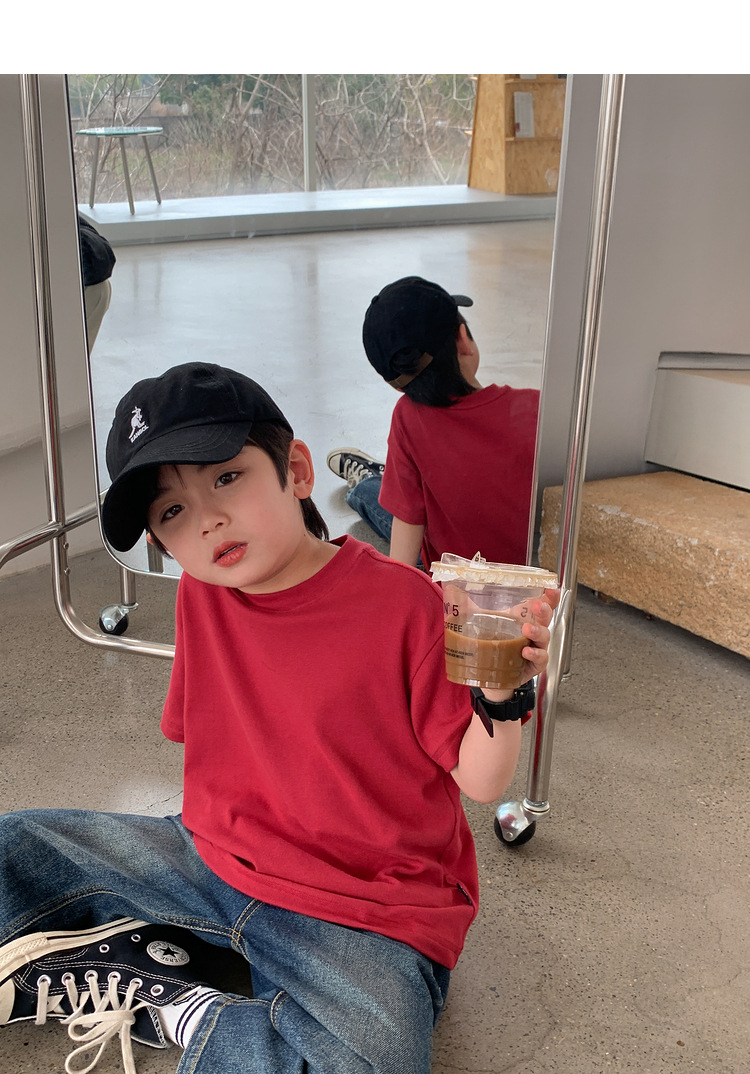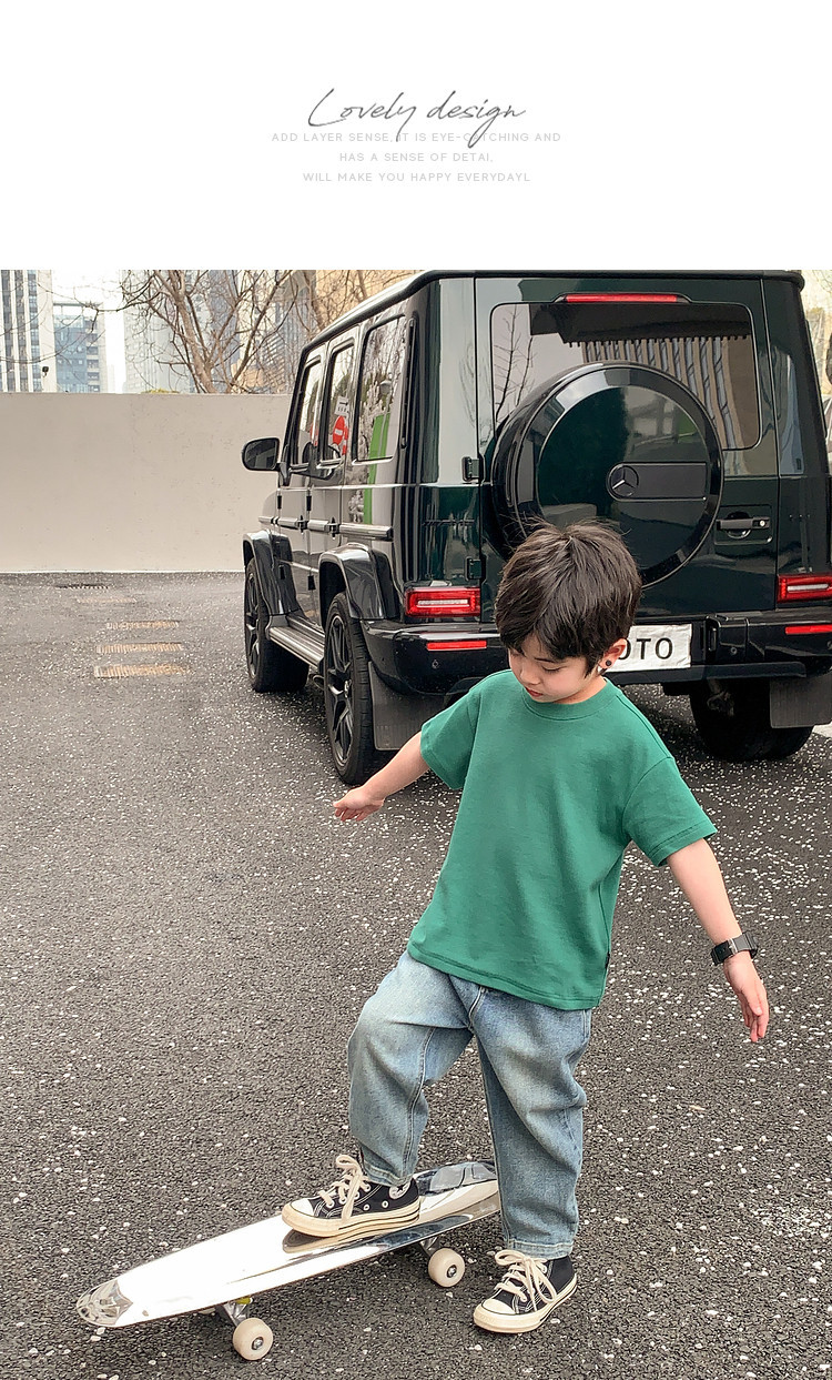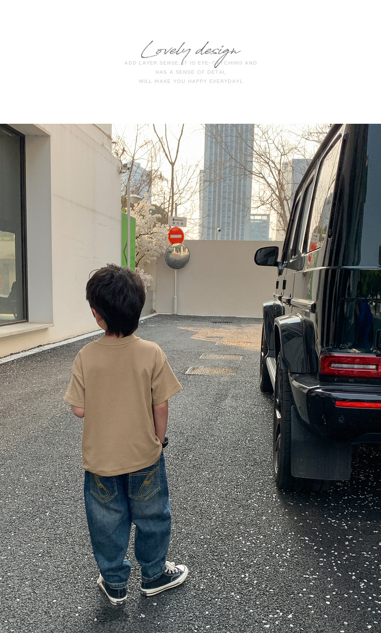 Zhenpinxuan 아동 의류 소년 반팔 티셔츠 2025 새로운 중대형 어린이 여름 솔리드 컬러 탑 어린이 반팔 여름 옷스토어 가기