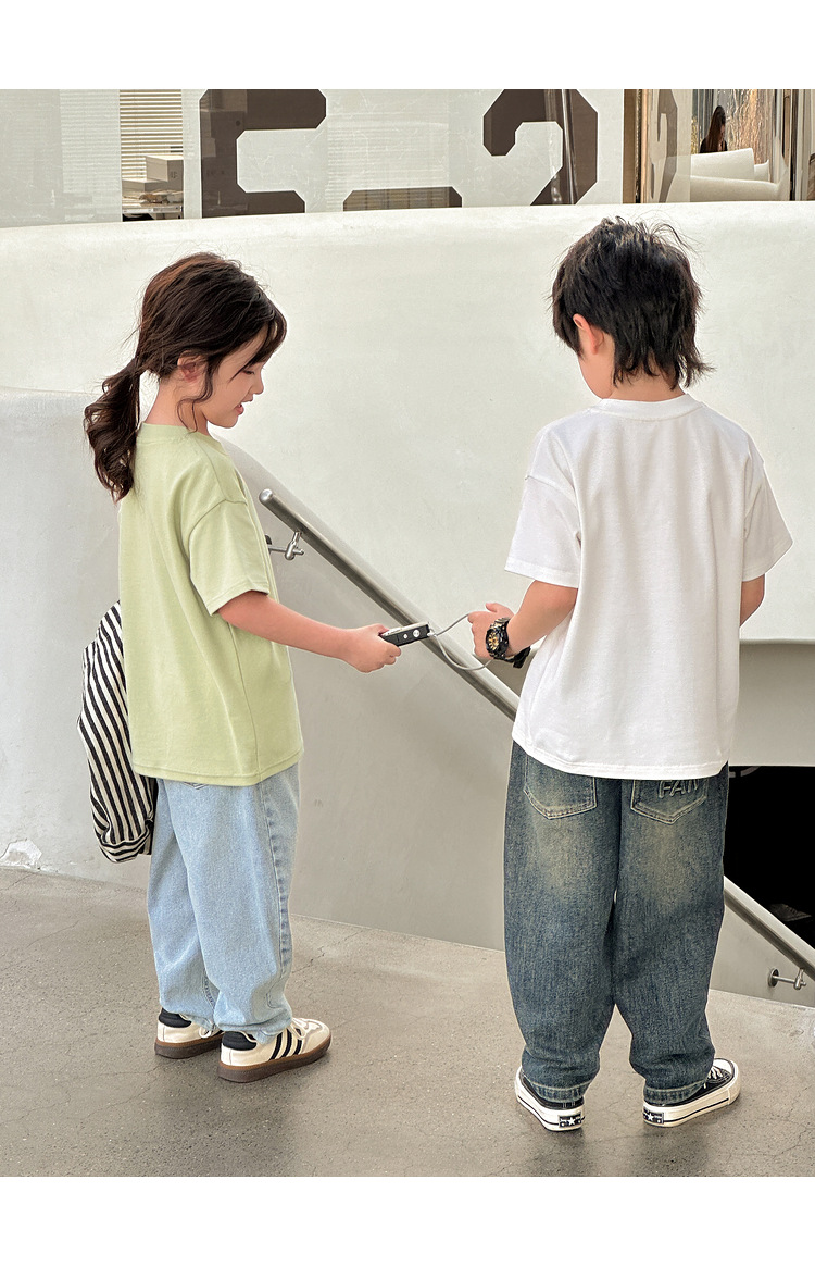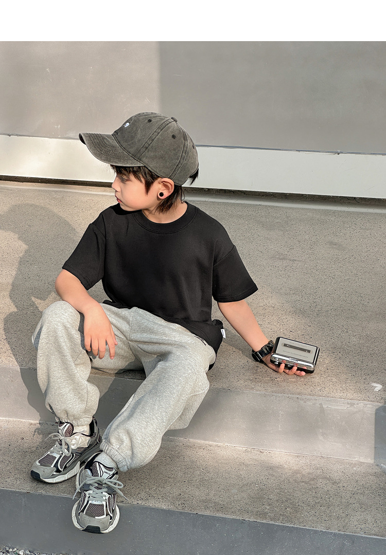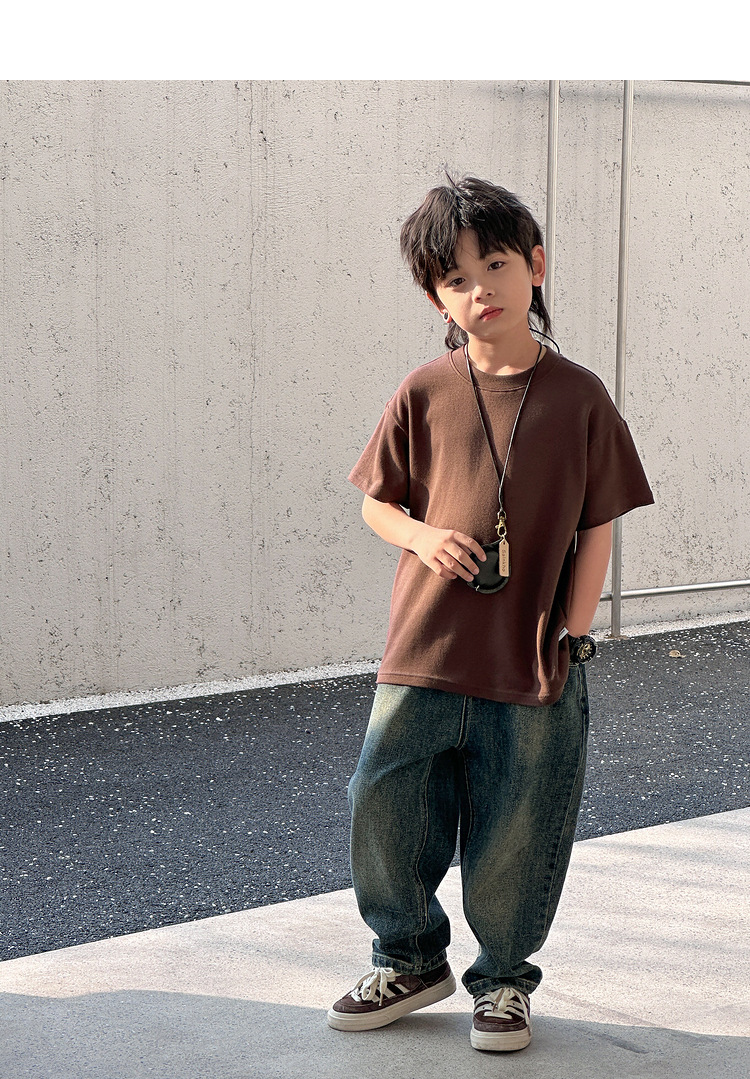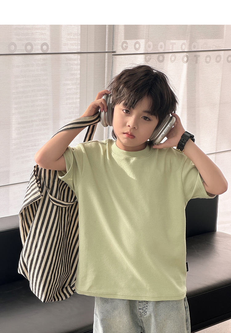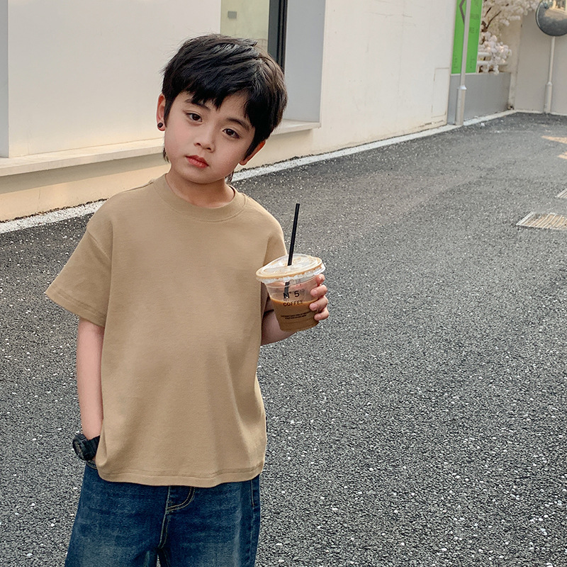 Zhenpinxuan 아동 의류 소년 반팔 티셔츠 2025 새로운 중대형 어린이 여름 솔리드 컬러 탑 어린이 반팔 여름 옷