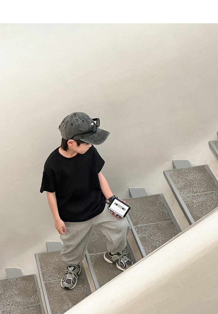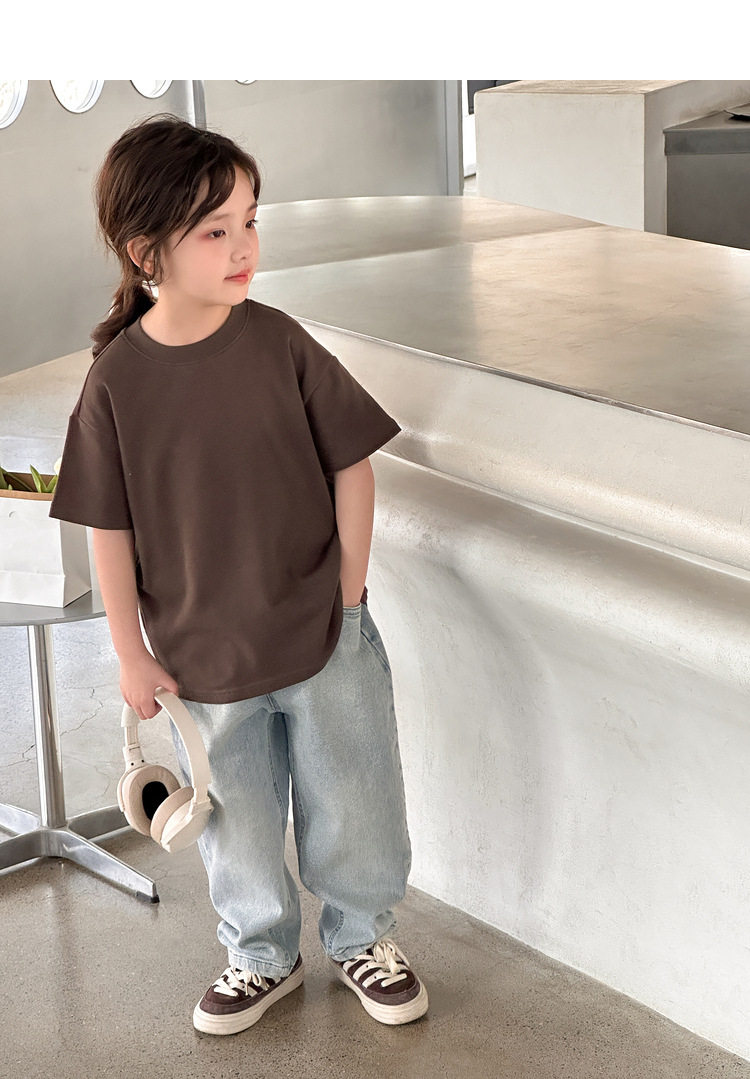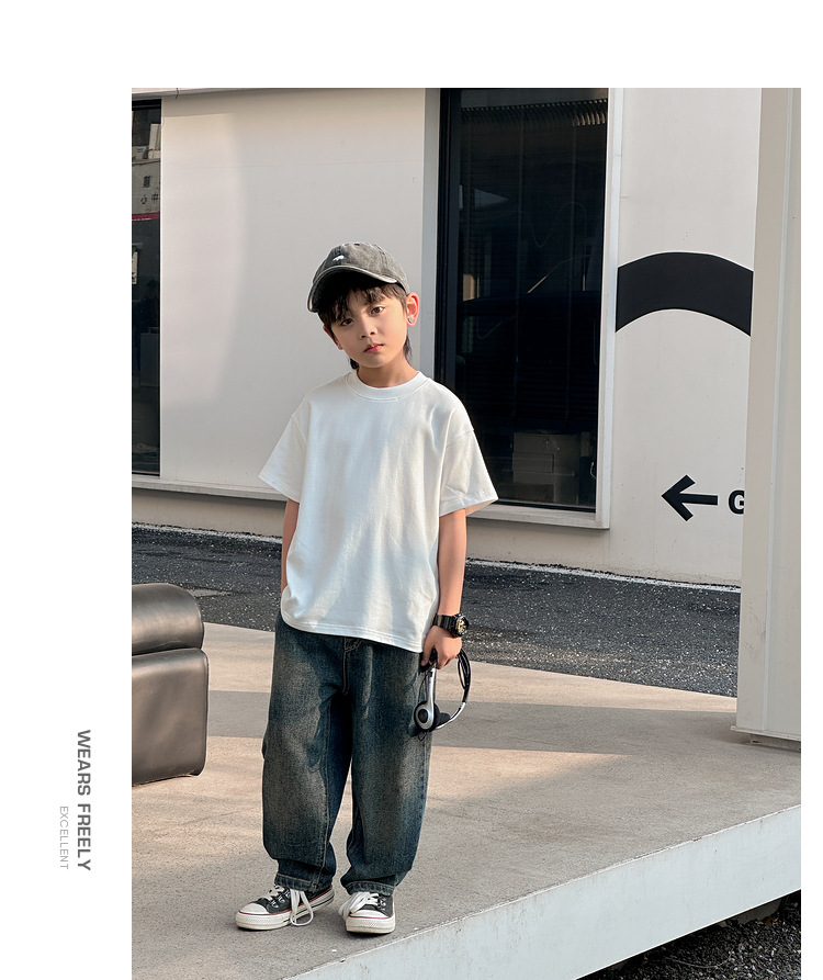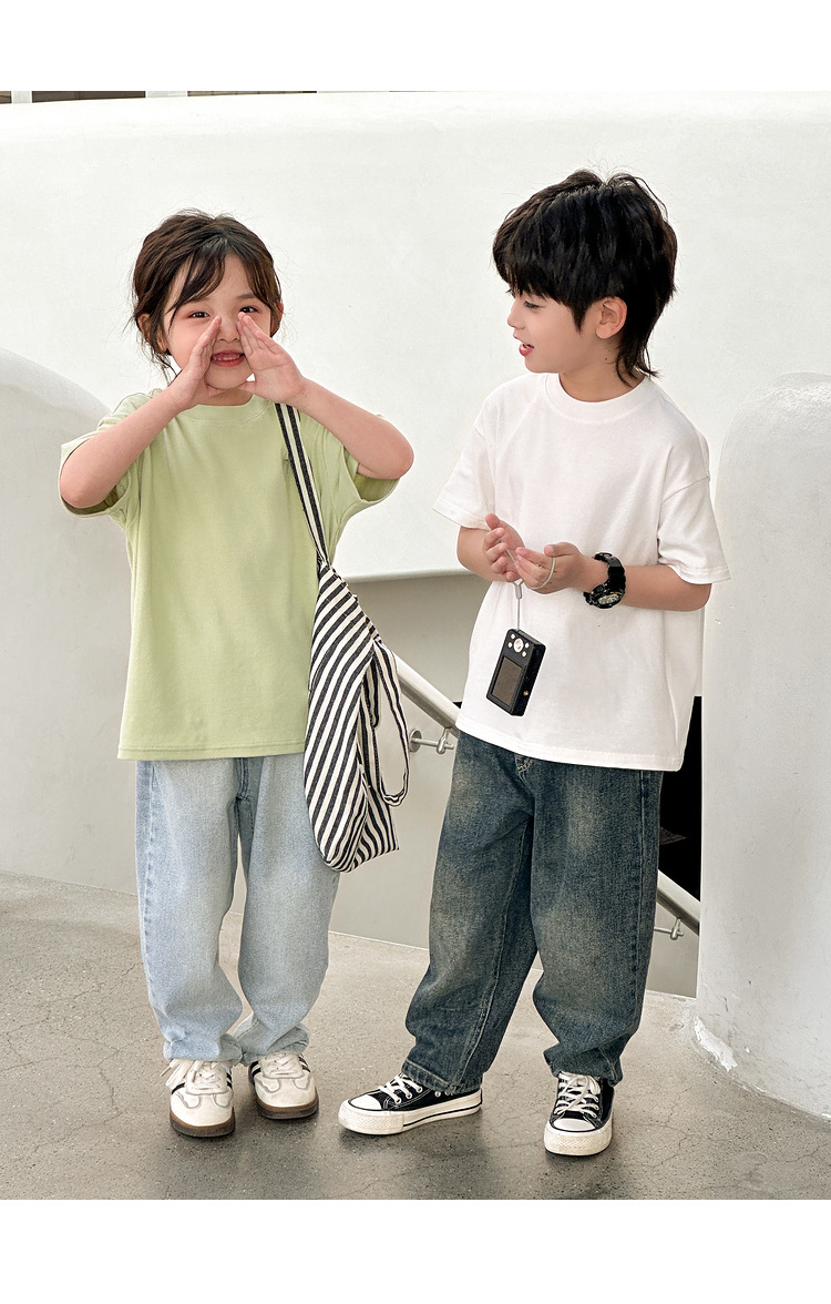 Zhenpinxuan 아동 의류 소년 반팔 티셔츠 2025 새로운 중대형 어린이 여름 솔리드 컬러 탑 어린이 반팔 여름 옷