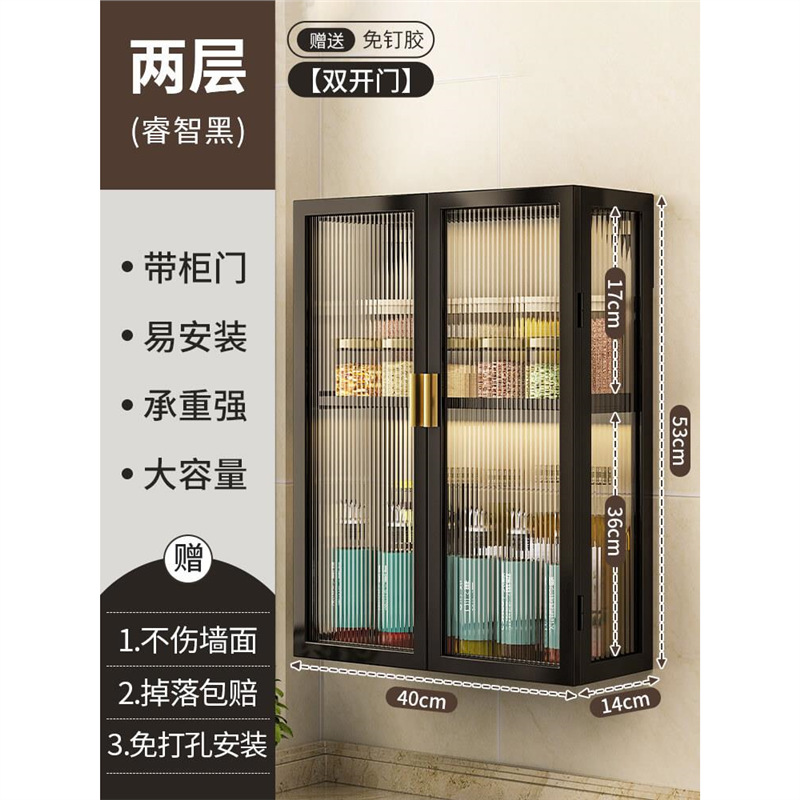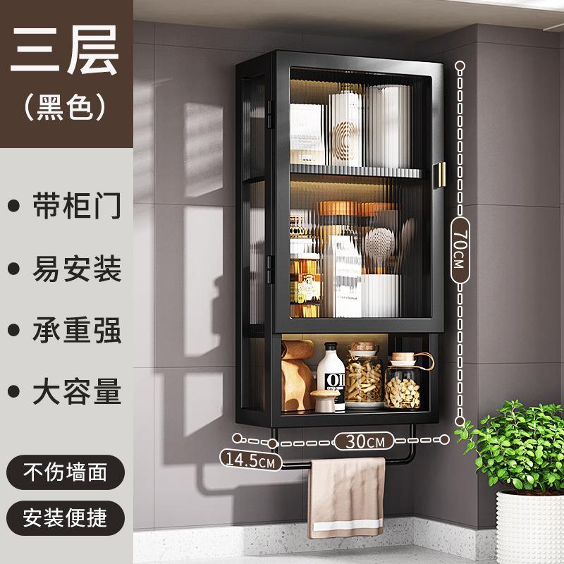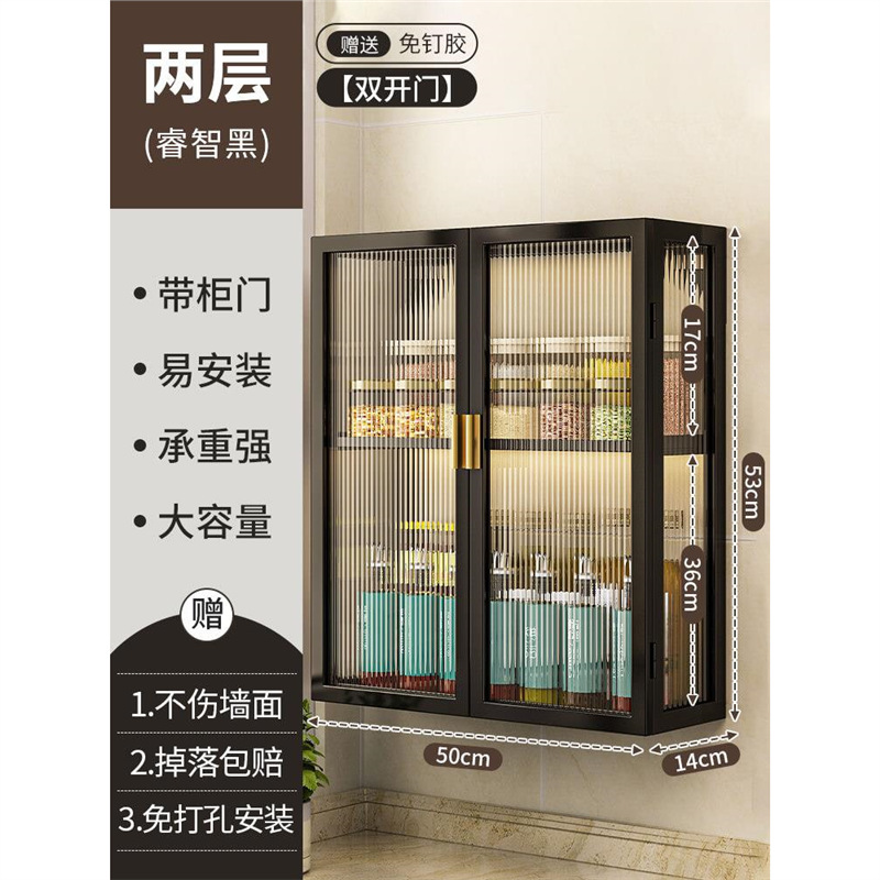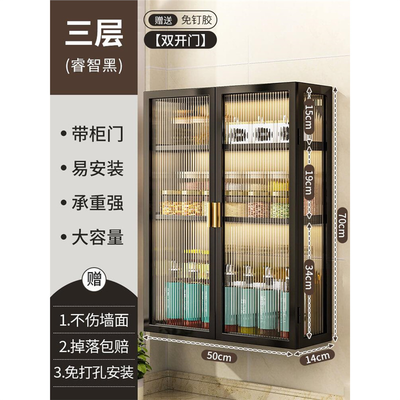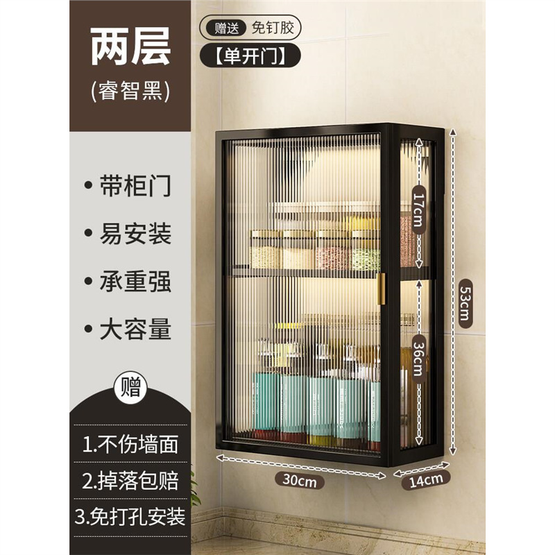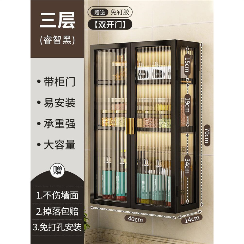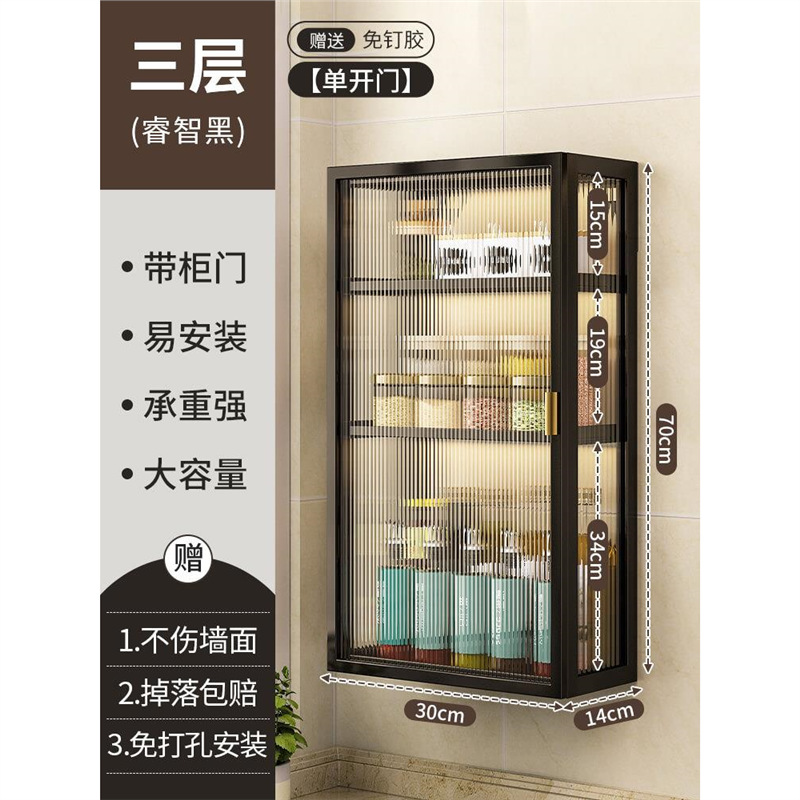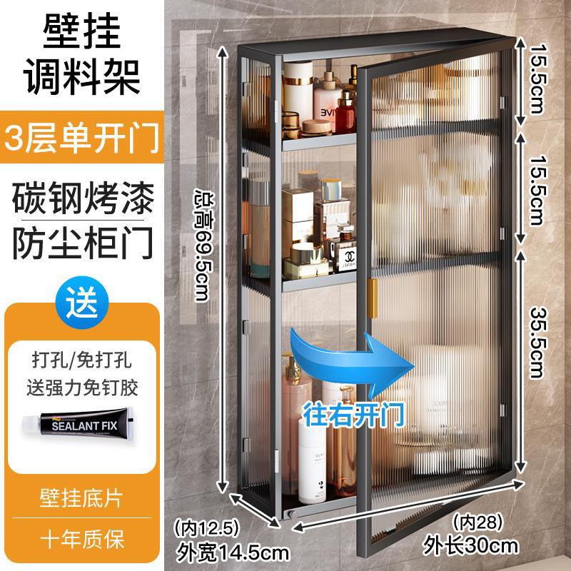 주방 벽 수납 캐비닛, 펀치 없는 벽걸이형, 방진 조미료 및 조미료 수납 선반, 도어가 있는 벽 수납 캐비닛