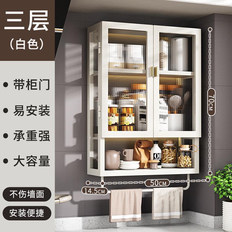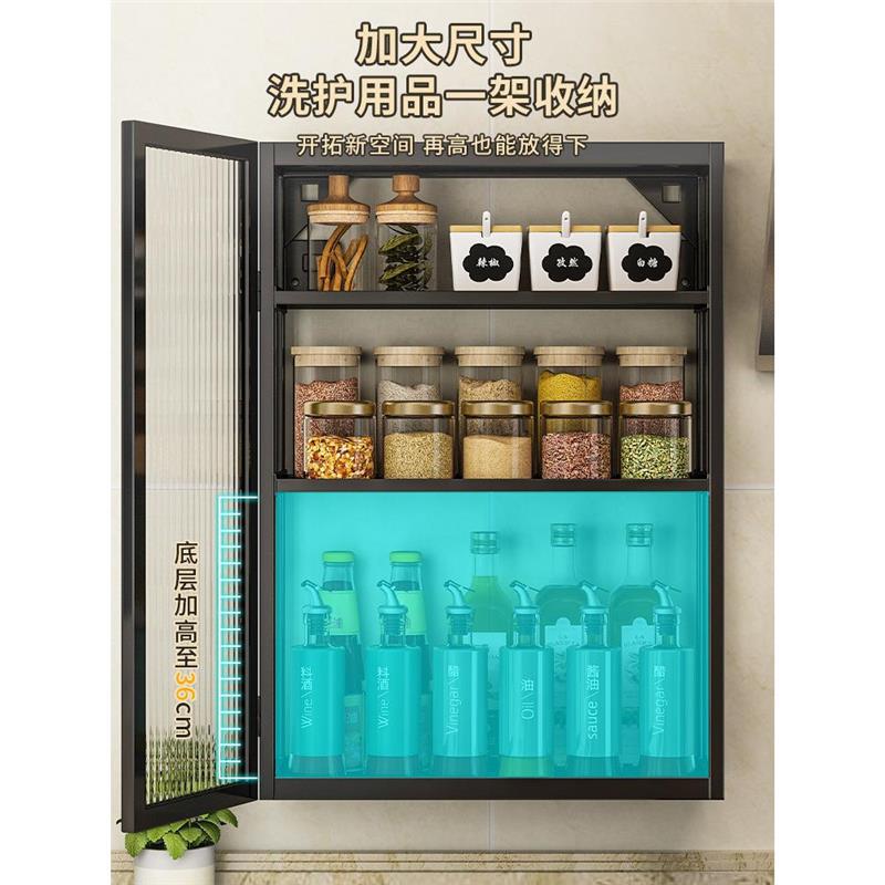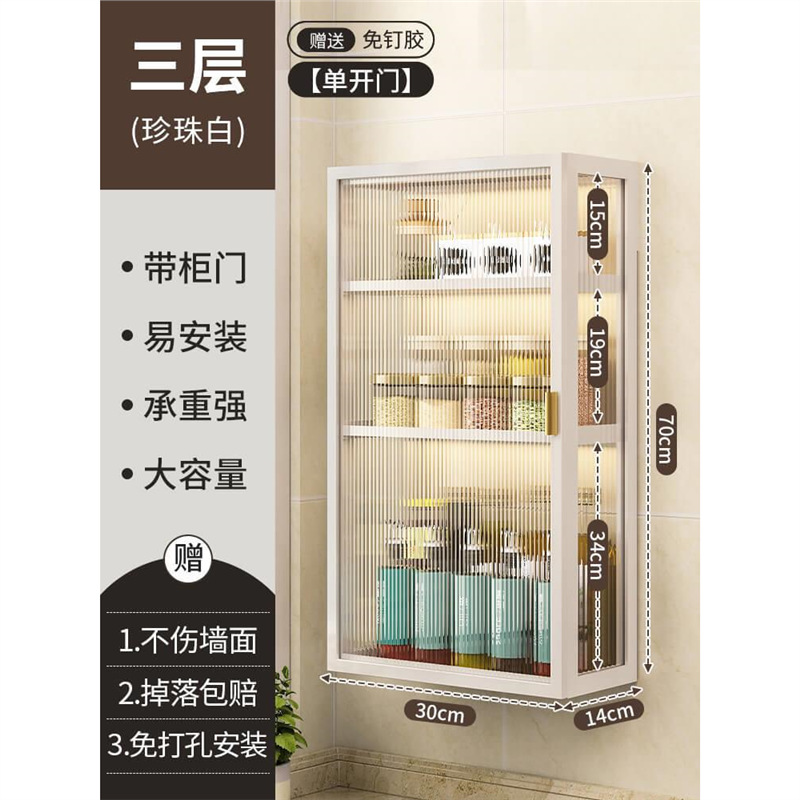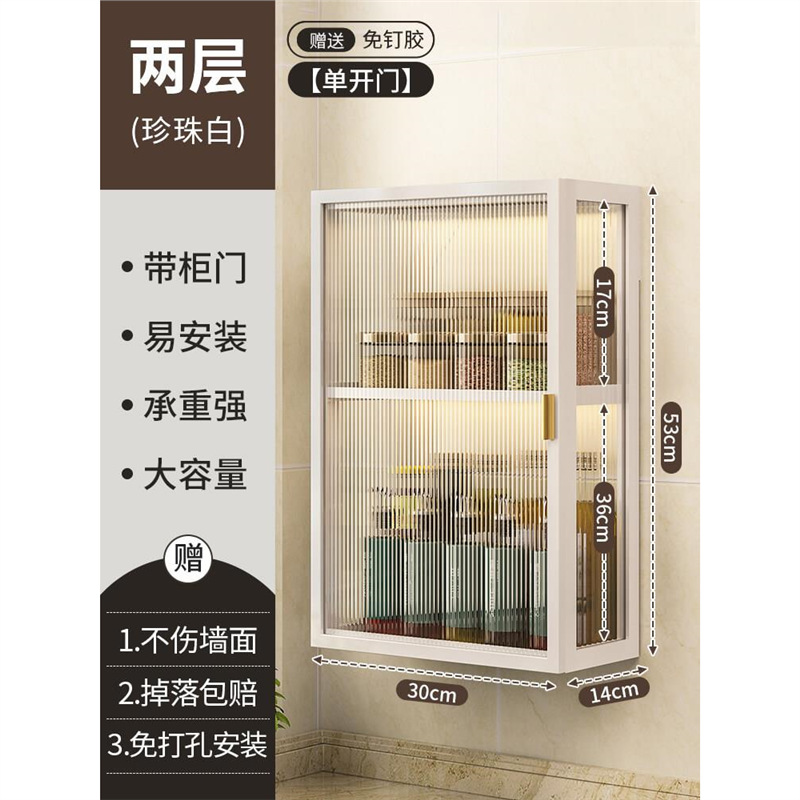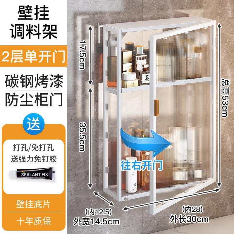 주방 벽 수납 캐비닛, 펀치 없는 벽걸이형, 방진 조미료 및 조미료 수납 선반, 도어가 있는 벽 수납 캐비닛스토어 가기