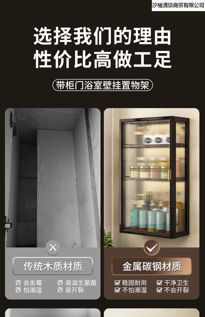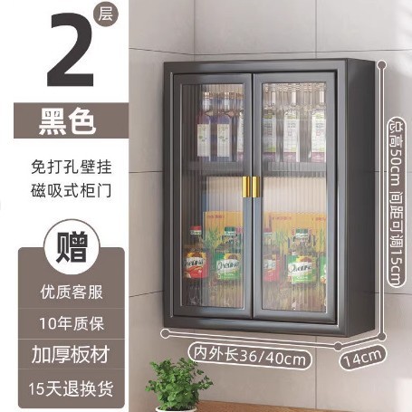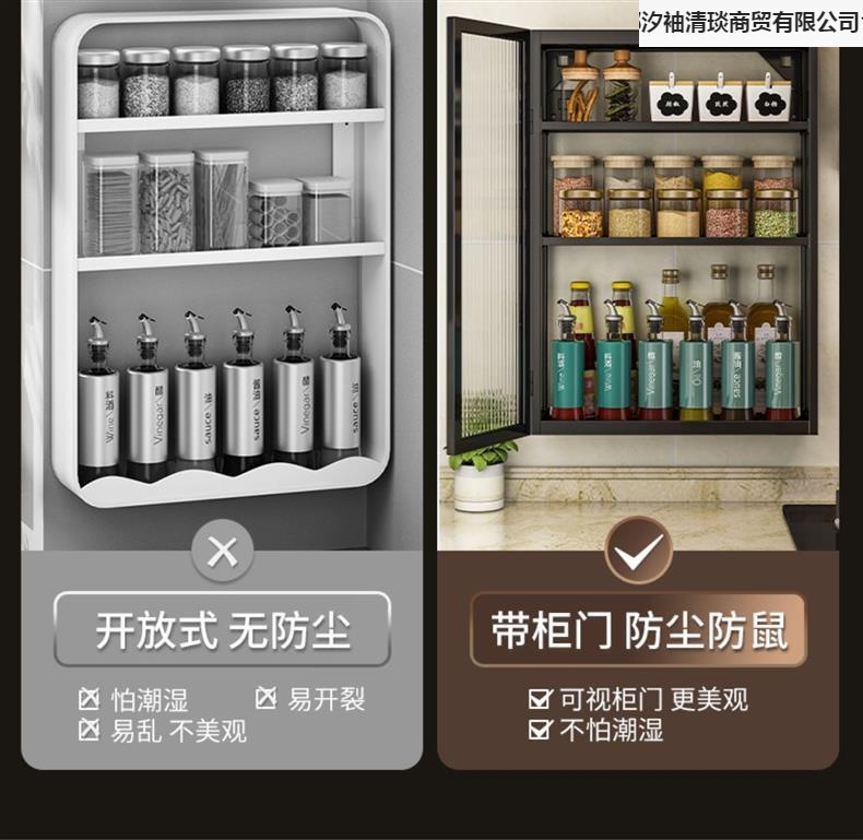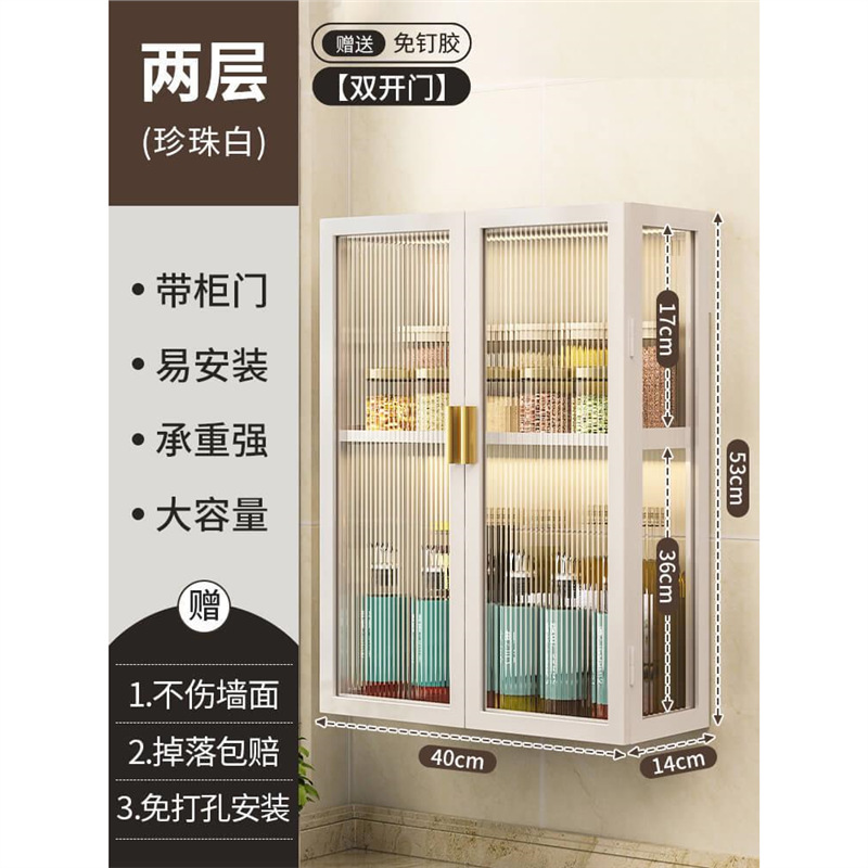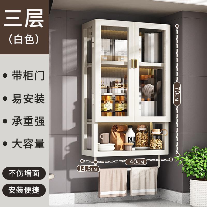 주방 벽 수납 캐비닛, 펀치 없는 벽걸이형, 방진 조미료 및 조미료 수납 선반, 도어가 있는 벽 수납 캐비닛스토어 가기