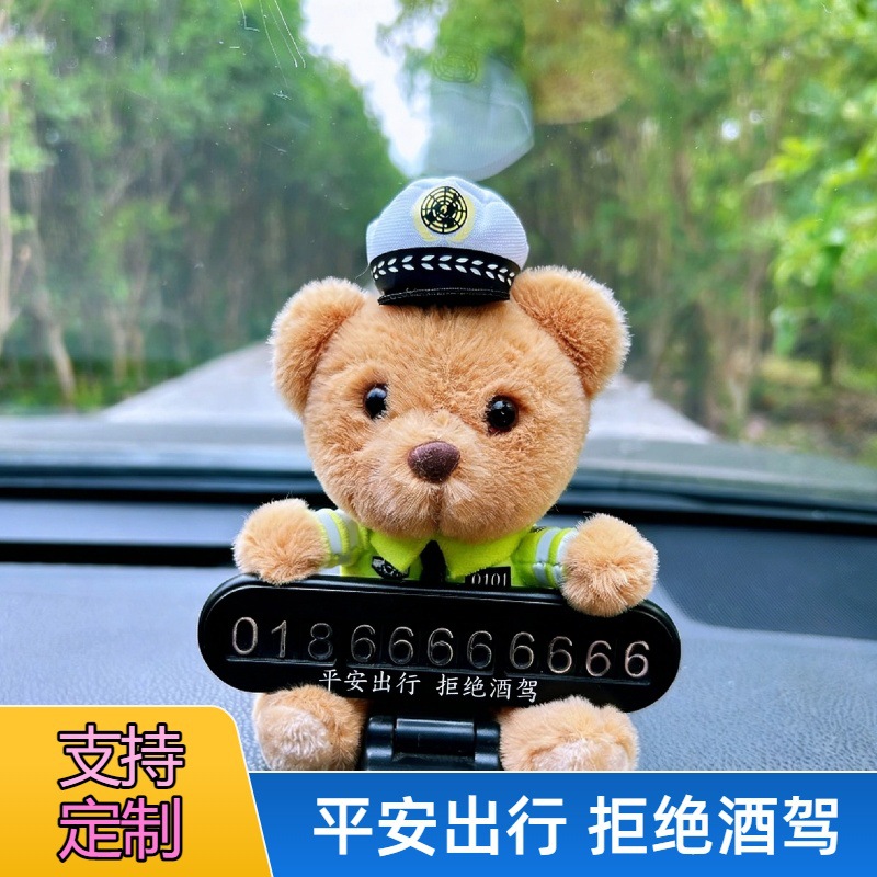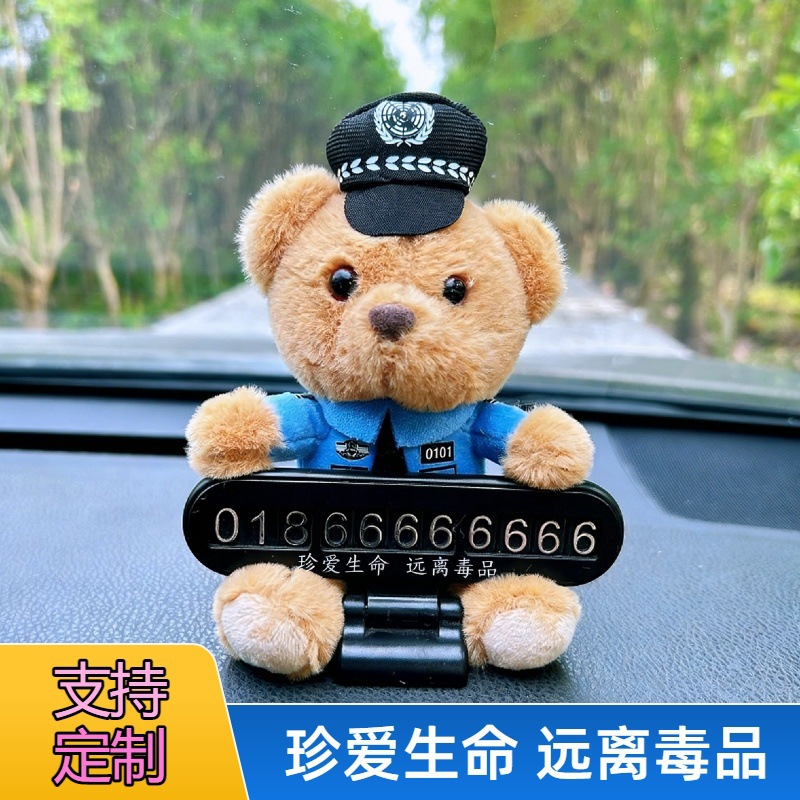교통 경찰 곰 인형 경찰차 주차 전화번호판 임시 주차 카드 번호 장식 차량용 창의적인 자동차 액세서리스토어 가기