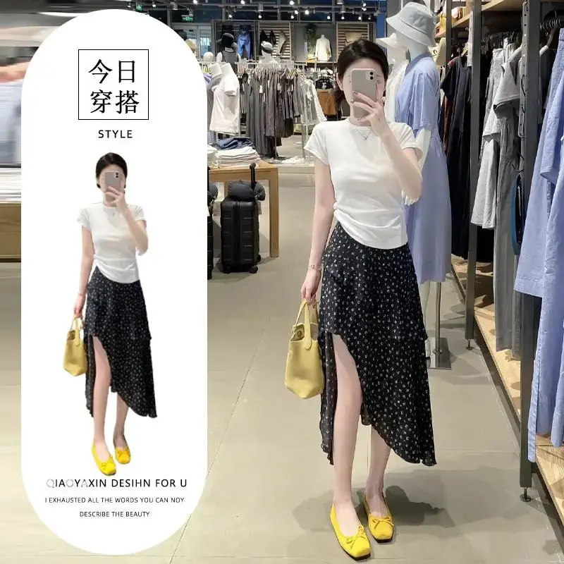 솔트 스타일의 가볍고 성숙한 스타일의 투피스 스커트 여름 여성 스커트 기질 불규칙한 러플 스커트 2025 새로운 스타일스토어 가기