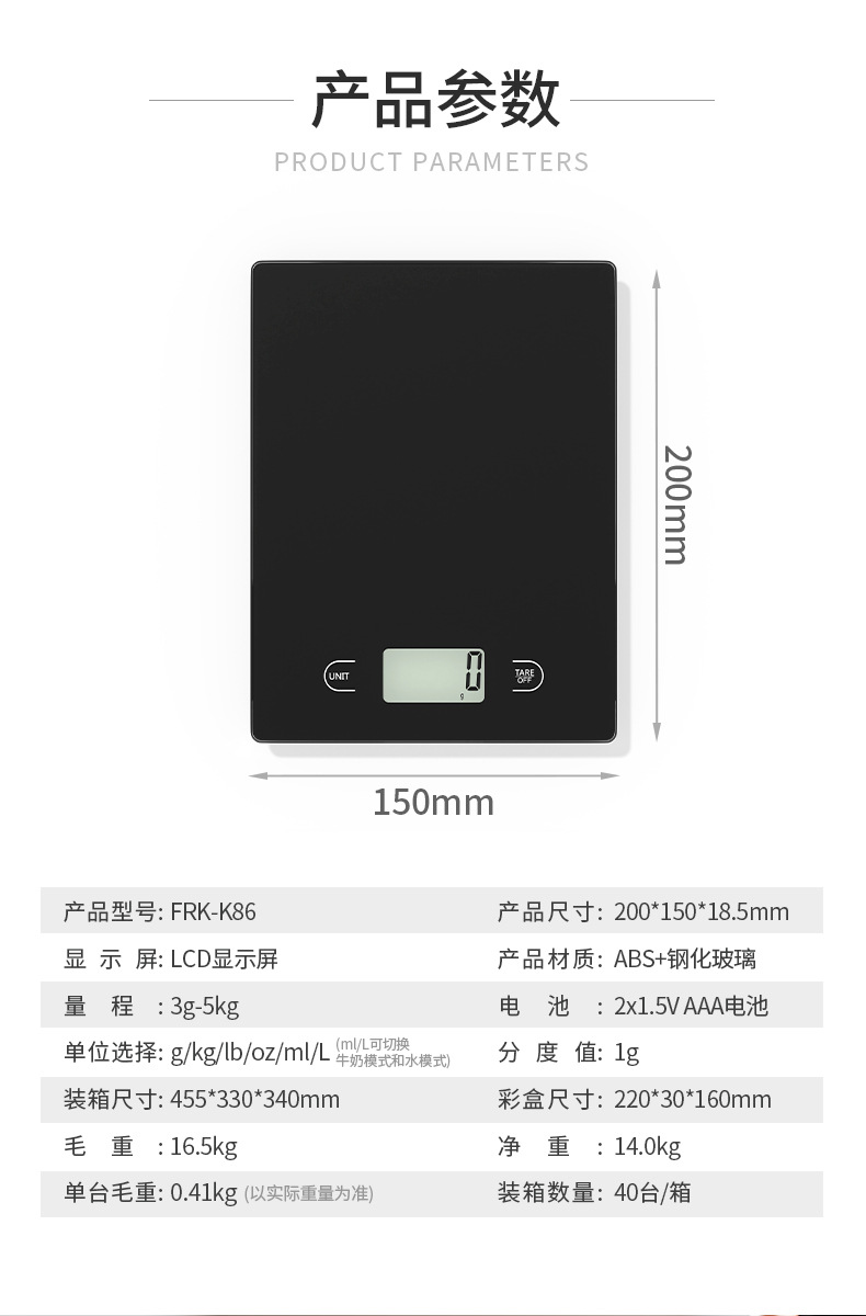 FRK 유리 주방 저울 국경 간 전자 저울 제조 업체 가정용 주방 저울 그램 저울 베이킹 저울 Amazon 주방 저울스토어 가기