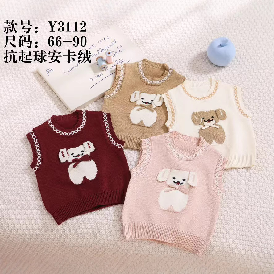 신생아 만화 원 칼라 모직 조끼 스웨터 2025 새로운 유아 및 어린이 조끼 중립 동물 패턴스토어 가기