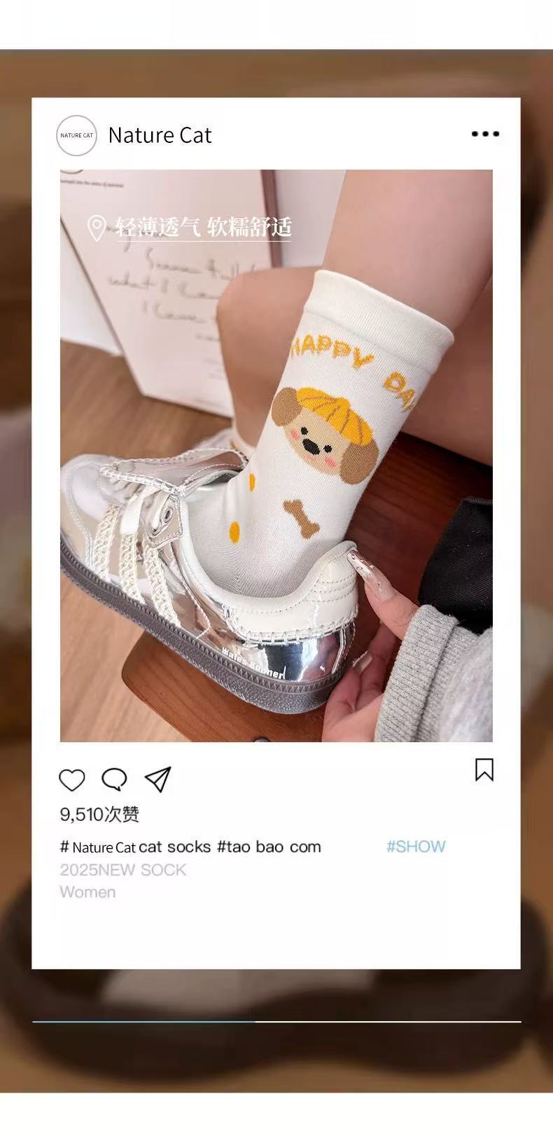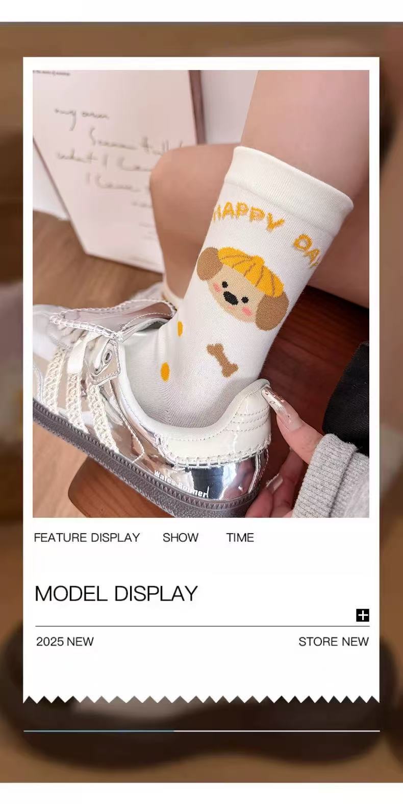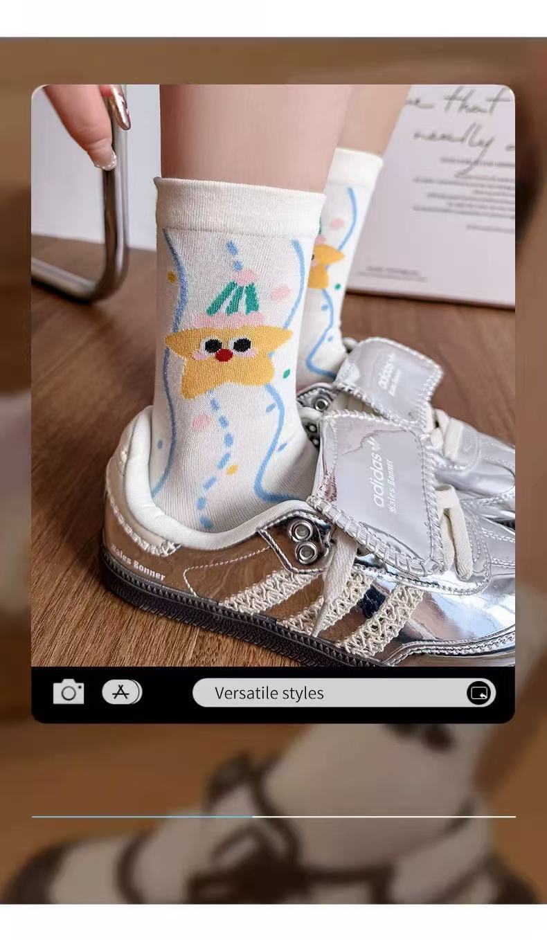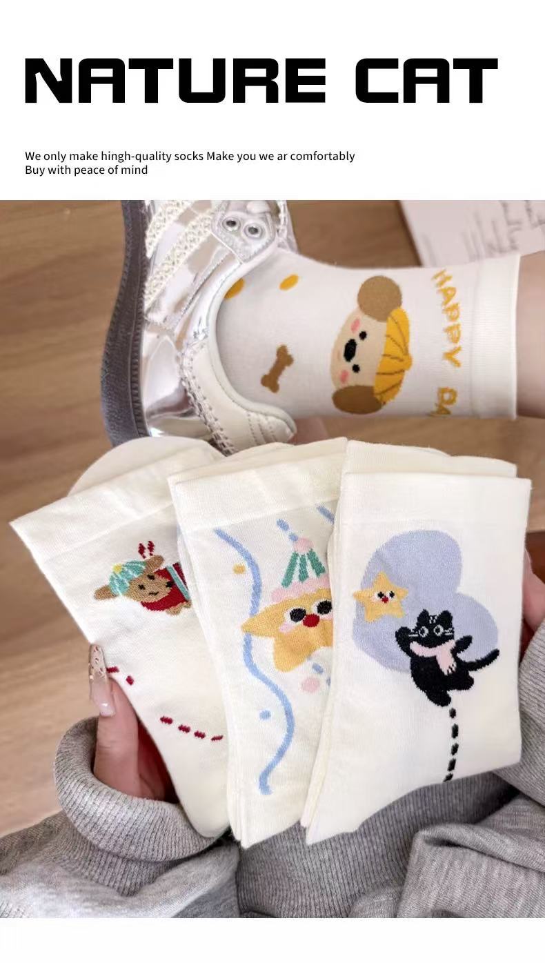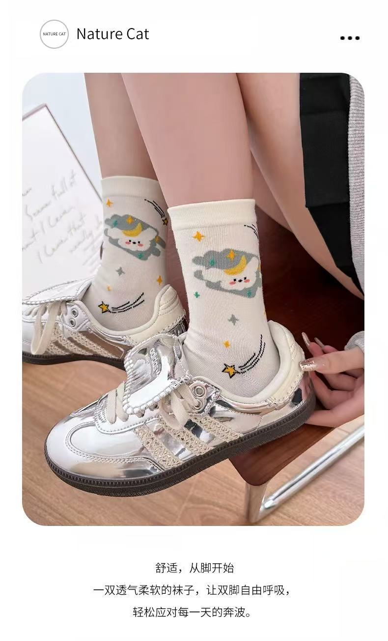 여성용 만화 종아리 양말 여름 얇은 흰색 양말 대학 스타일 일러스트 강아지 인터넷 연예인 스타 여성용면 양말스토어 가기