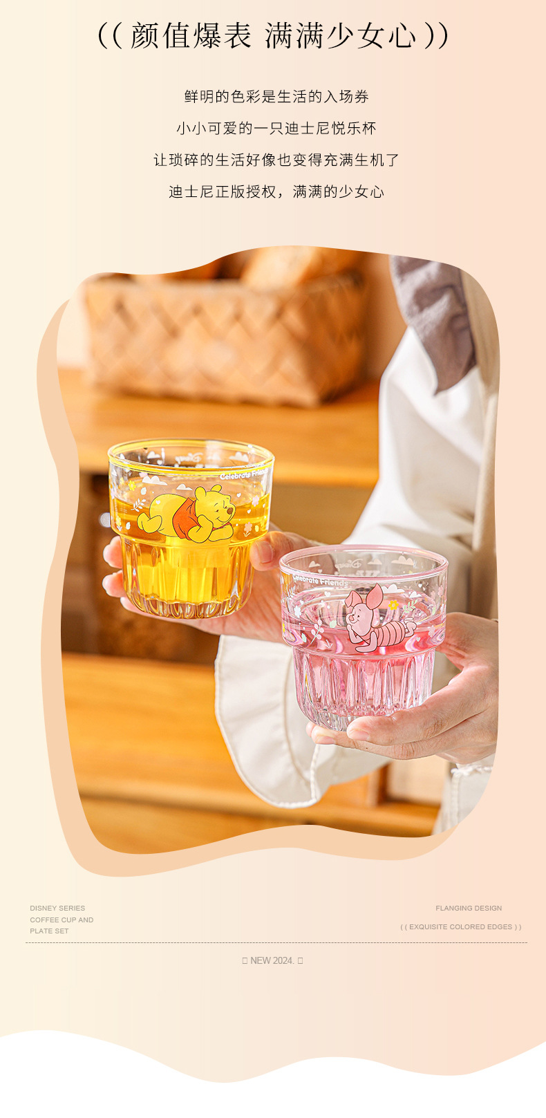 디즈니 위니 스타 클럽 유리 만화 물 컵 여성 고급스러운 가정용 물 컵 어린이 날 마시는 컵스토어 가기