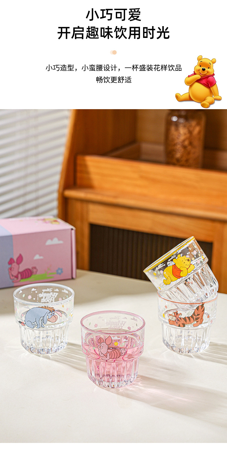 • 꽃세로무늬 더블섹션컵 - 4종혼합 (푸우+피글렛+이요르+티거) [선물박스]