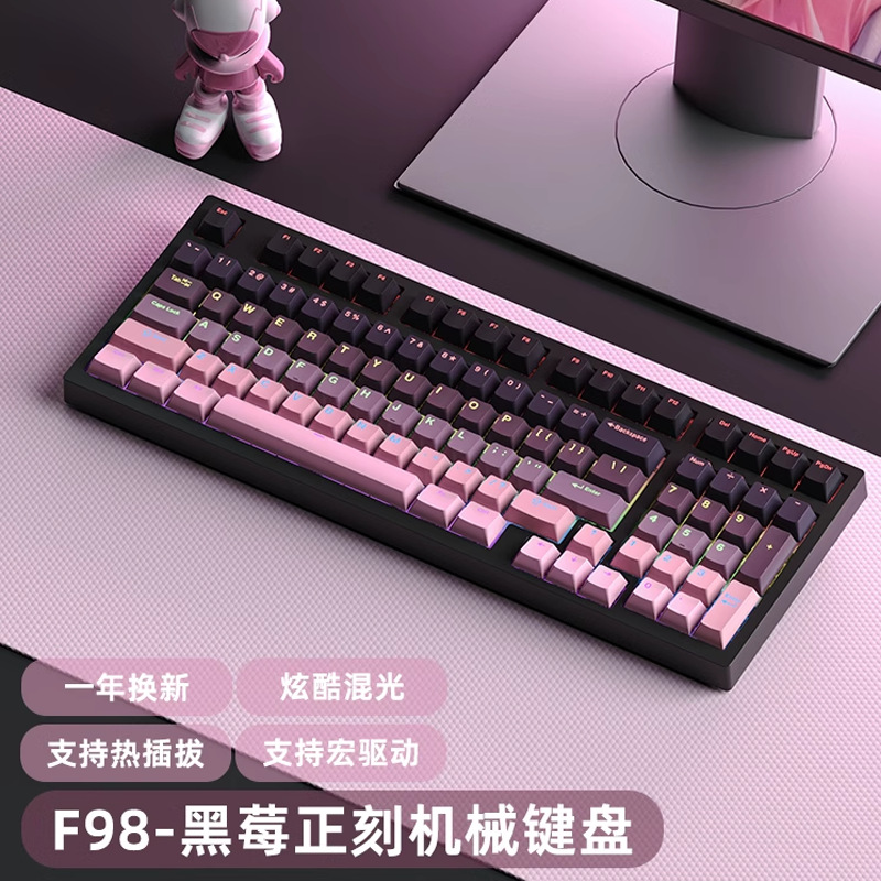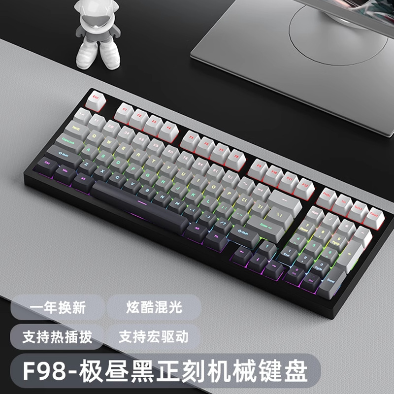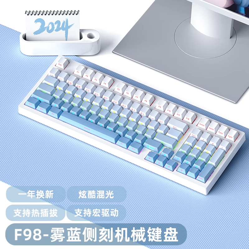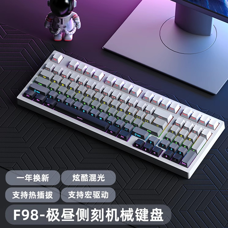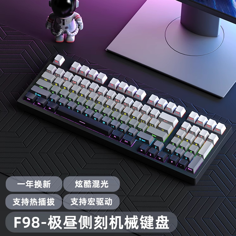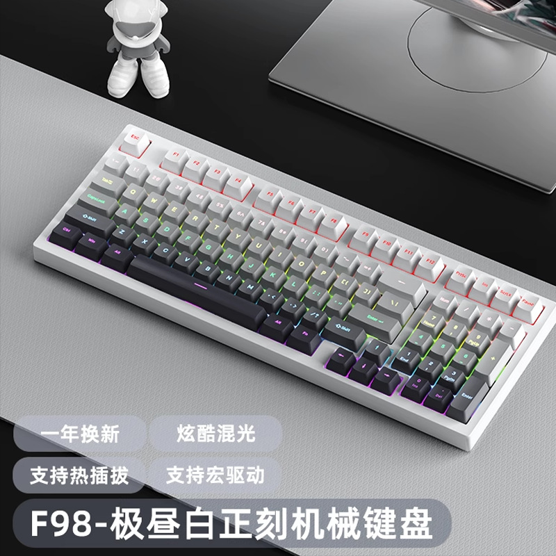 핫스왑 가능한 오피스 e스포츠 게이밍 키보드 98개, 믹스드 라이트 풀키, 리드레스 98개, 유선 기계식 키보드