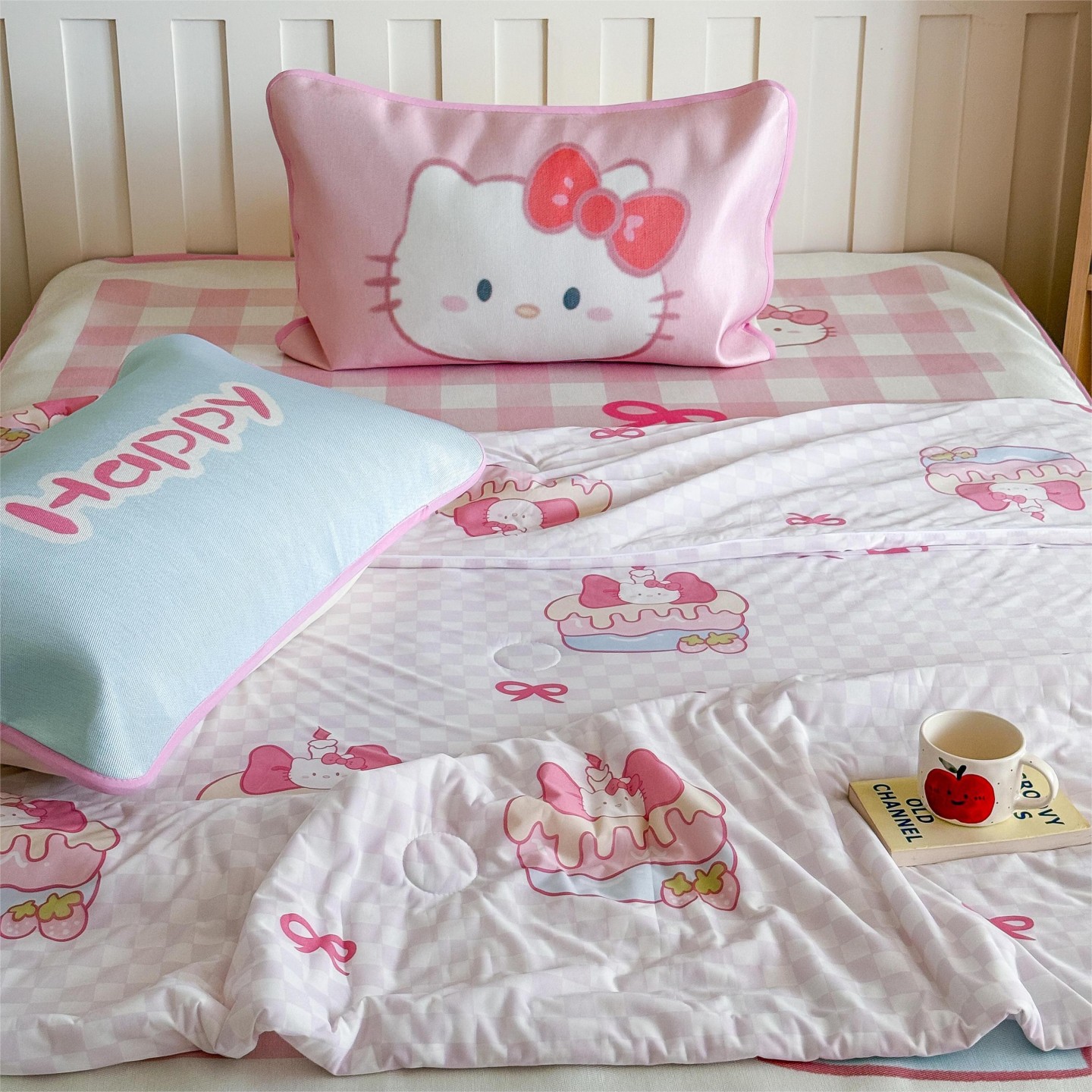 Ins 스타일 아이스 스킨 여름 이불 만화 고양이 시원한 실크 기숙사 어린이 에어컨 이불 유모차 작은 커버 이불 도매