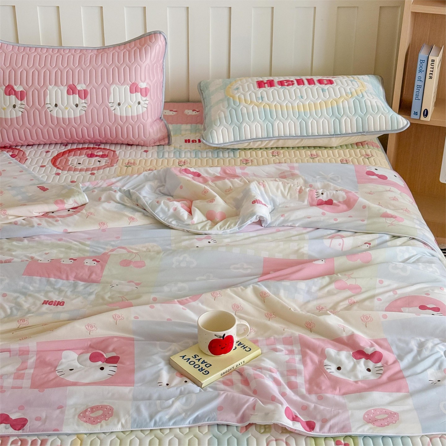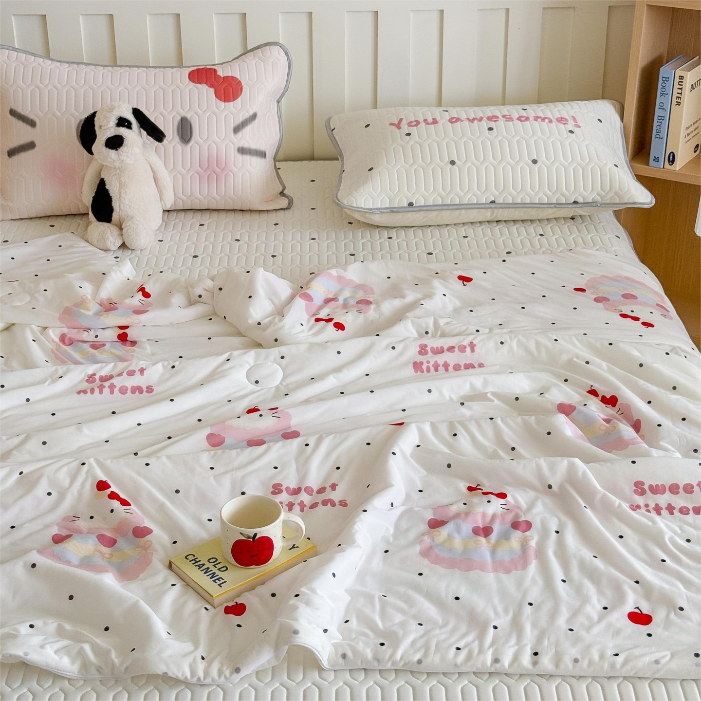Ins 스타일 아이스 스킨 여름 이불 만화 고양이 시원한 실크 기숙사 어린이 에어컨 이불 유모차 작은 커버 이불 도매스토어 가기
