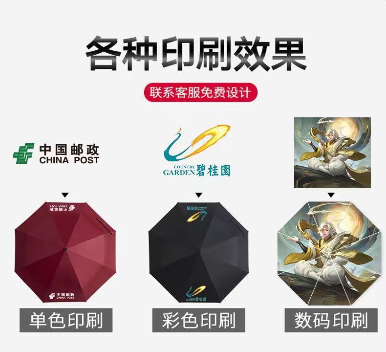 자동 광고 우산 인쇄 및 조각 로고 비즈니스 70% off 선물 우산 도매 태양 보호 양산 비 또는 빛 접는 우산