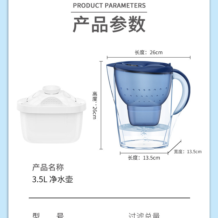 가정용 편리한 주전자 주방 정수기 필터 3.5L 주전자 활성탄 필터 주전자 전자 상거래스토어 가기
