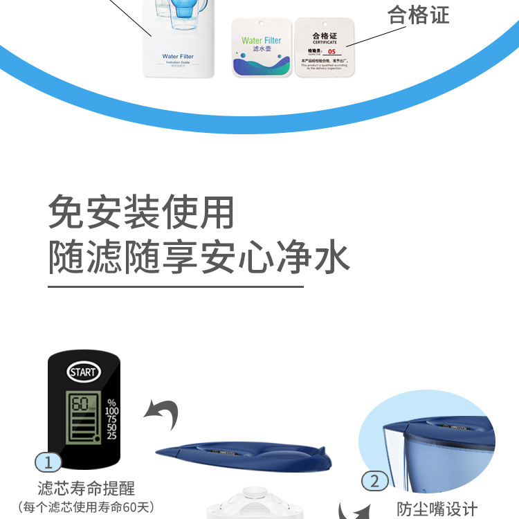 가정용 편리한 주전자 주방 정수기 필터 3.5L 주전자 활성탄 필터 주전자 전자 상거래