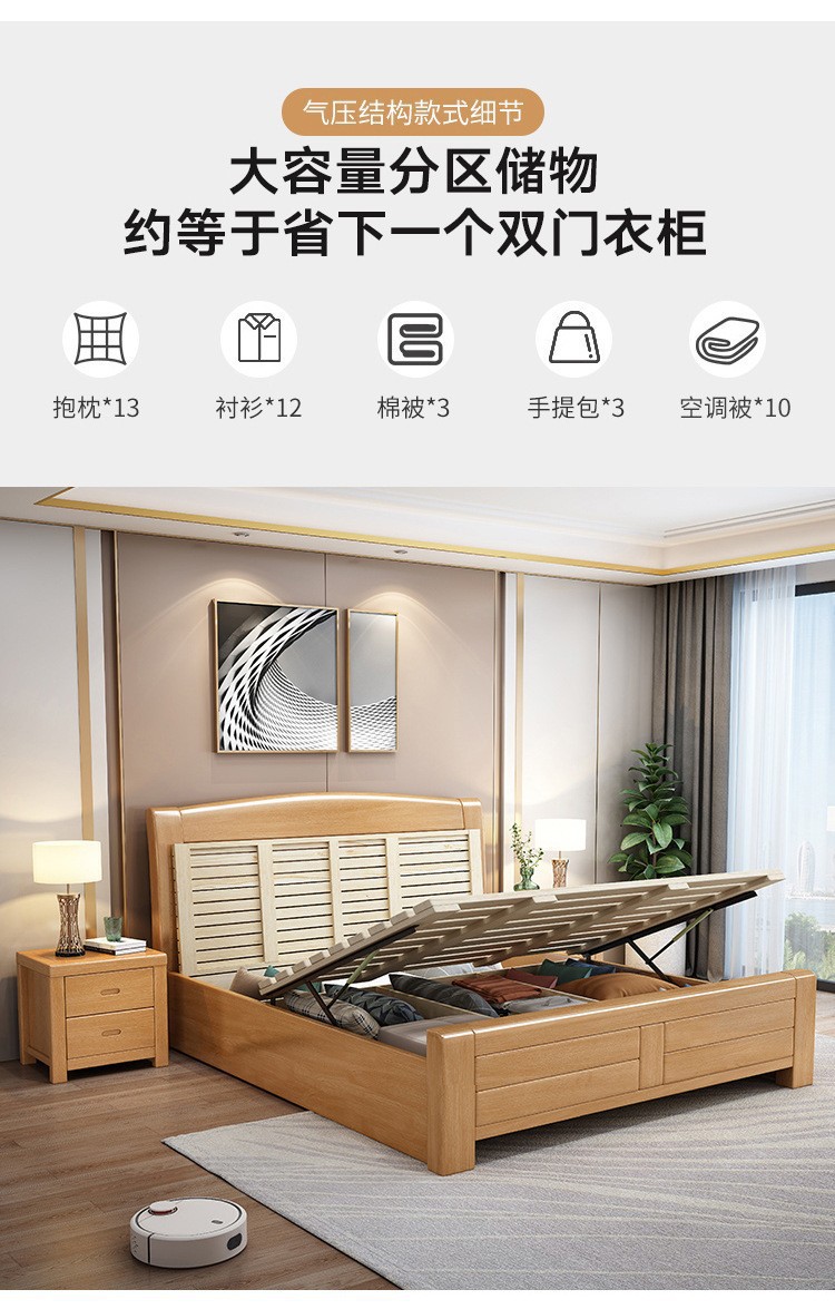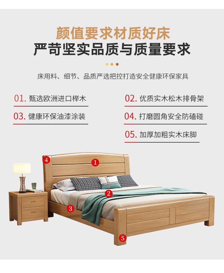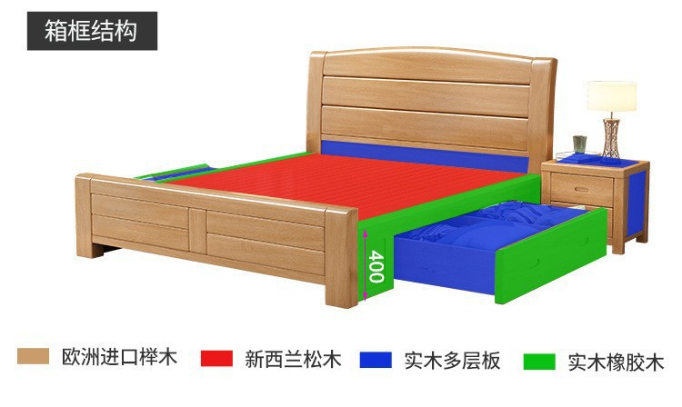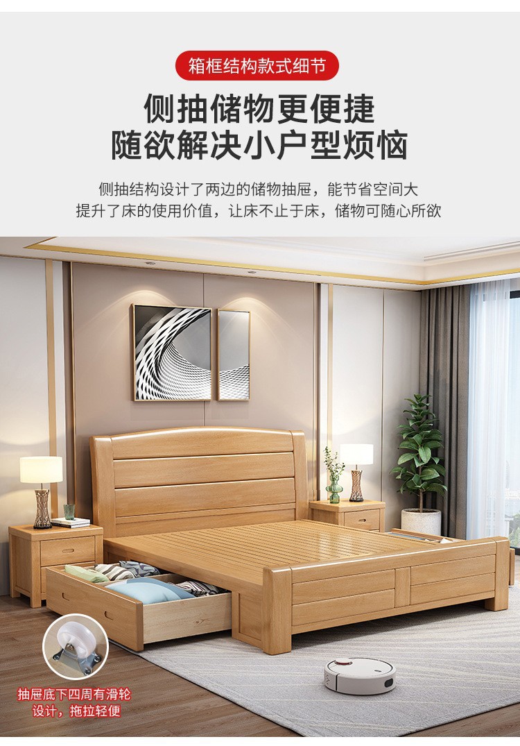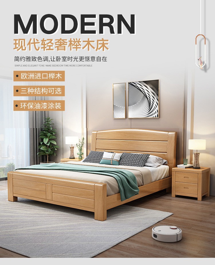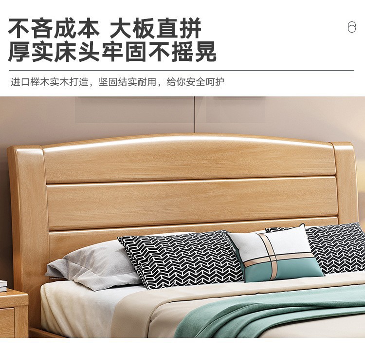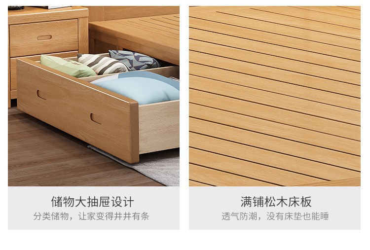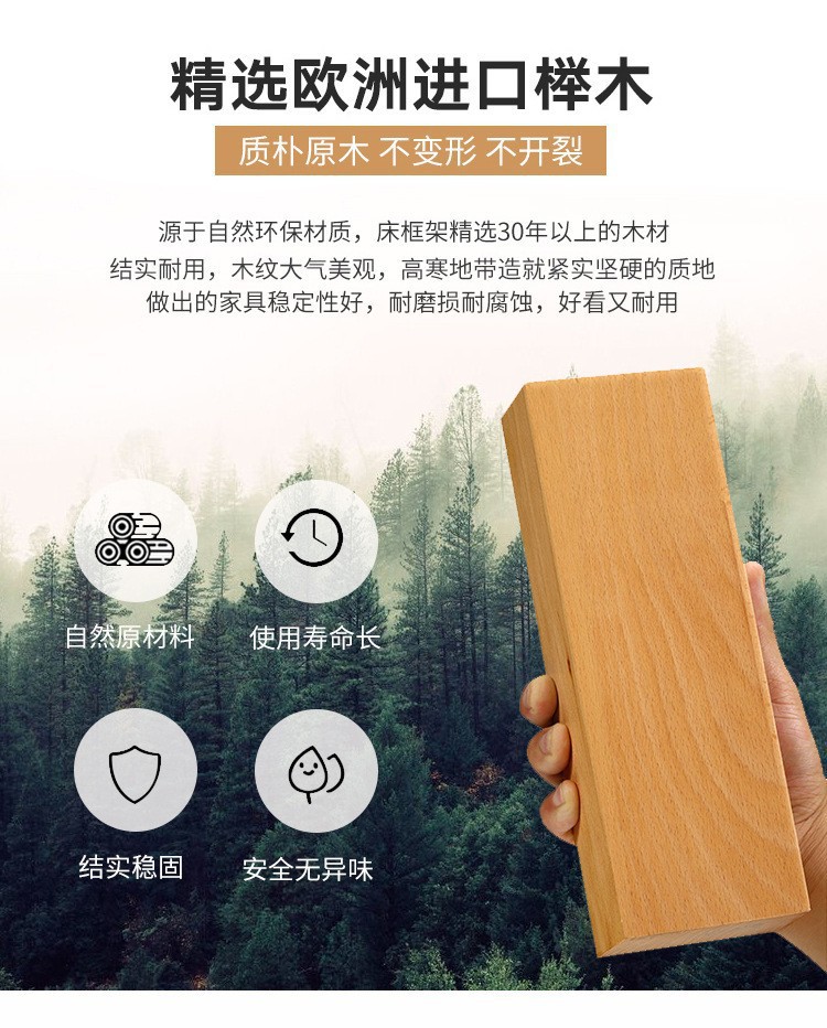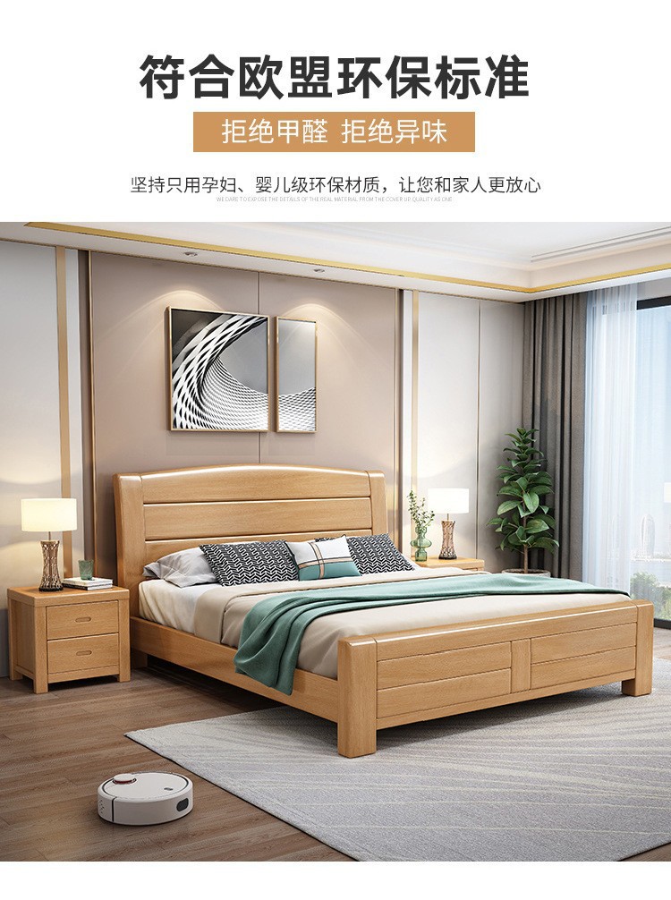 너도밤나무 원목 침대 1.8m 더블 침대 1.2m 작은 아파트 싱글 침대 북유럽 로그 컬러 마스터 침실 수납 웨딩 침대