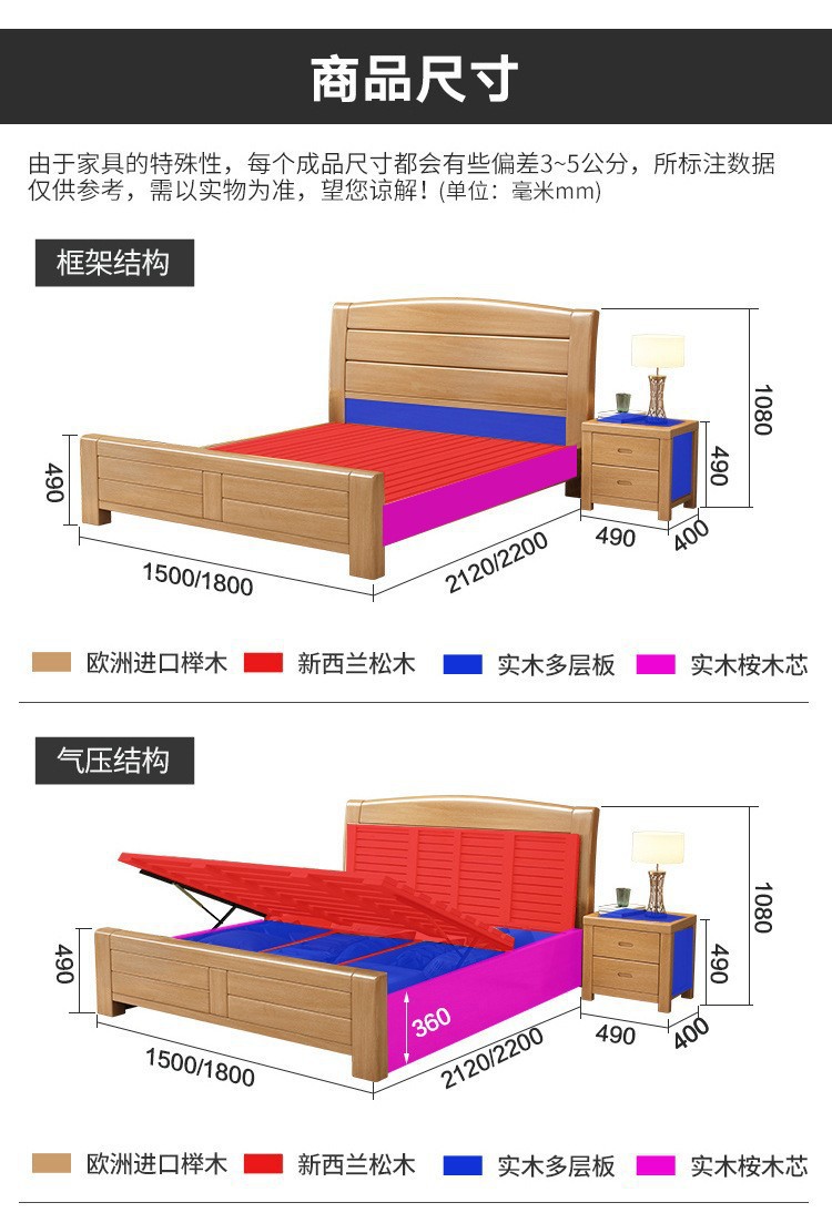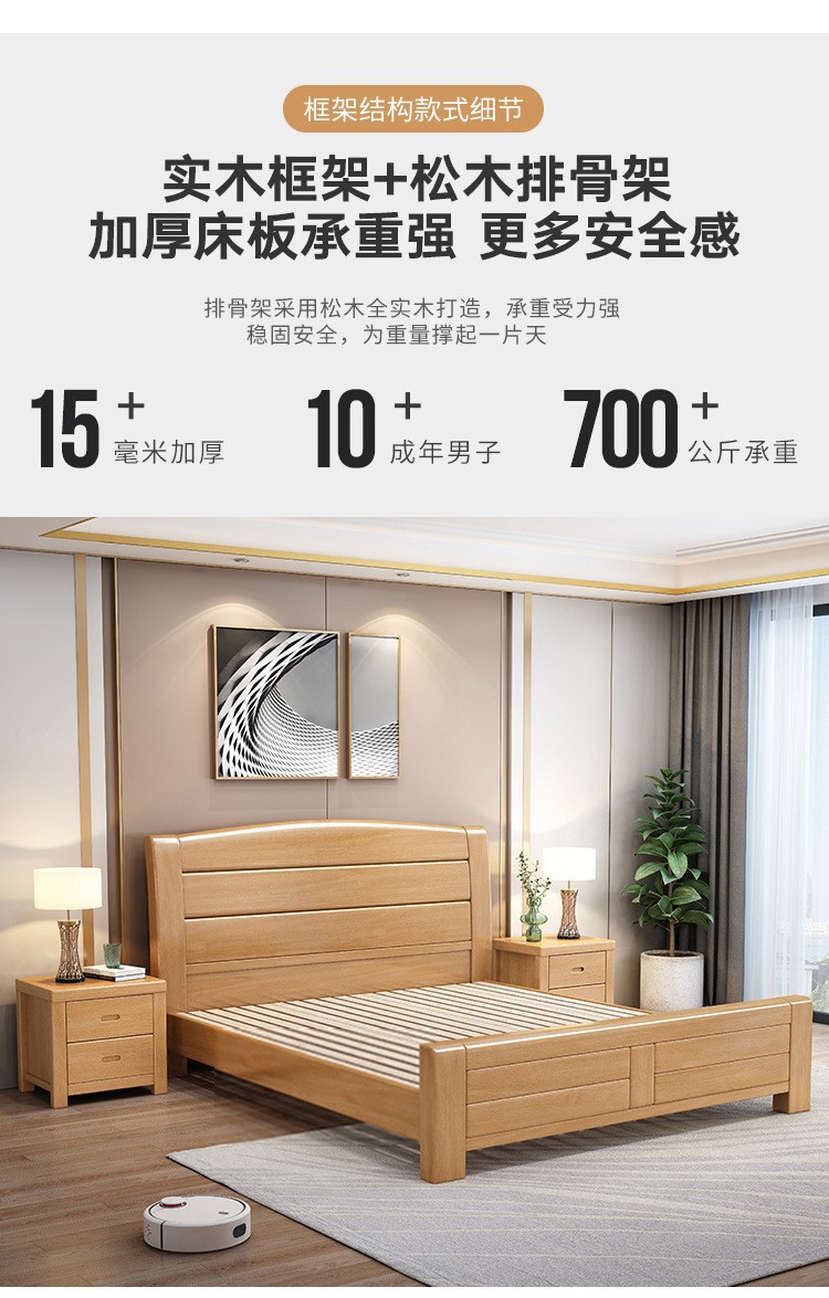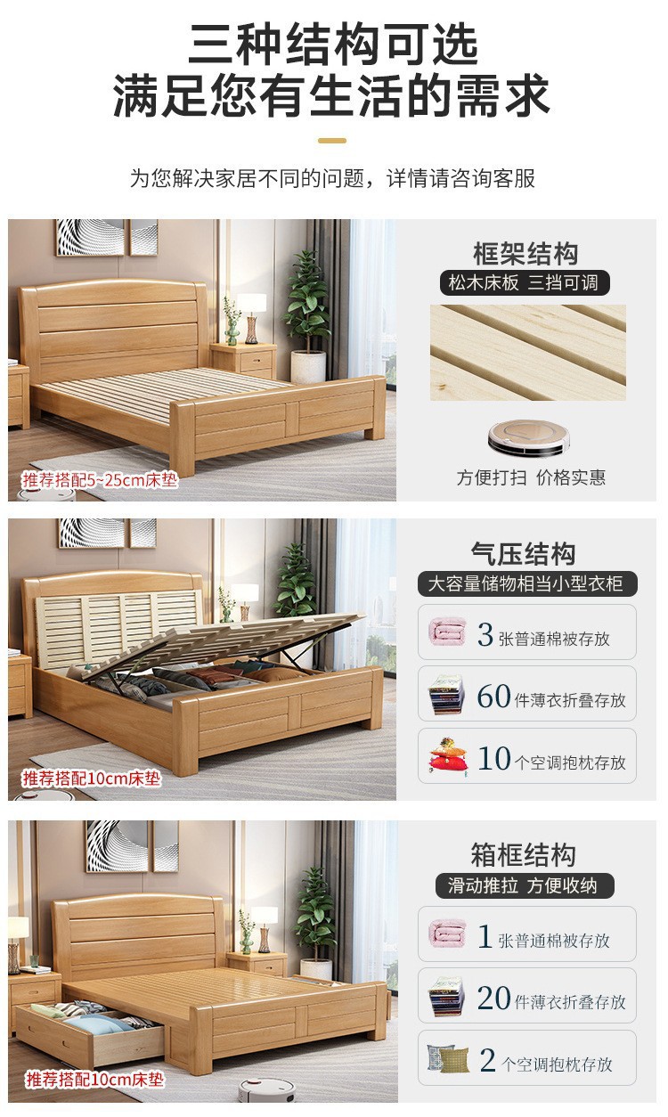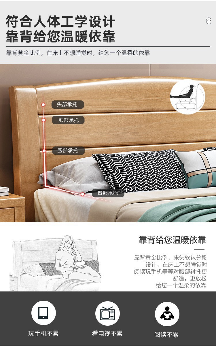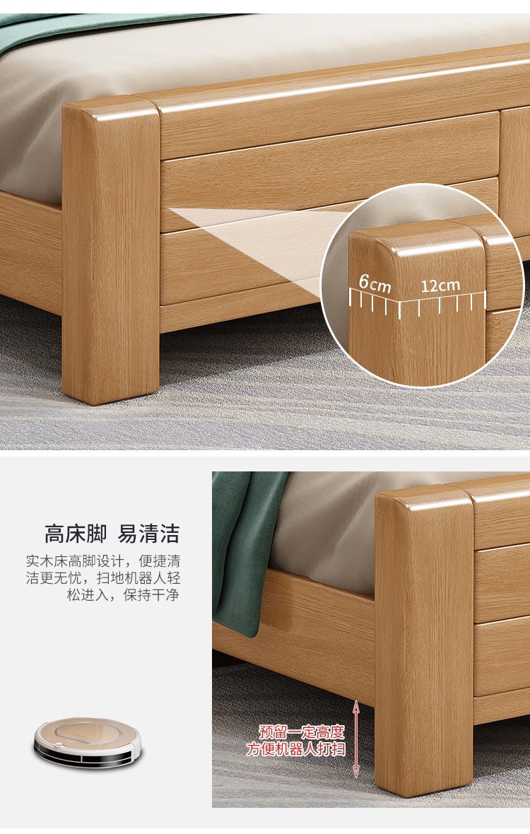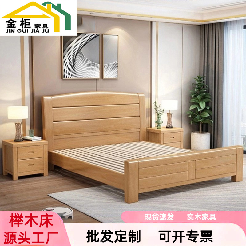 너도밤나무 원목 침대 1.8m 더블 침대 1.2m 작은 아파트 싱글 침대 북유럽 로그 컬러 마스터 침실 수납 웨딩 침대