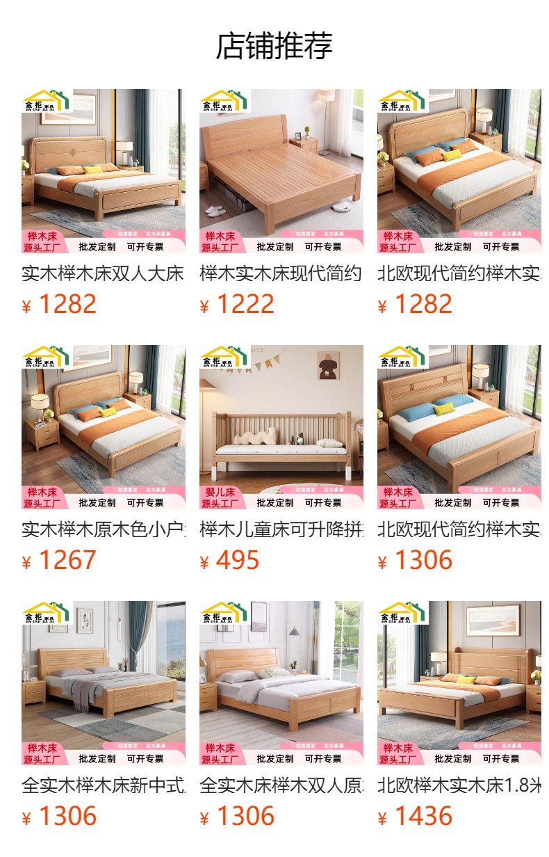 너도밤나무 원목 침대 1.8m 더블 침대 1.2m 작은 아파트 싱글 침대 북유럽 로그 컬러 마스터 침실 수납 웨딩 침대스토어 가기