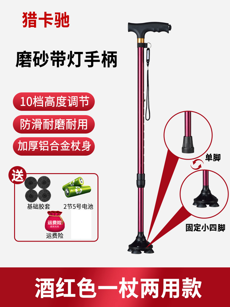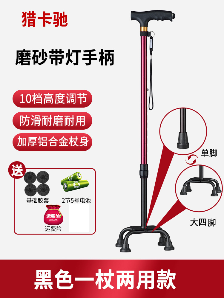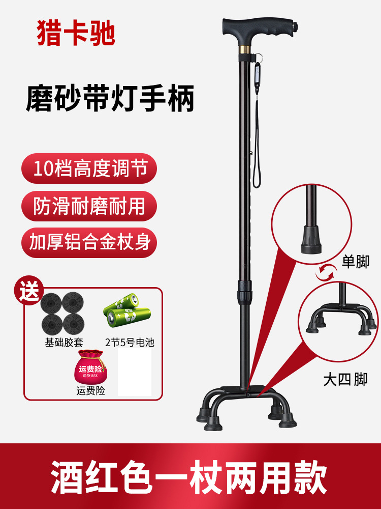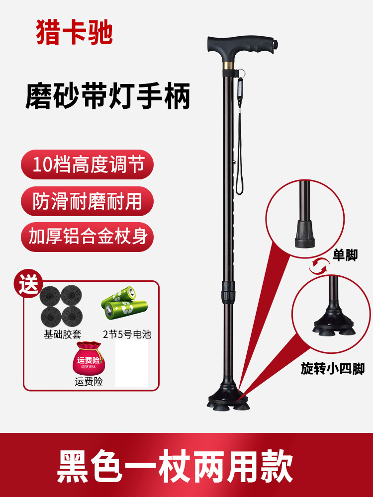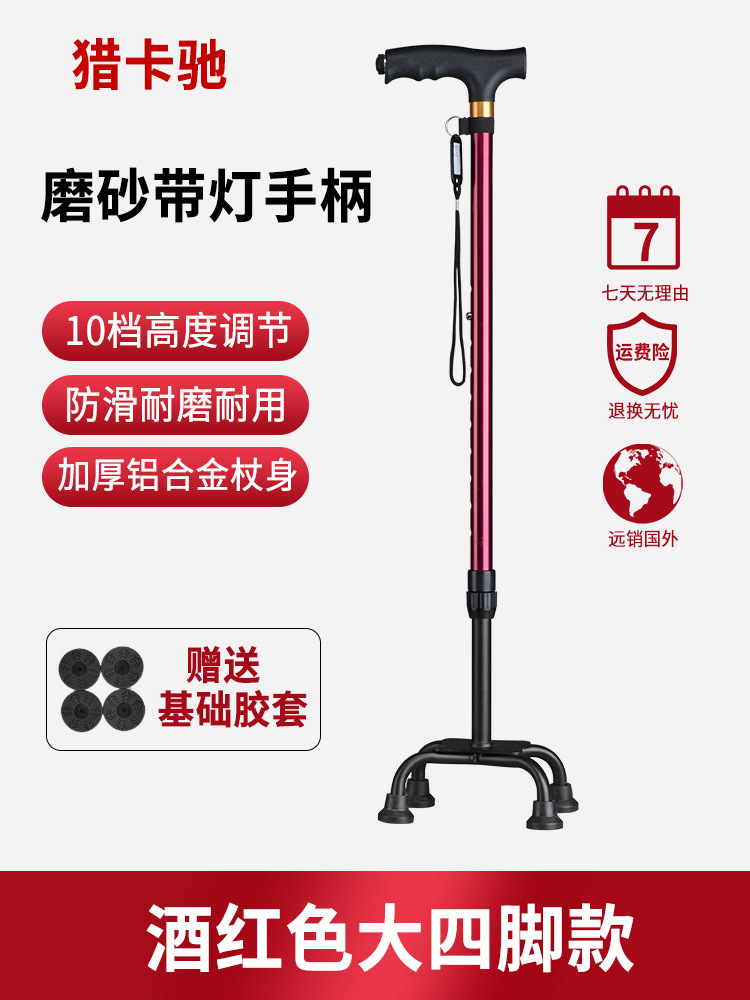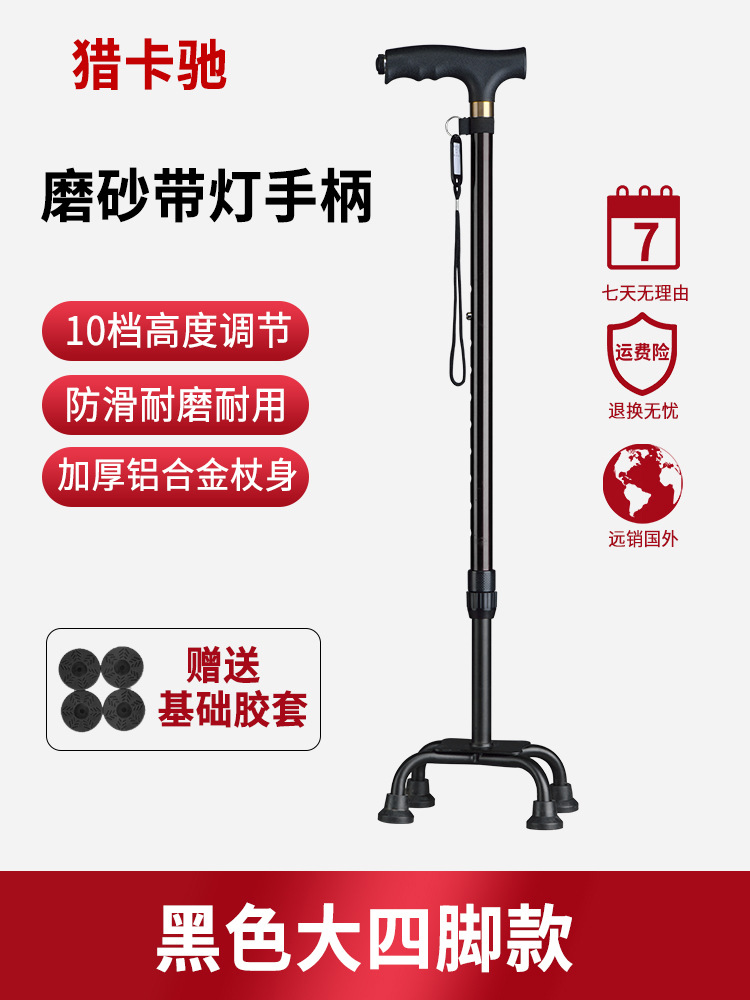 노인을 위한 미끄럼 방지 지팡이, 가벼운 낙상 방지 지팡이, 조명이 있는 알루미늄 합금 대형 사각 지팡이