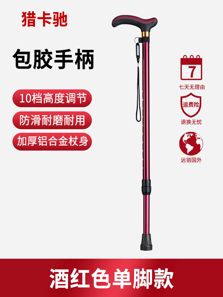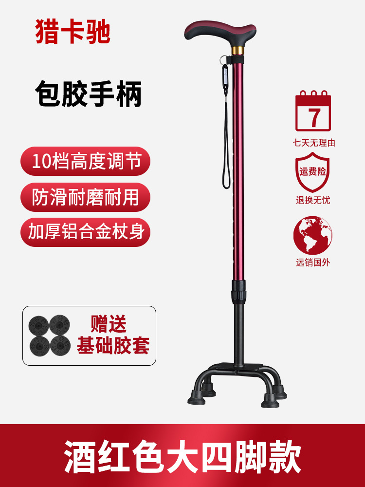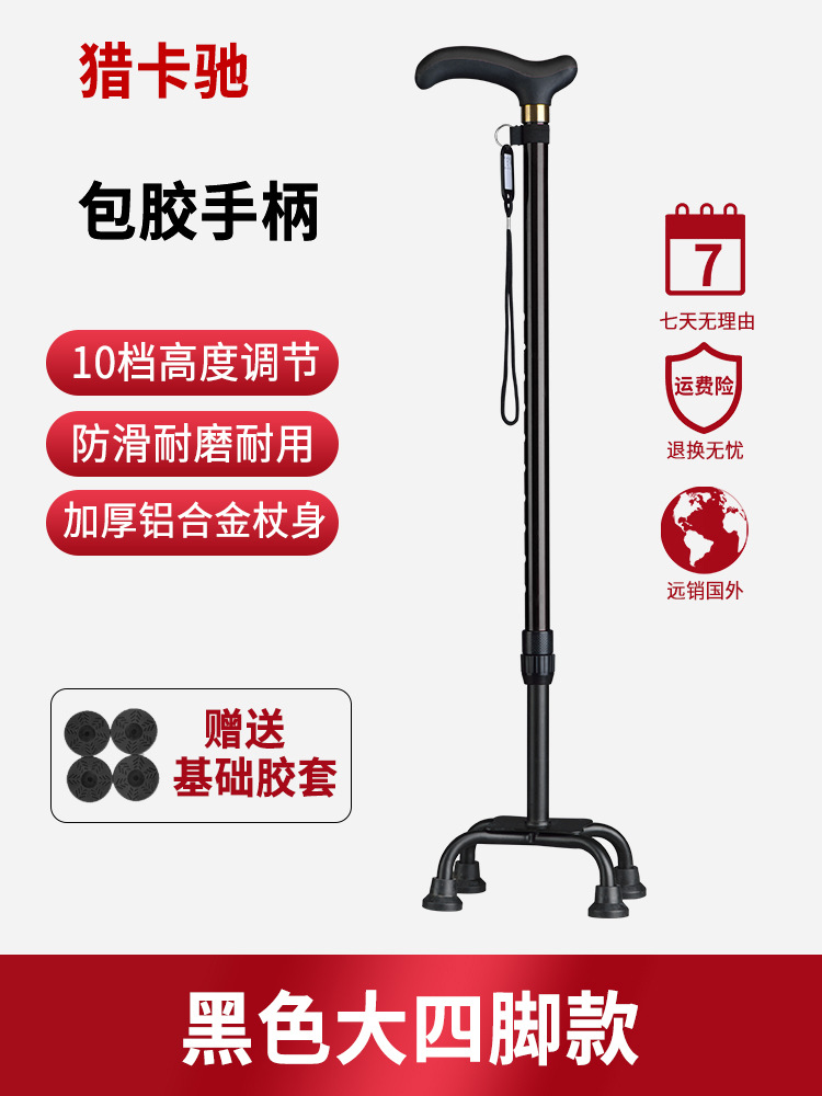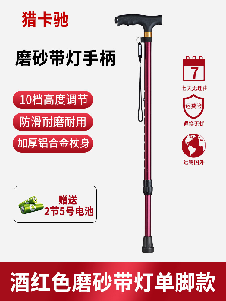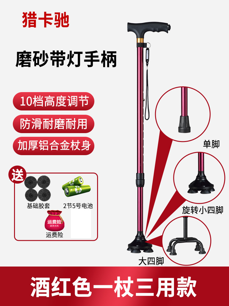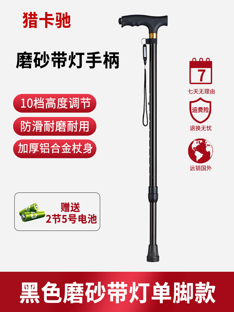 노인을 위한 미끄럼 방지 지팡이, 가벼운 낙상 방지 지팡이, 조명이 있는 알루미늄 합금 대형 사각 지팡이