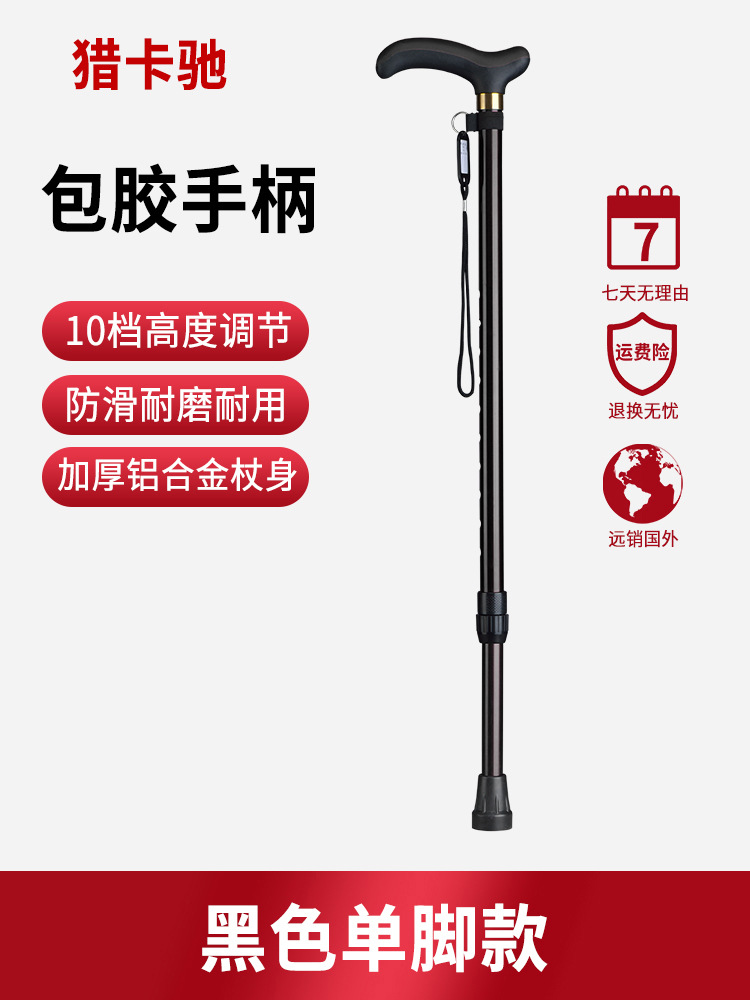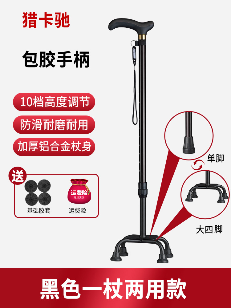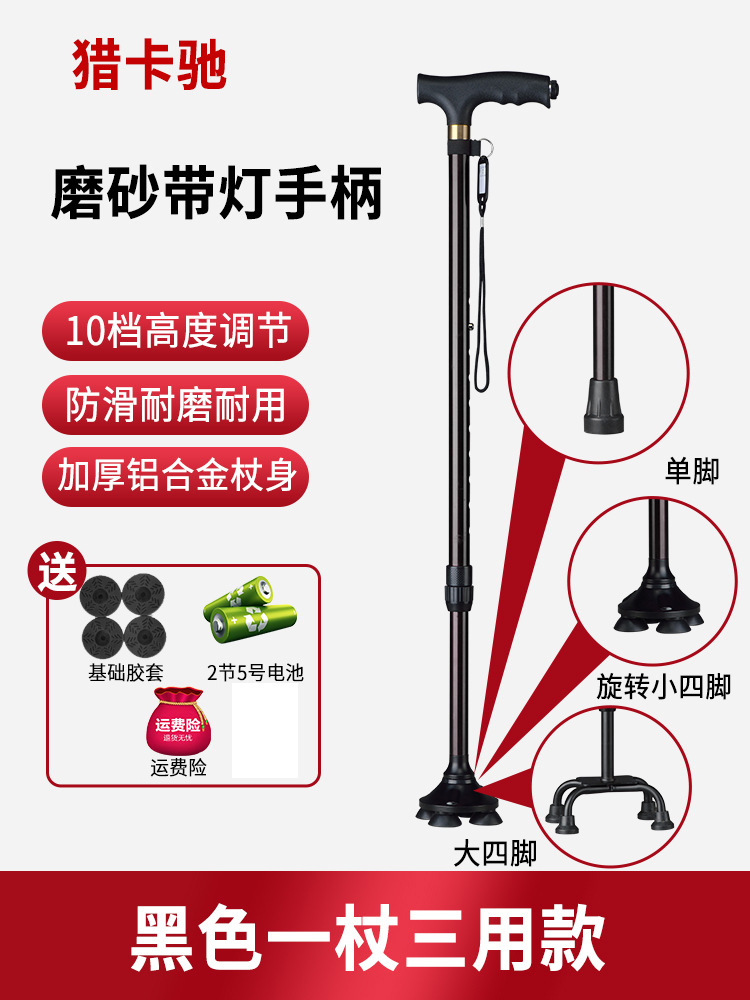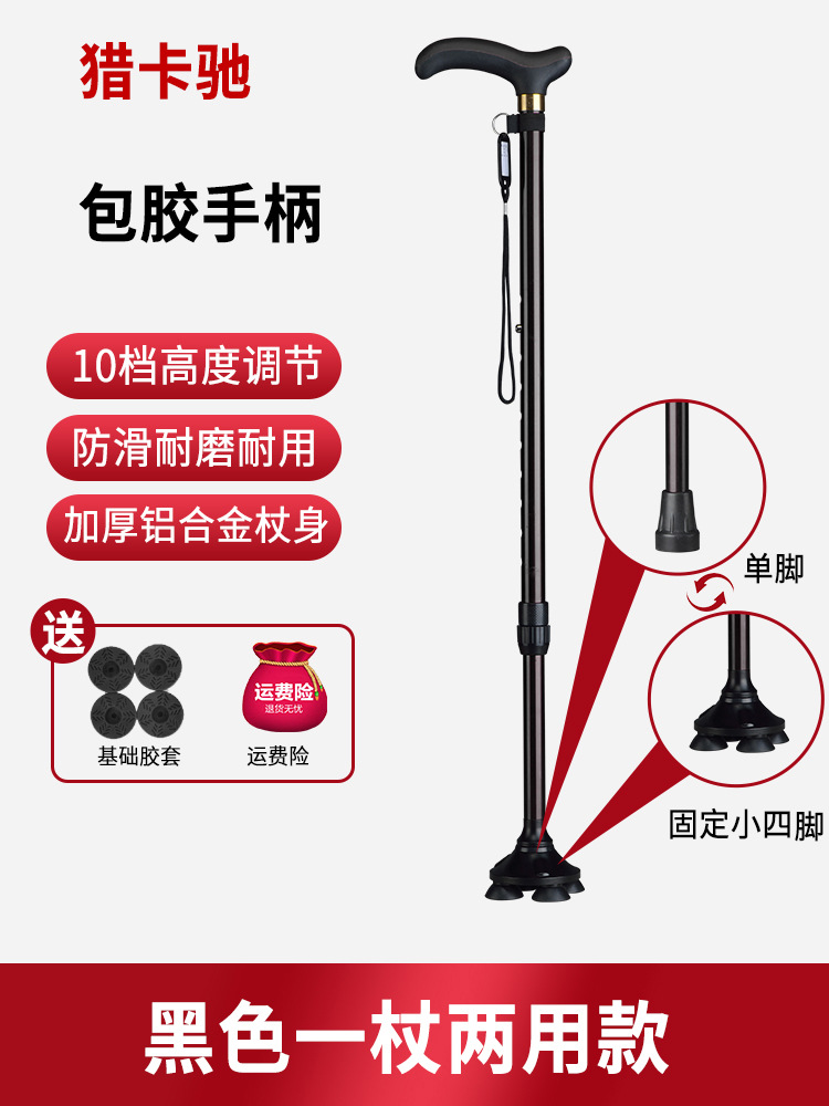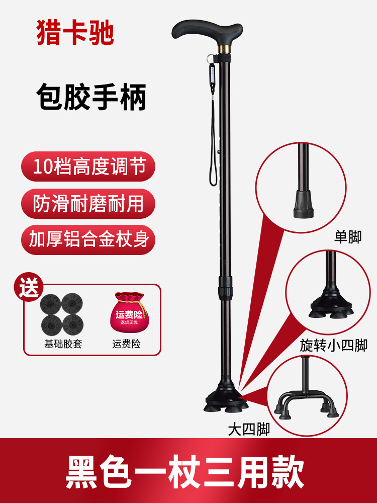 • 검정색 고무 코팅 손잡이 3-in-1 다용도 지팡이 ♢♢