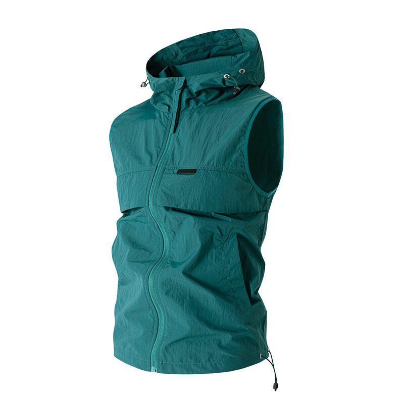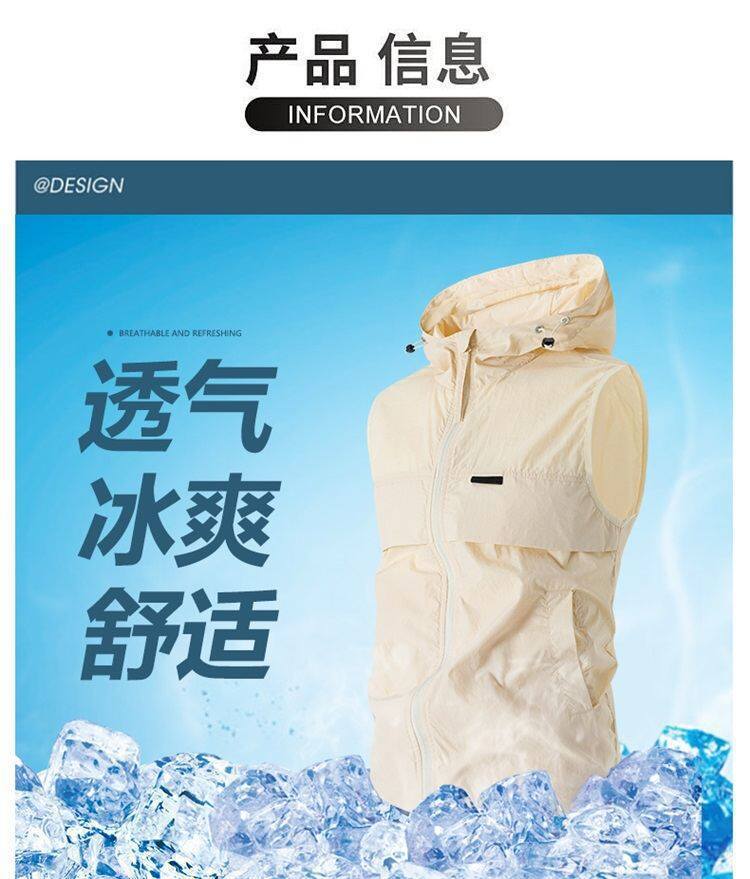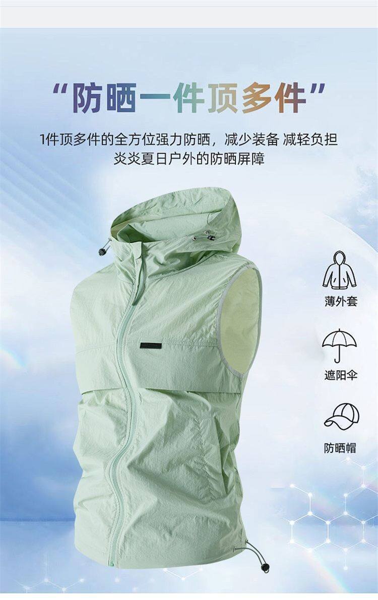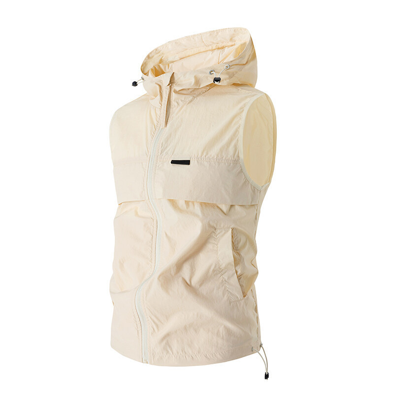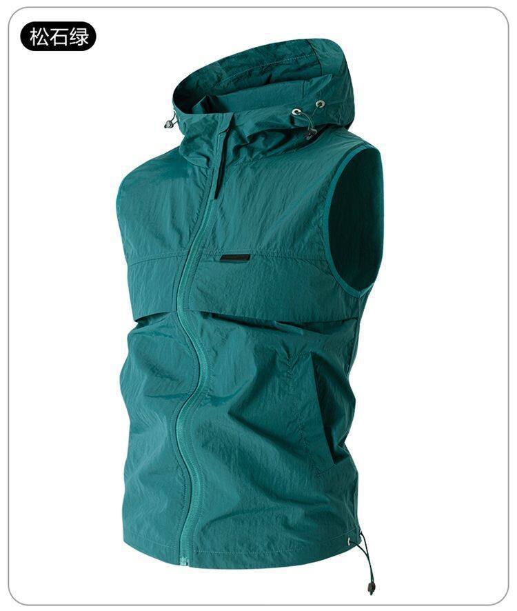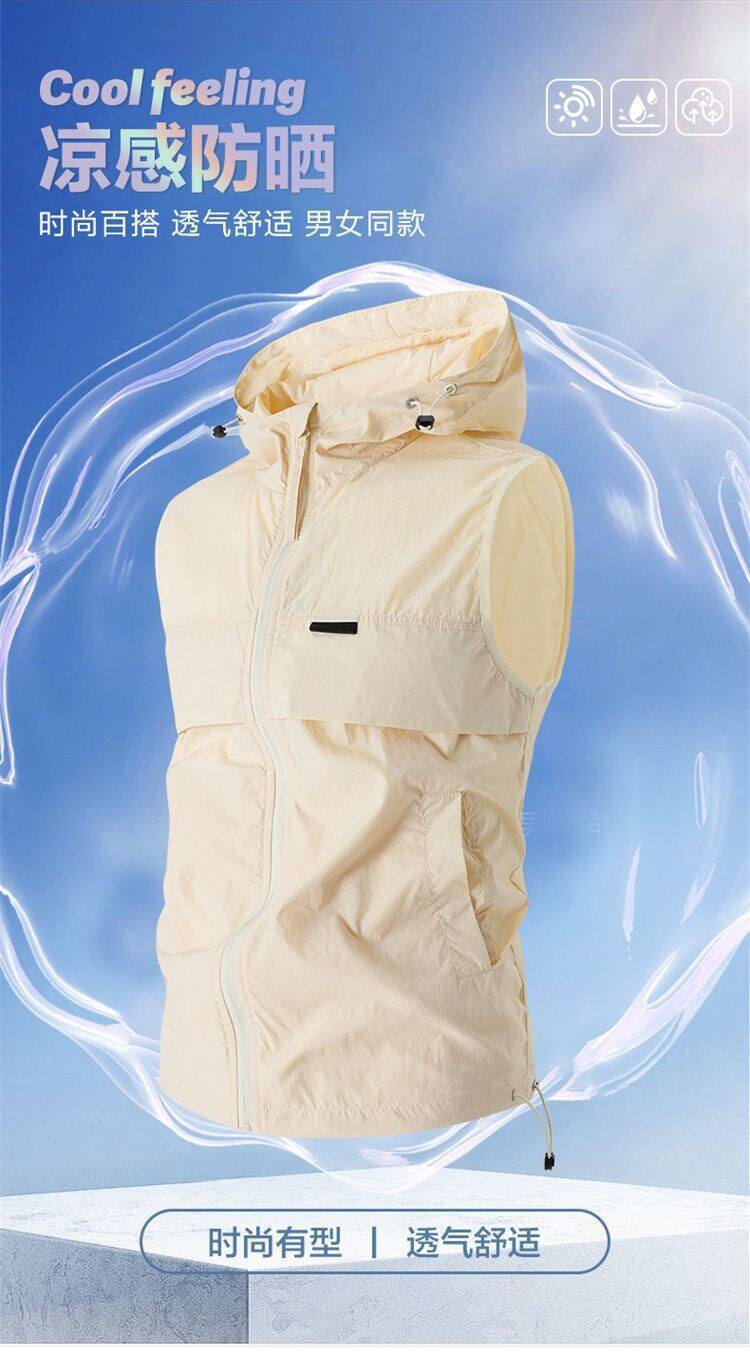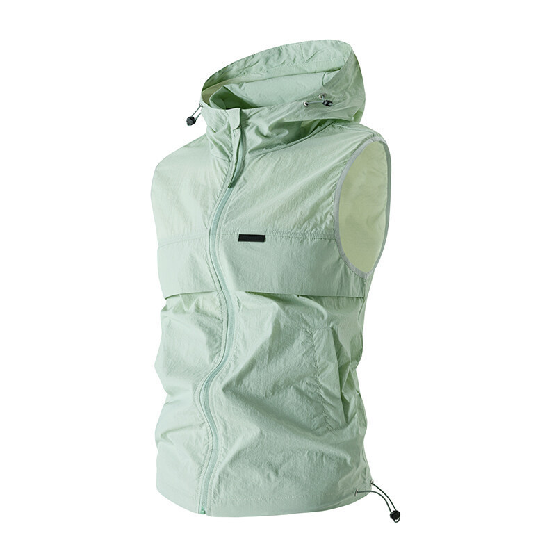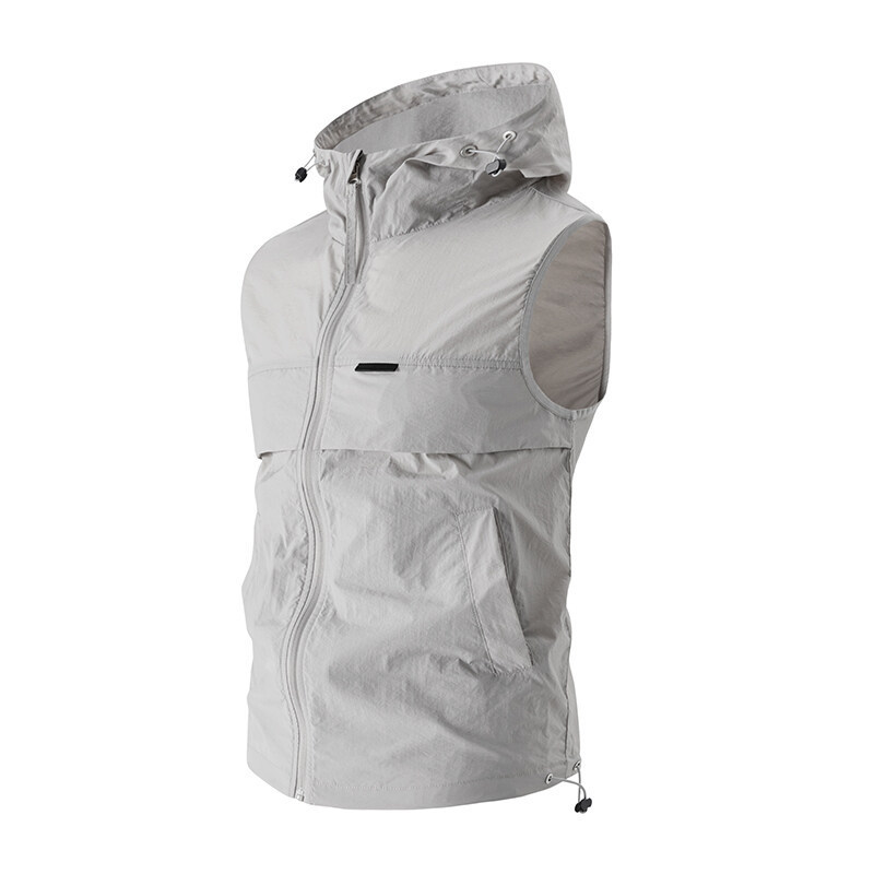 유럽과 미국 남성 후드 스포츠 조끼, 등산 및 달리기 자외선 차단 의류, 얼음 실크 야외 사이클링 의류, 민소매 코트, 가디건스토어 가기