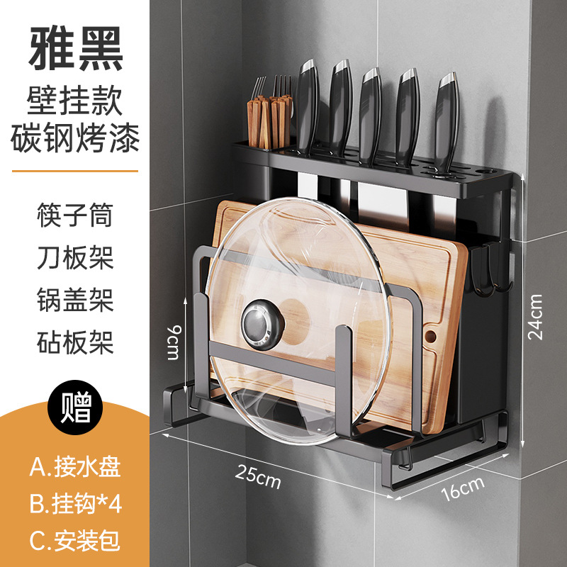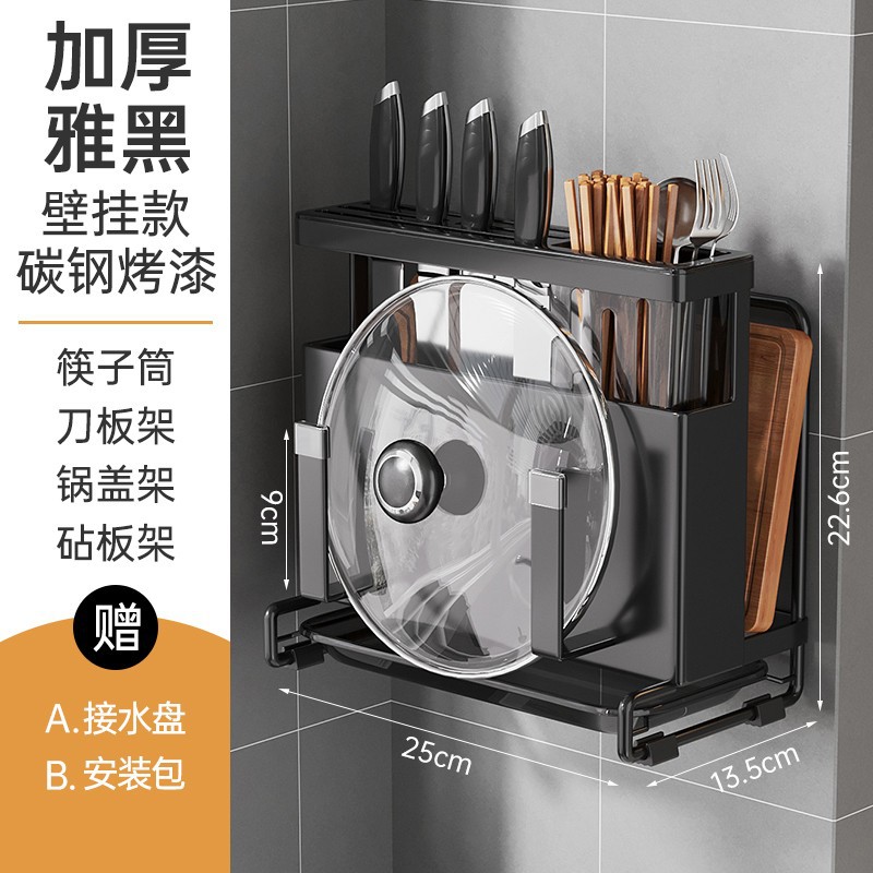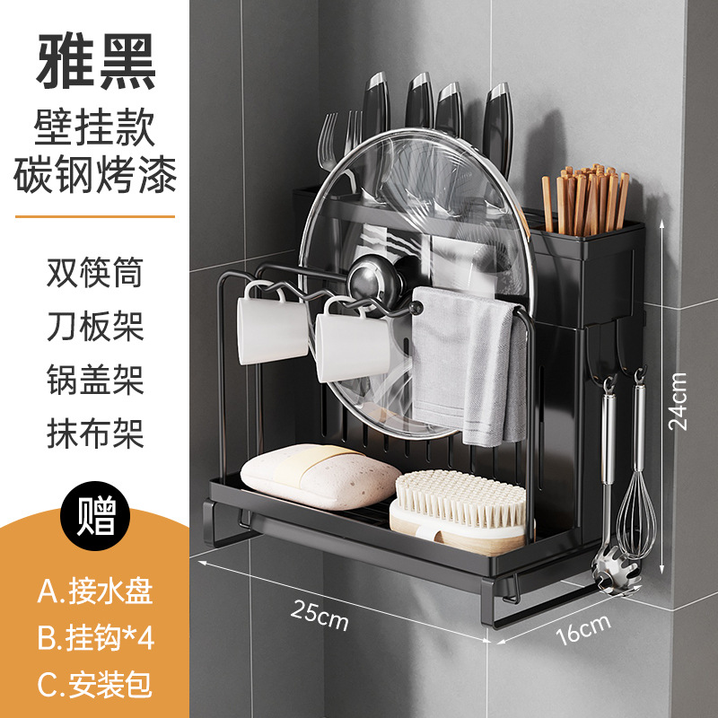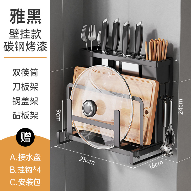 • 탄소강 블랙 [벽걸이형 두꺼운 모델] - 단일 젓가락통 + 배수 트레이 ☆ ✦
