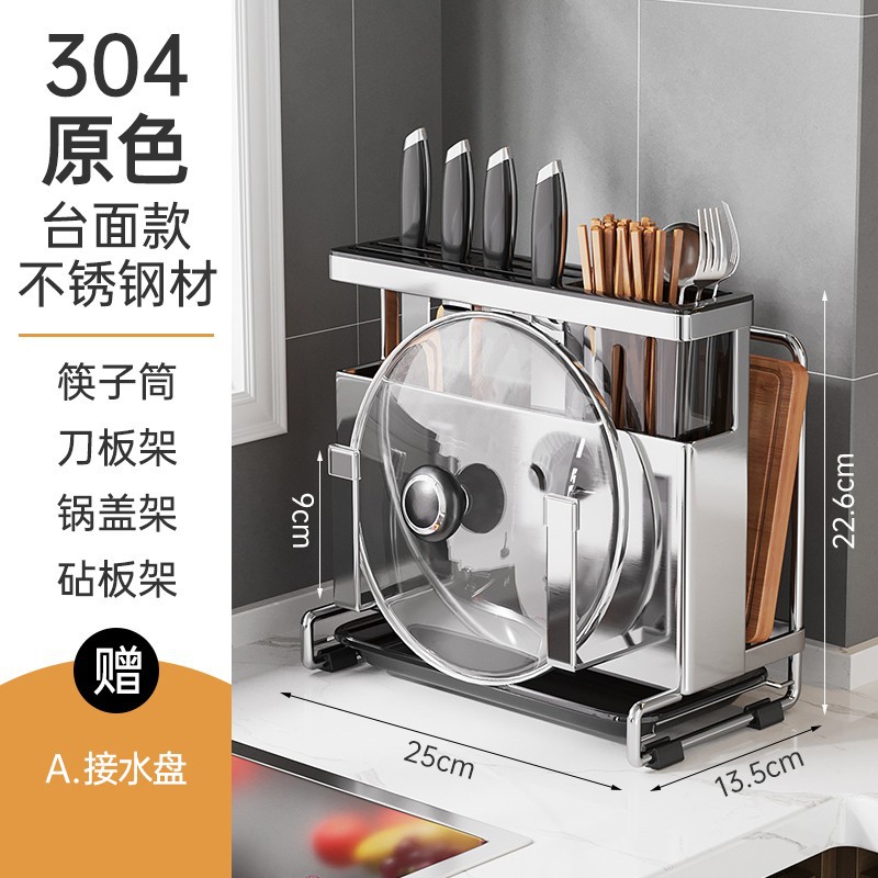 스테인레스 스틸 주방 칼 홀더 보관함 다기능 칼 홀더 도마 랙 통합 젓가락 튜브 보관 및 정리 랙스토어 가기