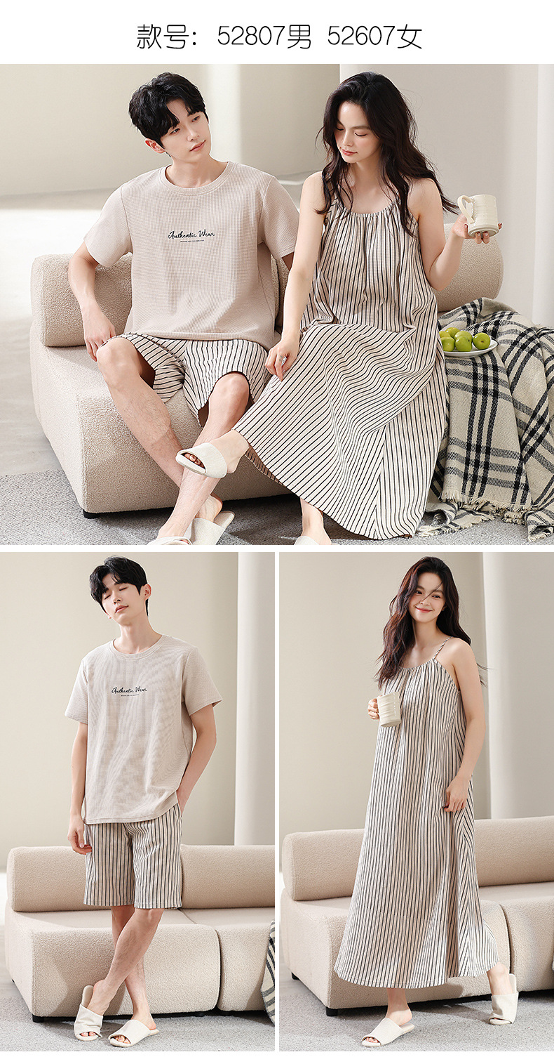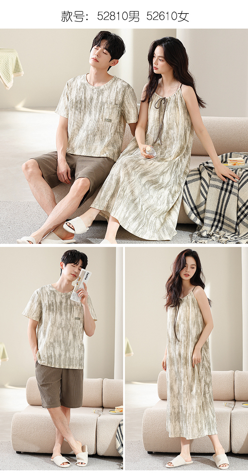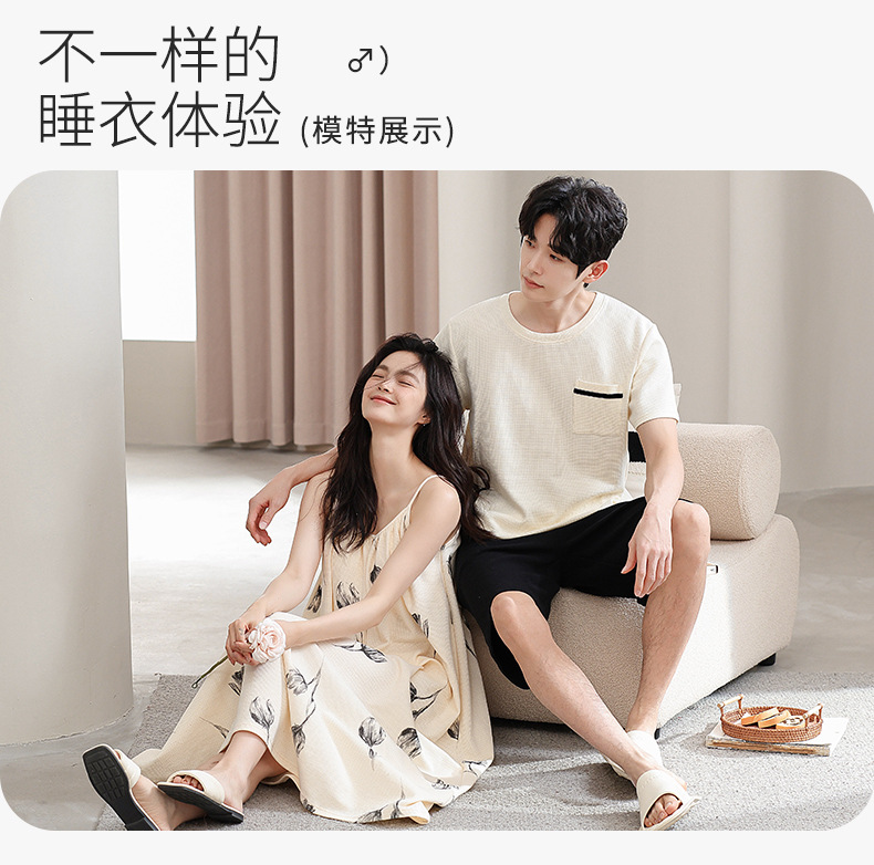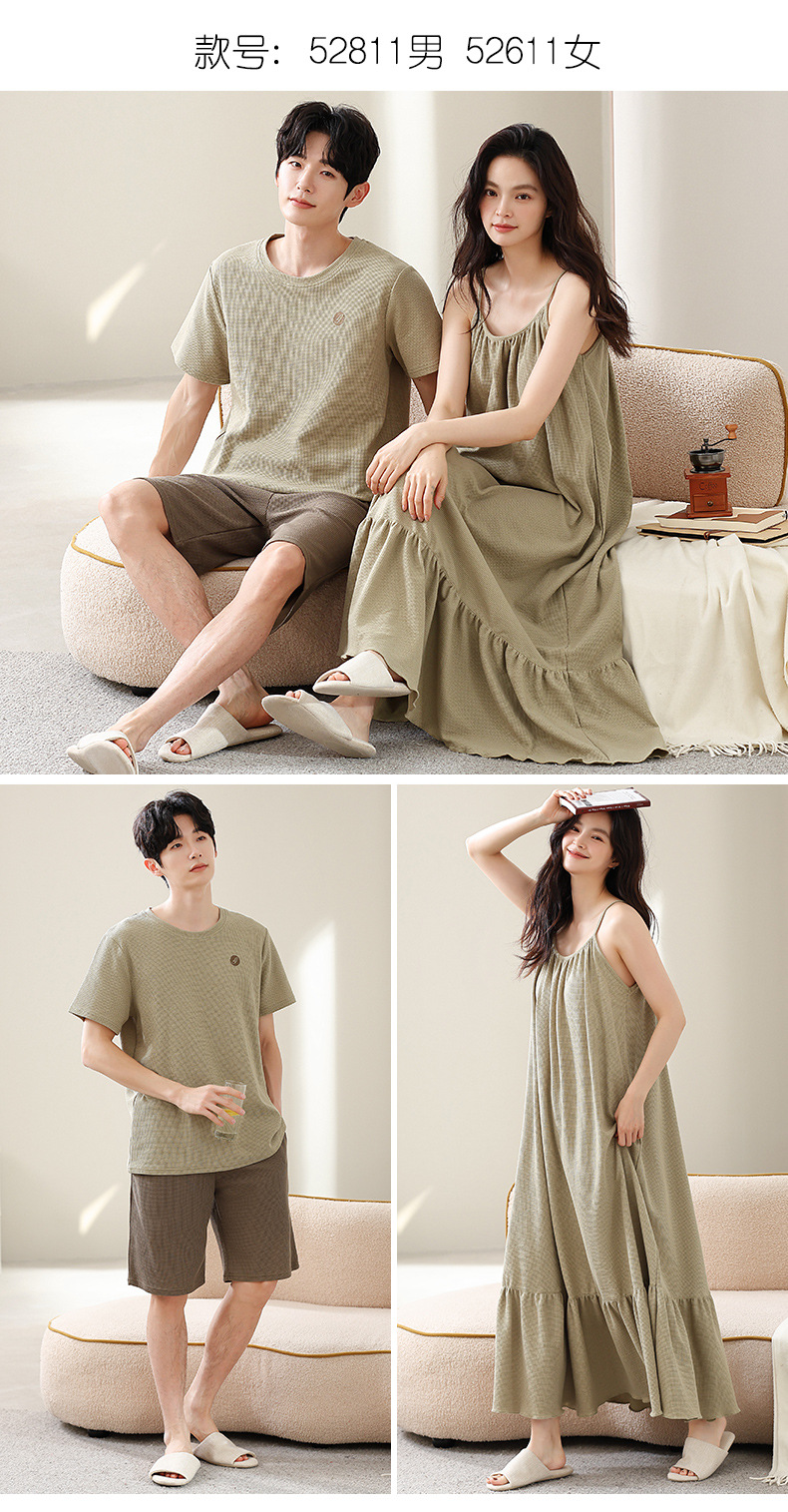 2025년 여름 신상 잠옷, 순면 와플 커플 스타일 남성 반바지, 여성 서스펜더 잠옷, 홈웨어스토어 가기