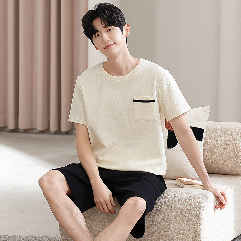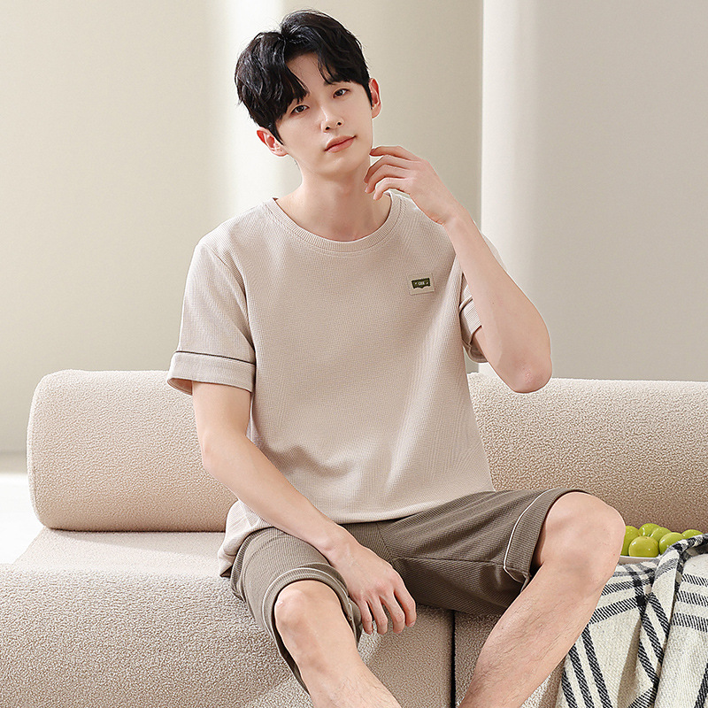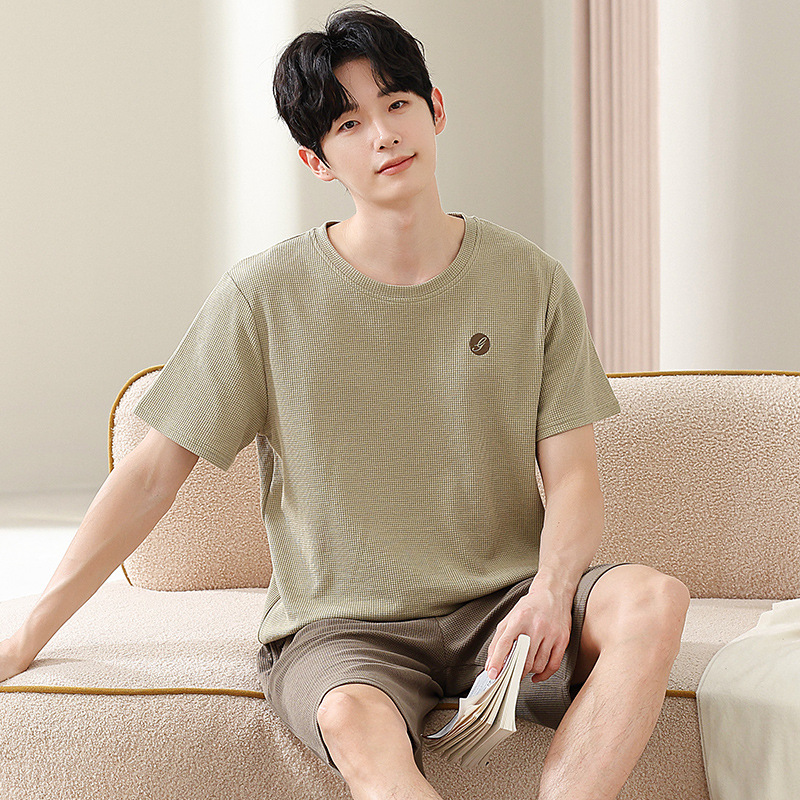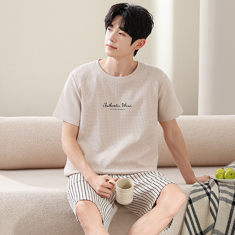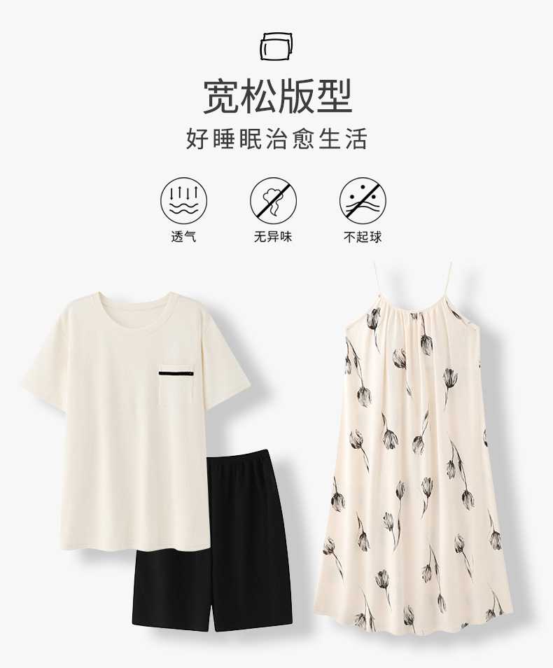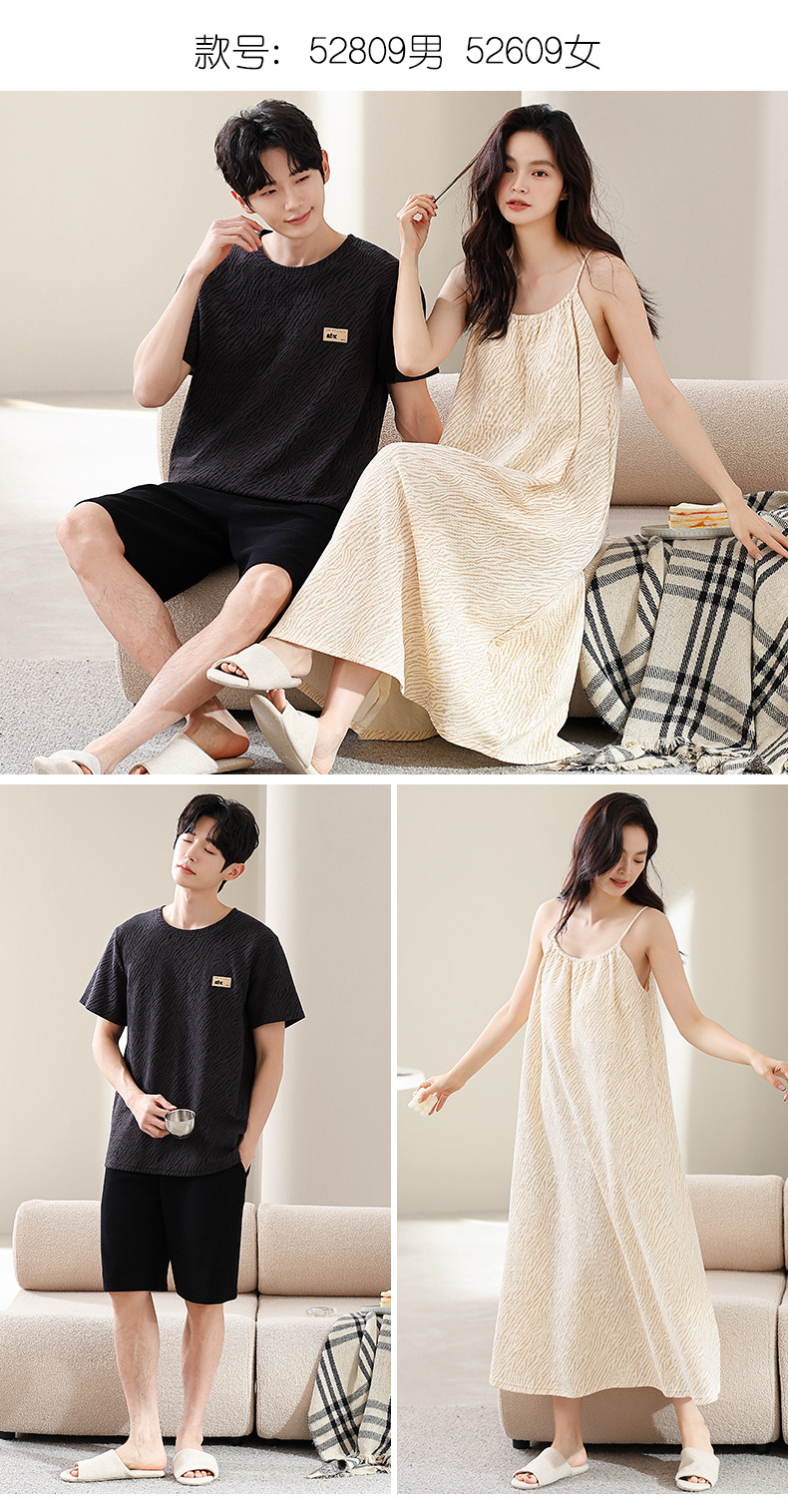 2025년 여름 신상 잠옷, 순면 와플 커플 스타일 남성 반바지, 여성 서스펜더 잠옷, 홈웨어스토어 가기