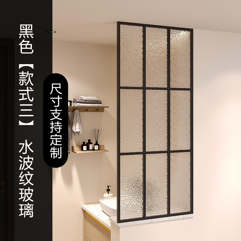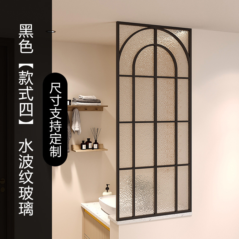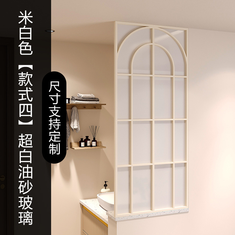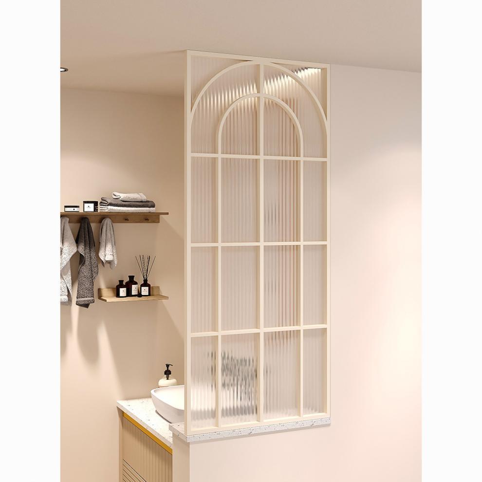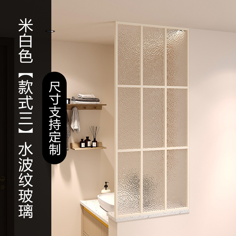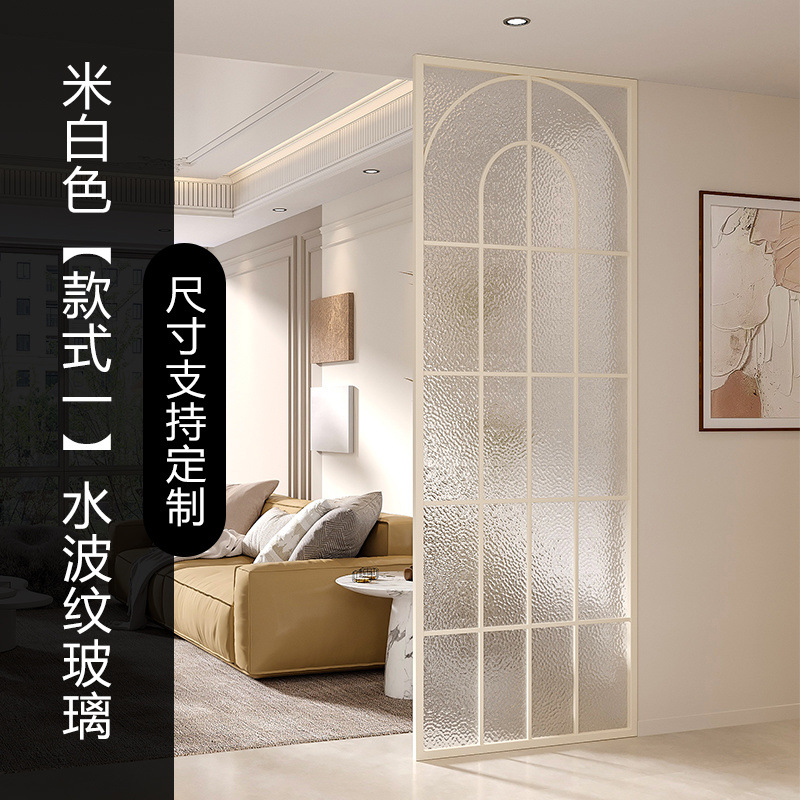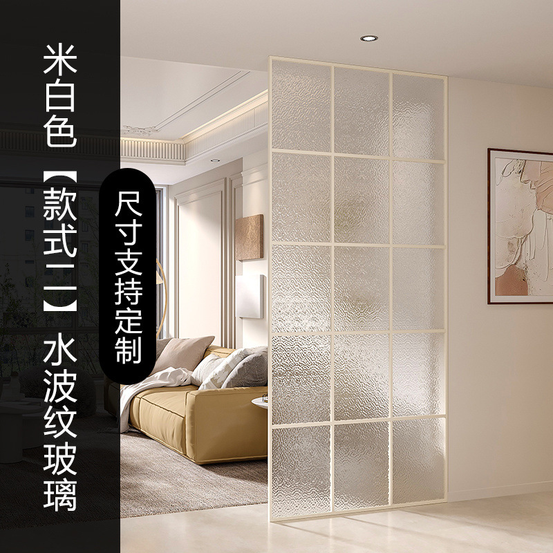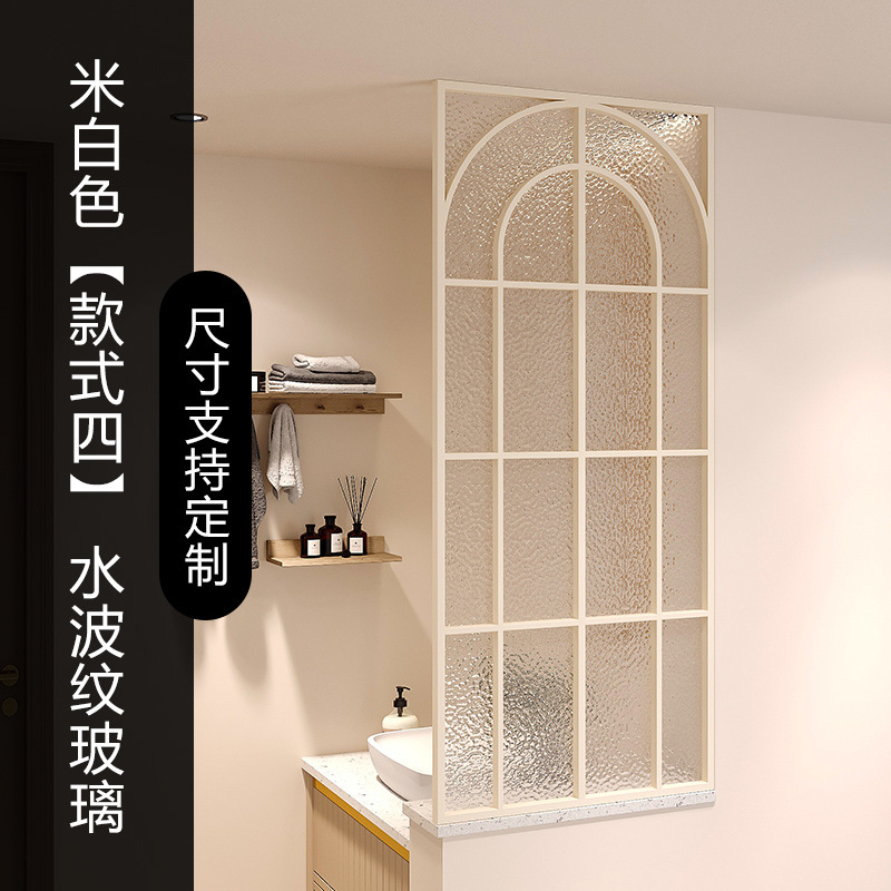 크림 스타일 Changhong 유리 파티션 거실 입구 현관 물 패턴 유리 반벽 욕실 철 스테인레스 스틸 스크린스토어 가기