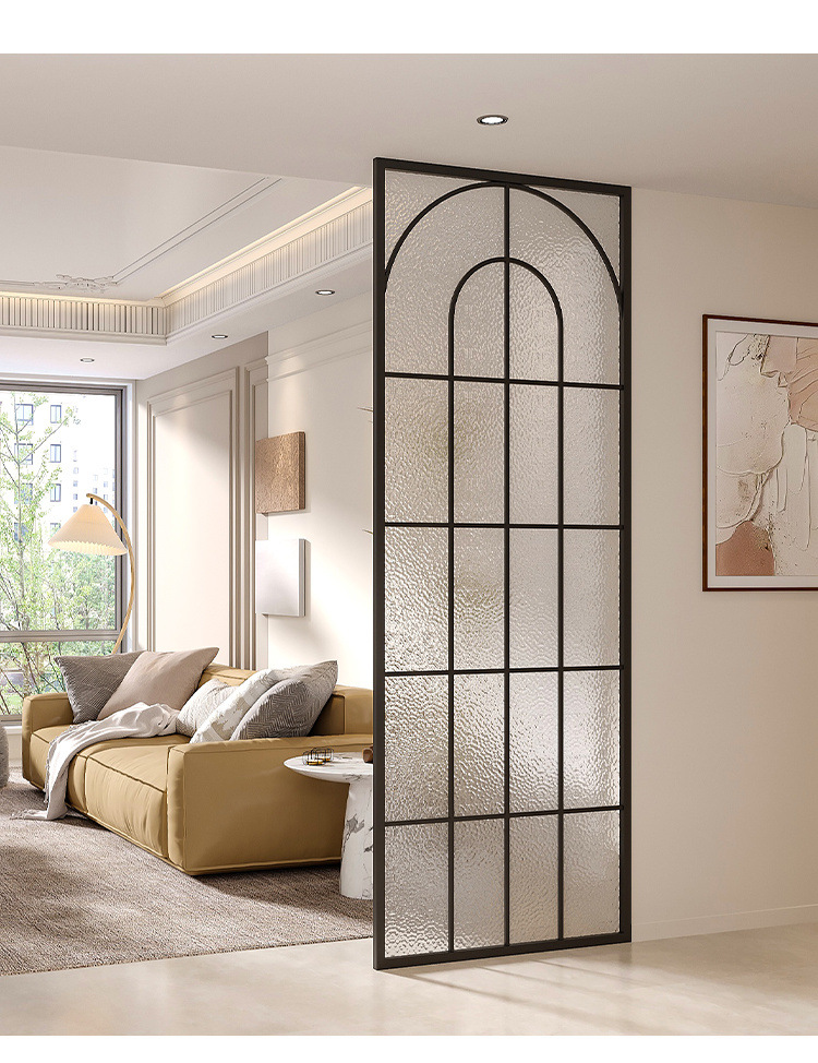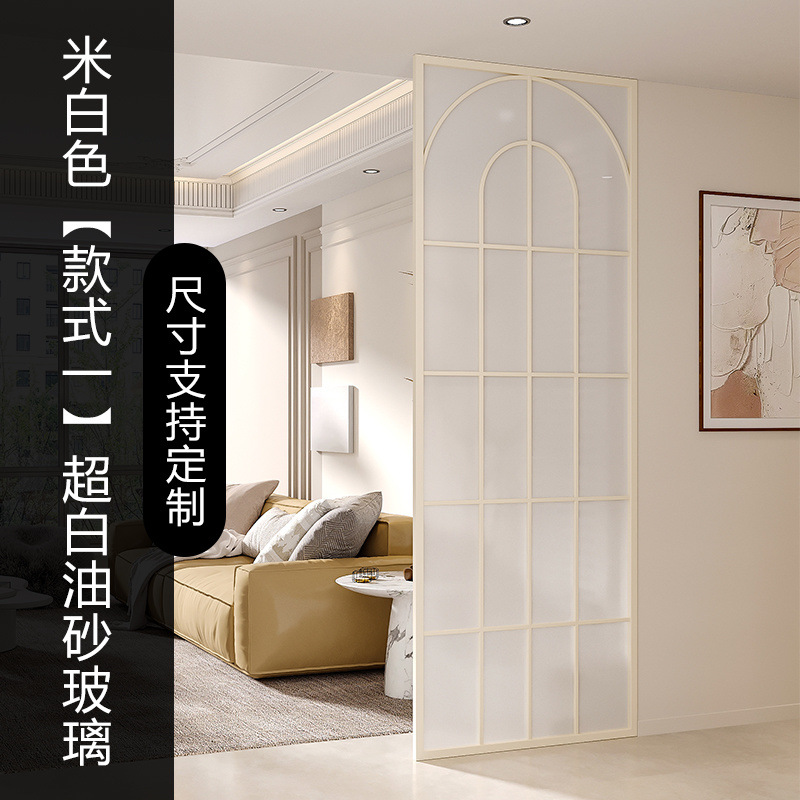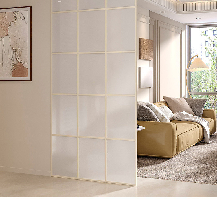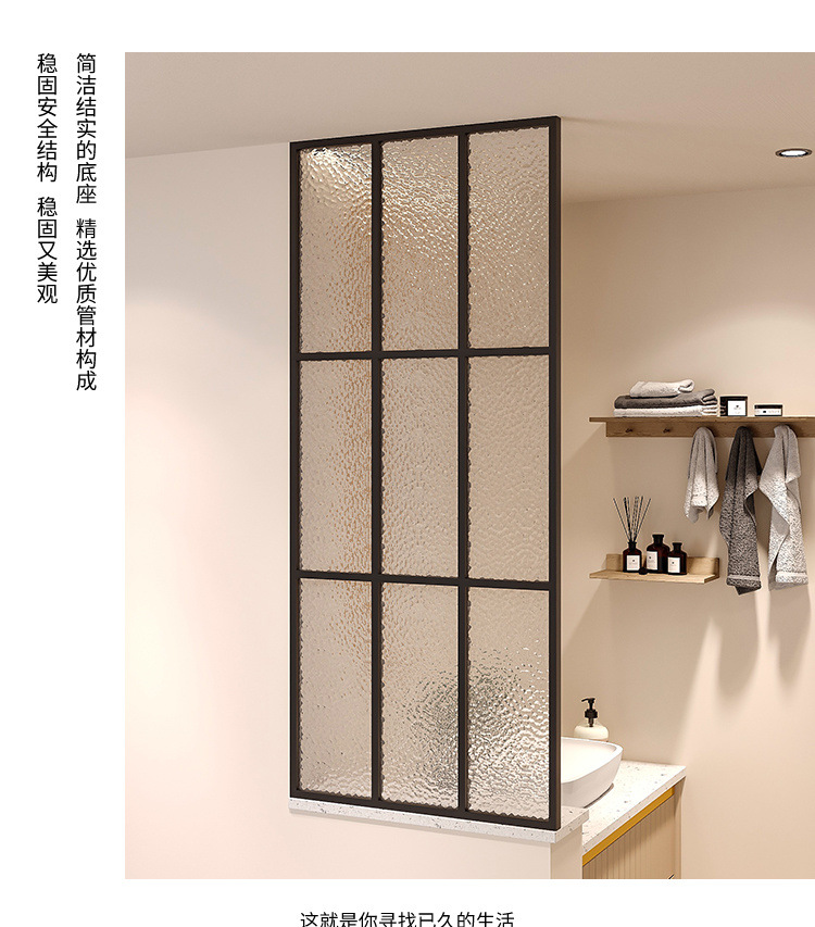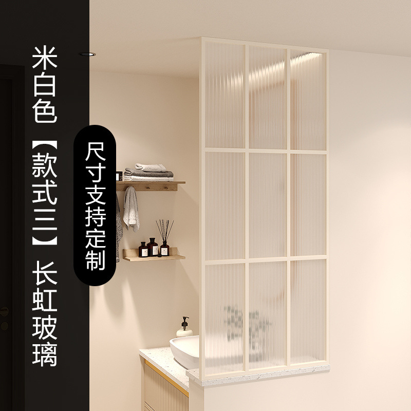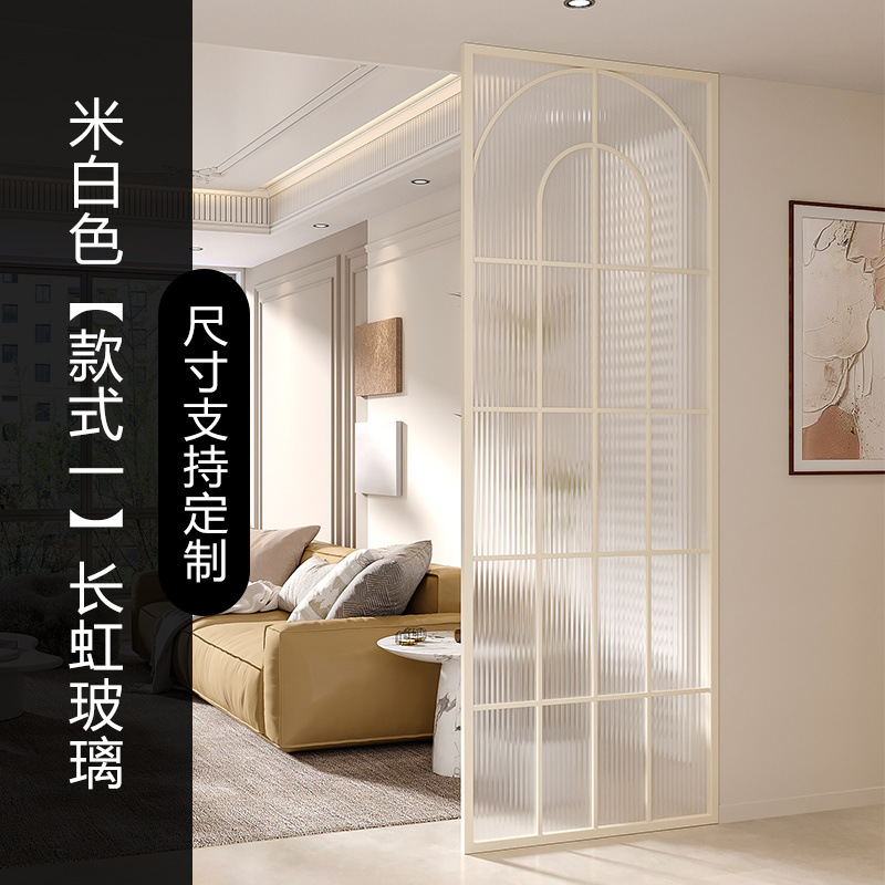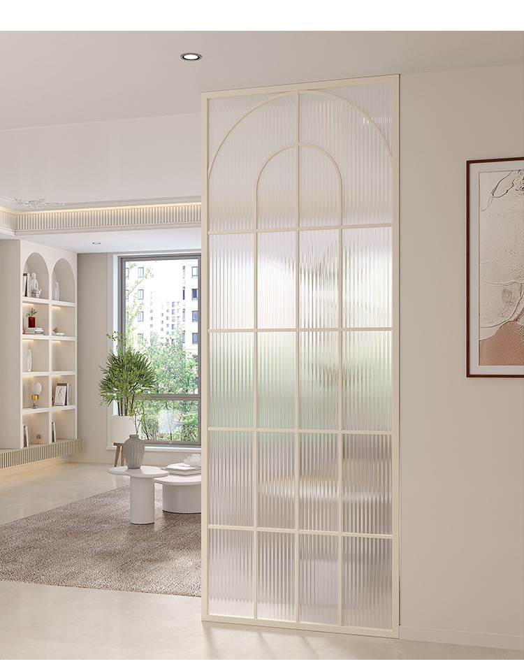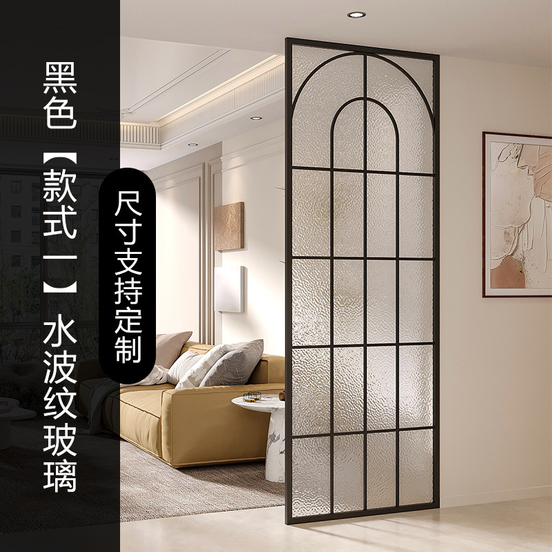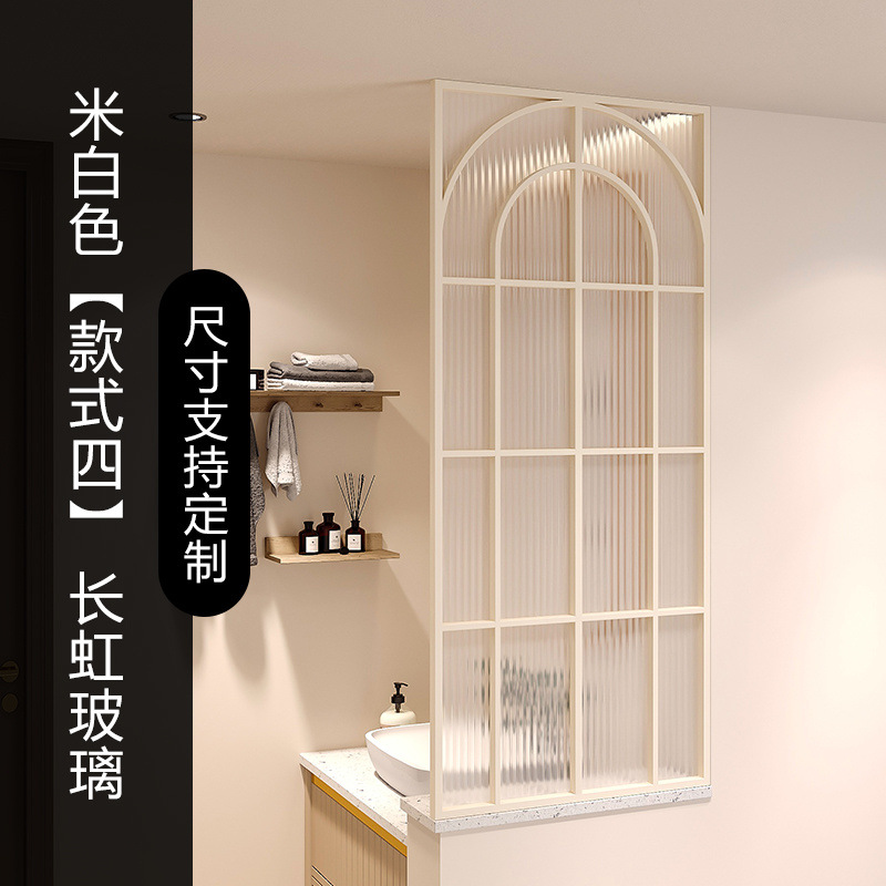 크림 스타일 Changhong 유리 파티션 거실 입구 현관 물 패턴 유리 반벽 욕실 철 스테인레스 스틸 스크린스토어 가기