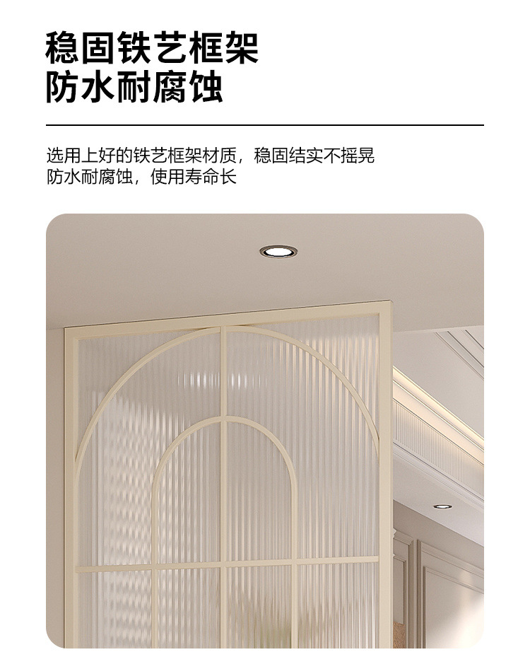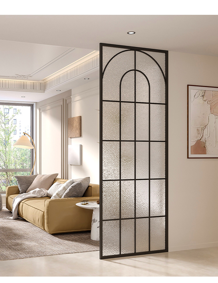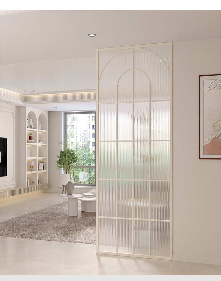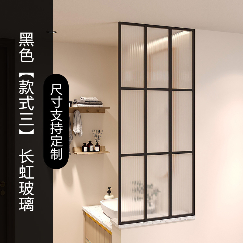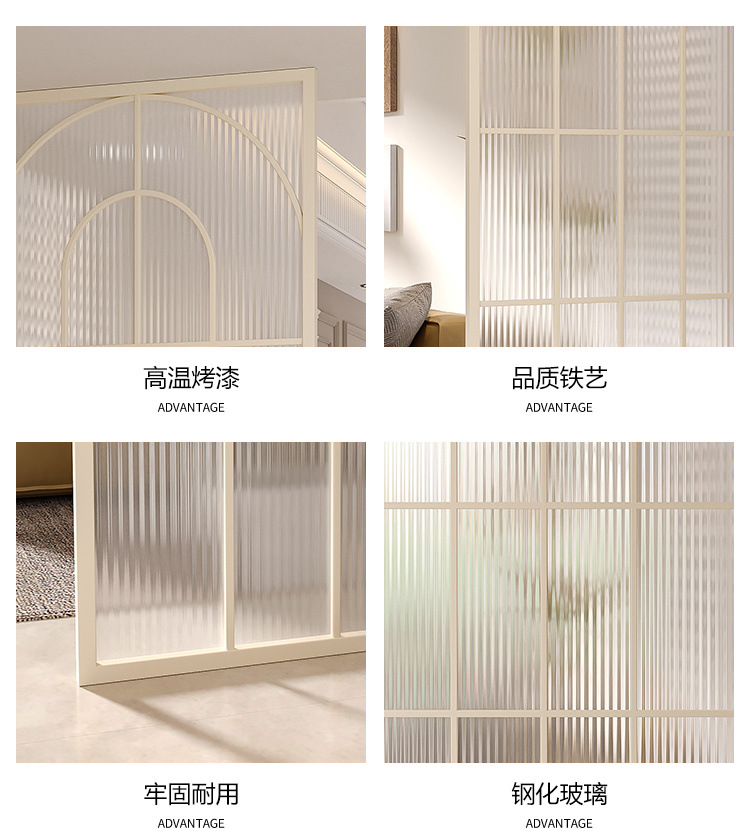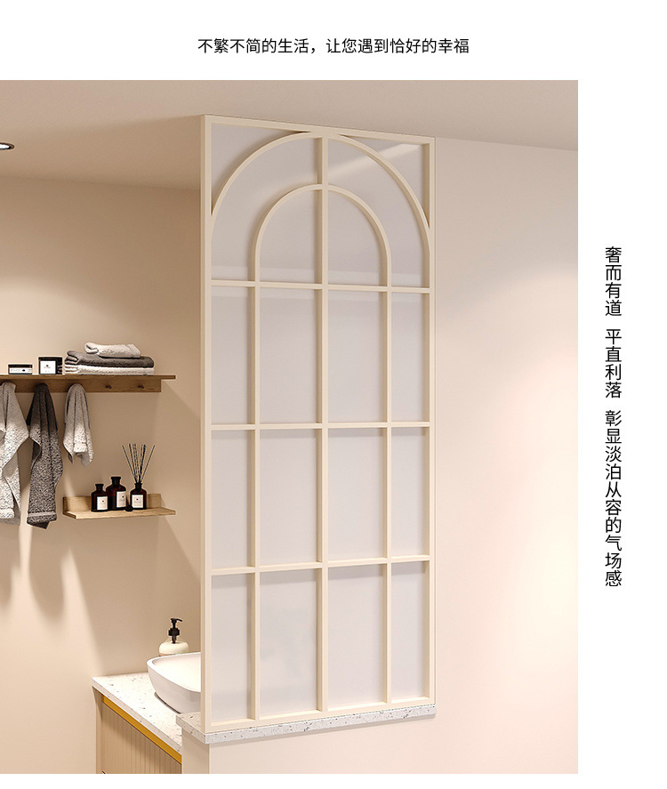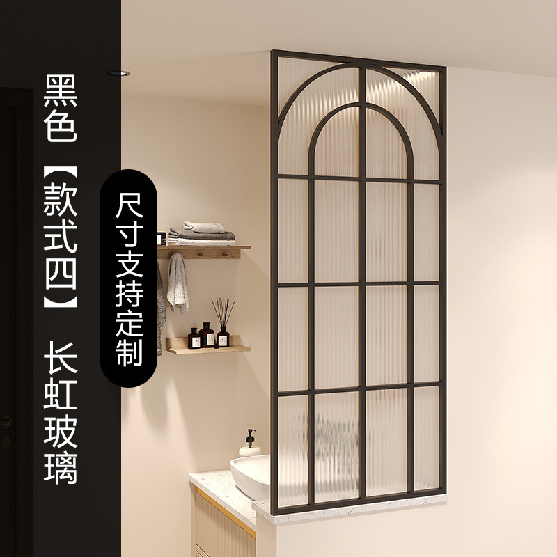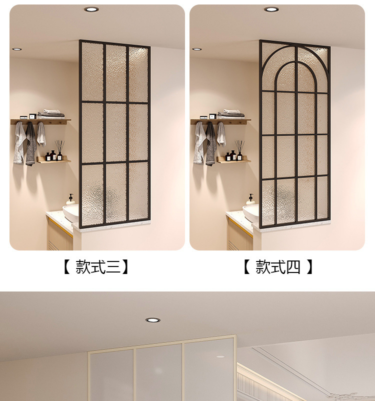 크림 스타일 Changhong 유리 파티션 거실 입구 현관 물 패턴 유리 반벽 욕실 철 스테인레스 스틸 스크린스토어 가기