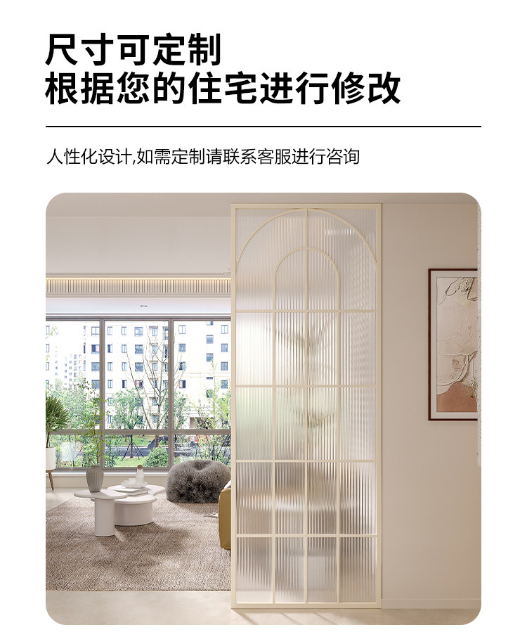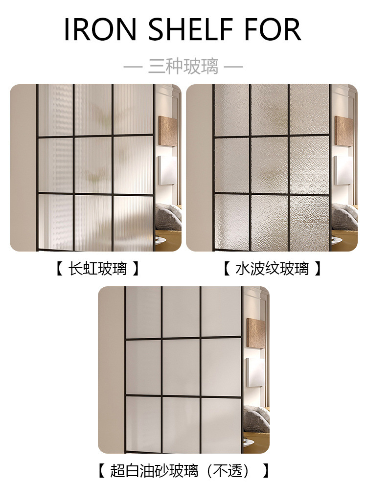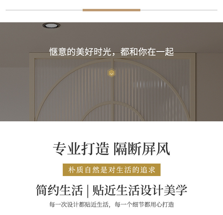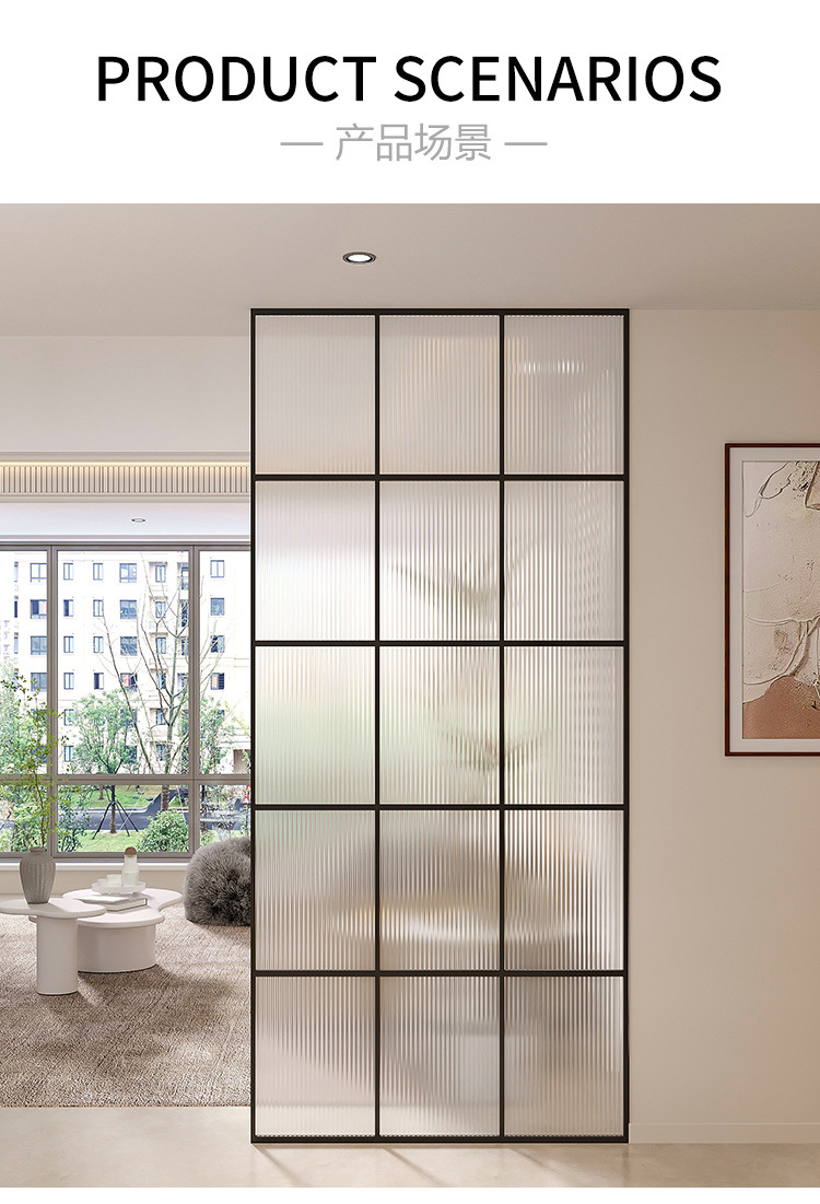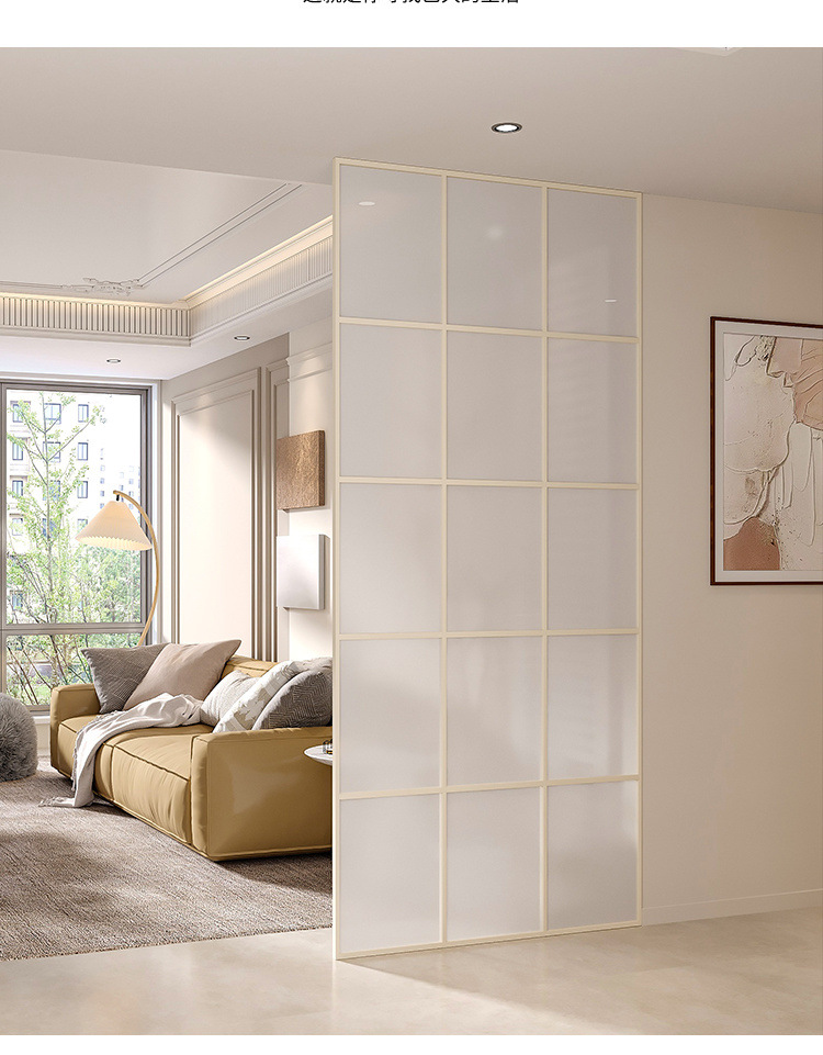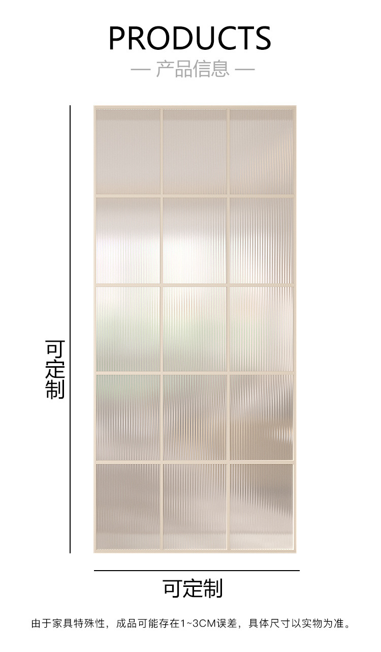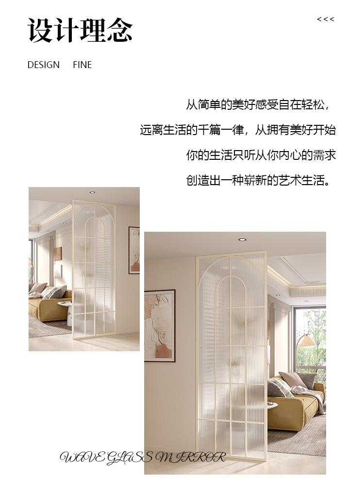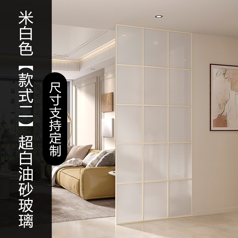 크림 스타일 Changhong 유리 파티션 거실 입구 현관 물 패턴 유리 반벽 욕실 철 스테인레스 스틸 스크린스토어 가기