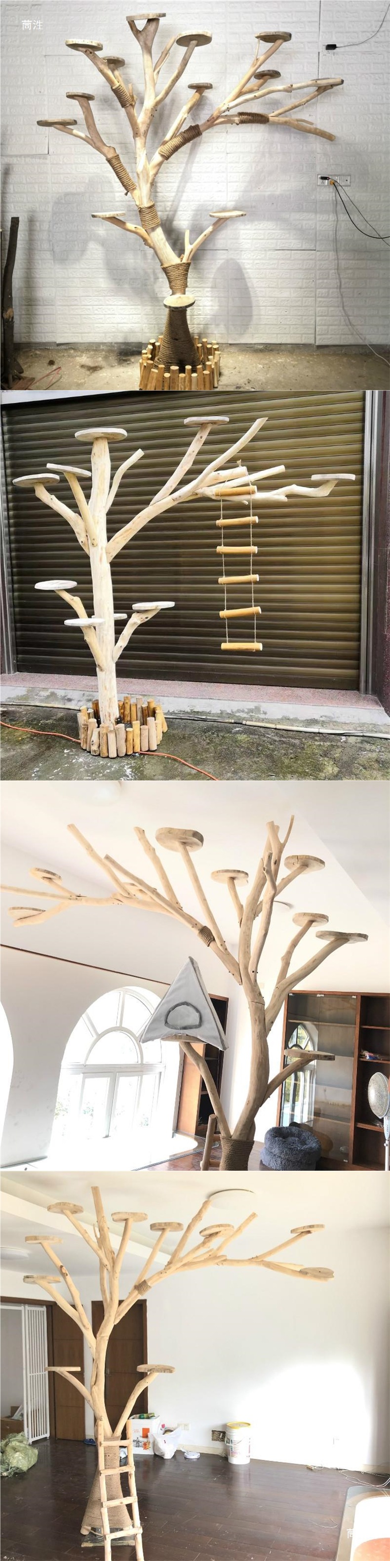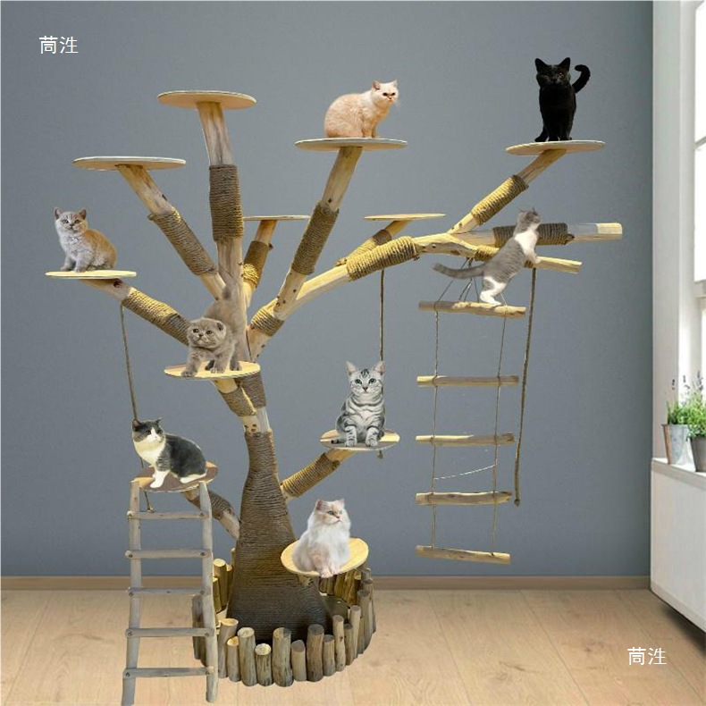 단단한 나무 고양이 클라이밍 프레임, 내마모성, 붙지 않는 모피, 부식 방지 통나무, 대형 고양이 둥지, 인터넷 연예인 고양이 클라이밍 트리 애완동물스토어 가기