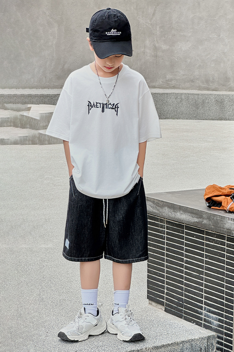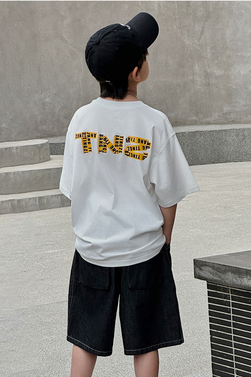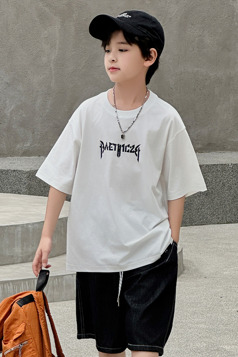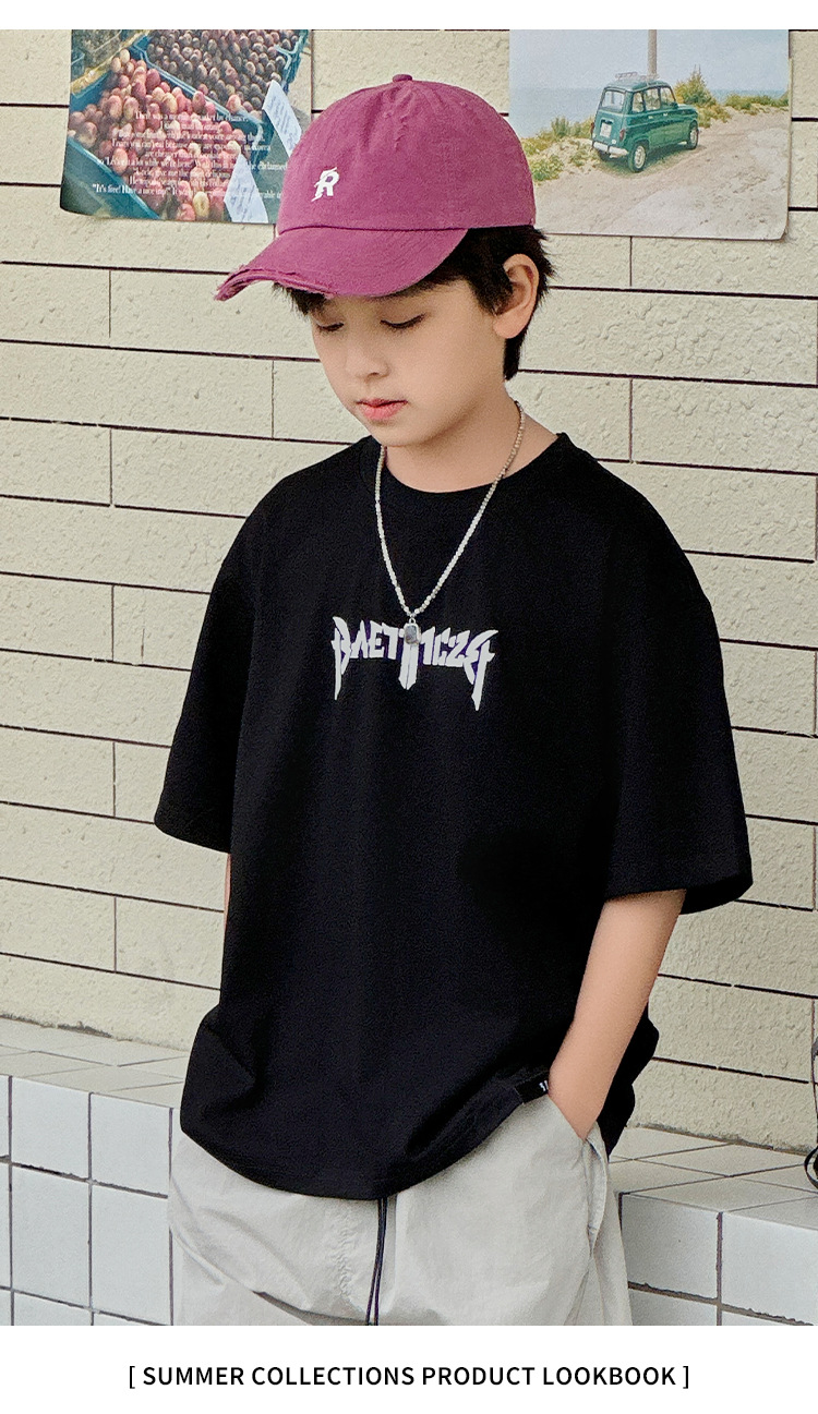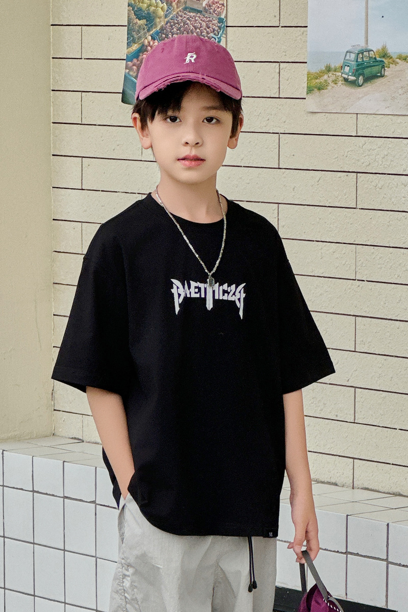 아동용 반팔 티셔츠 2025 소년 여름 신작 트렌디 브랜드 프린트 시원한 디자인 루즈한 반팔 탑스토어 가기