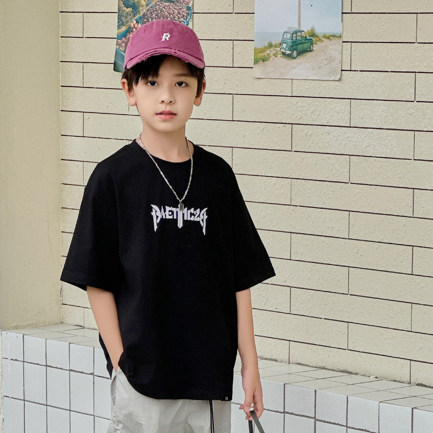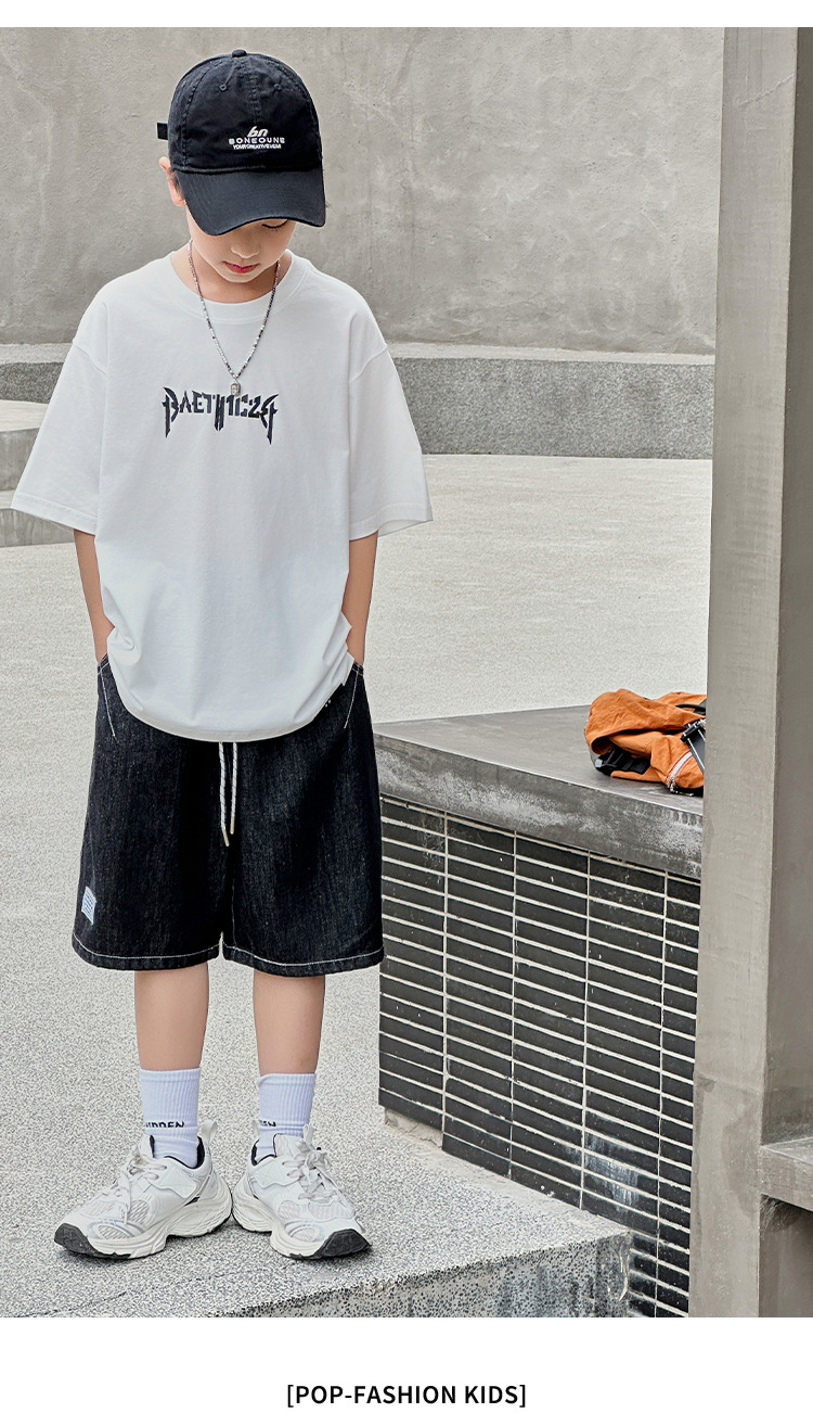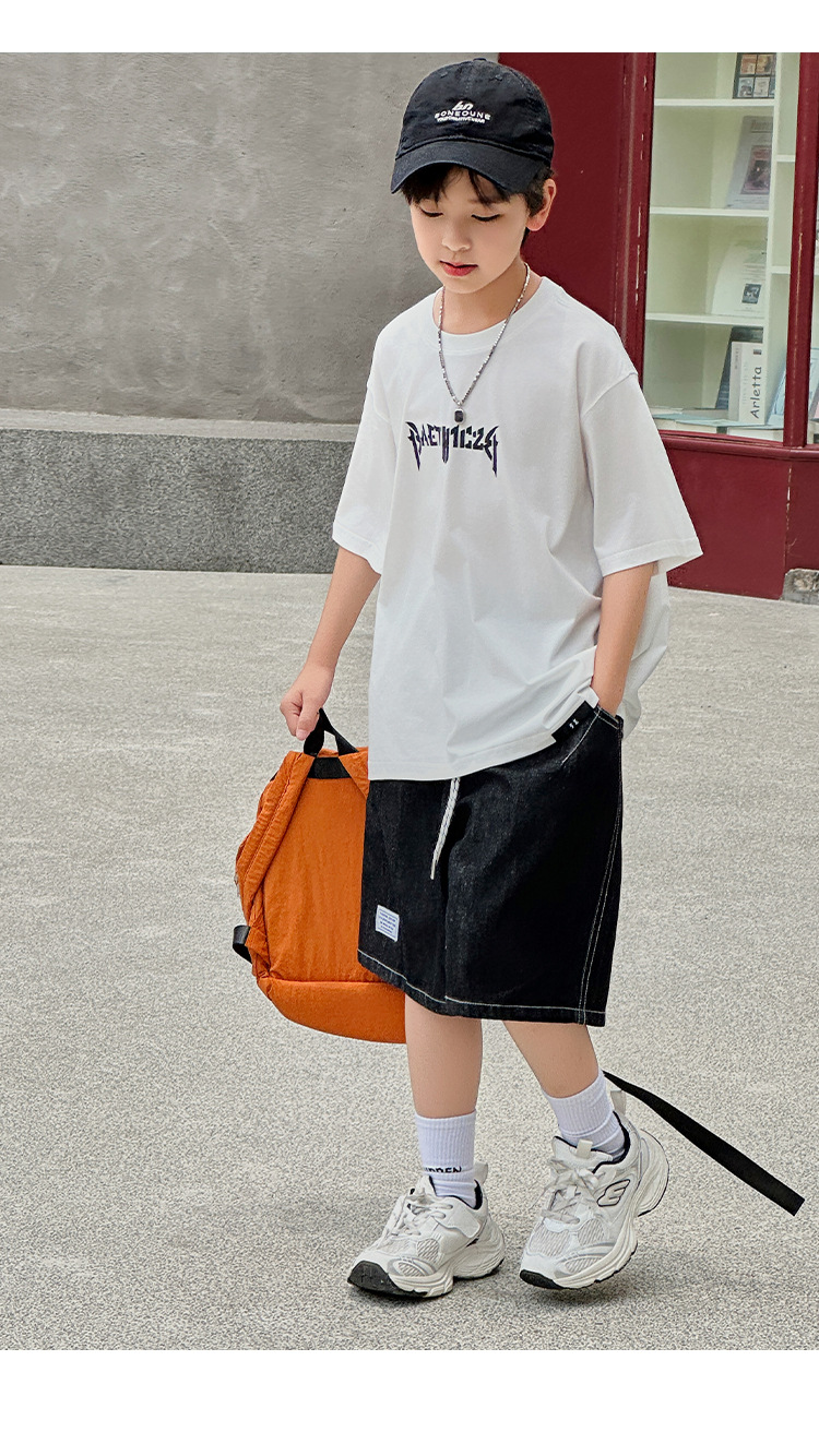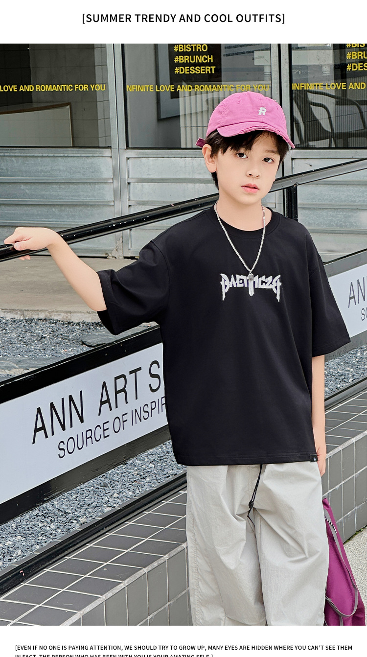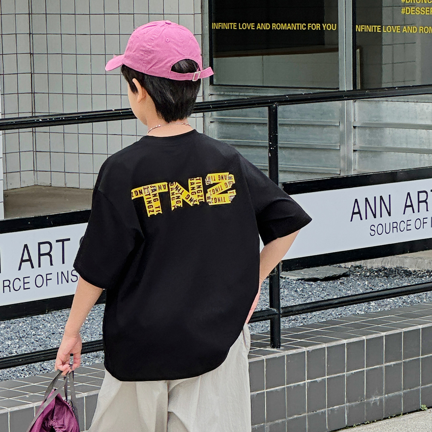 아동용 반팔 티셔츠 2025 소년 여름 신작 트렌디 브랜드 프린트 시원한 디자인 루즈한 반팔 탑스토어 가기