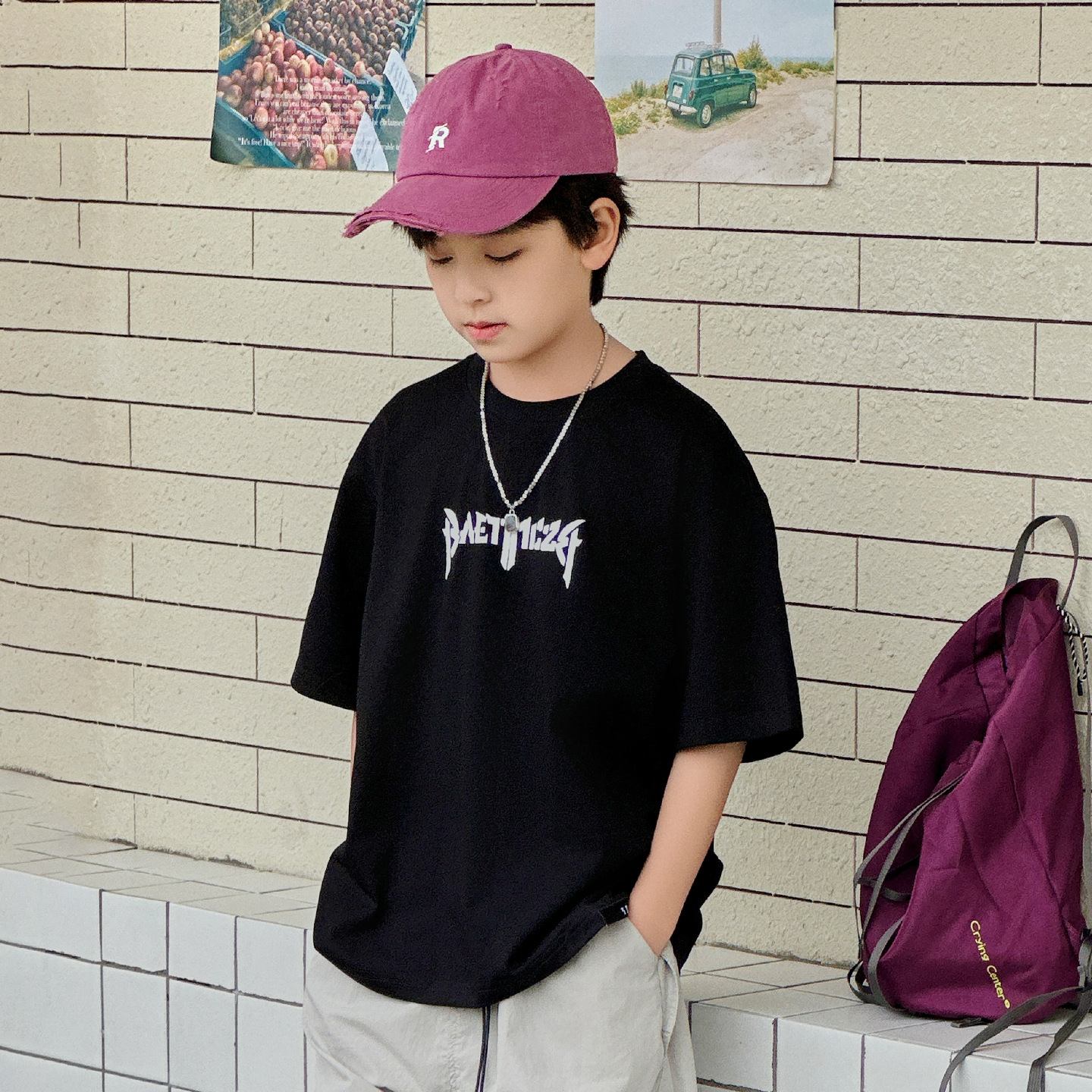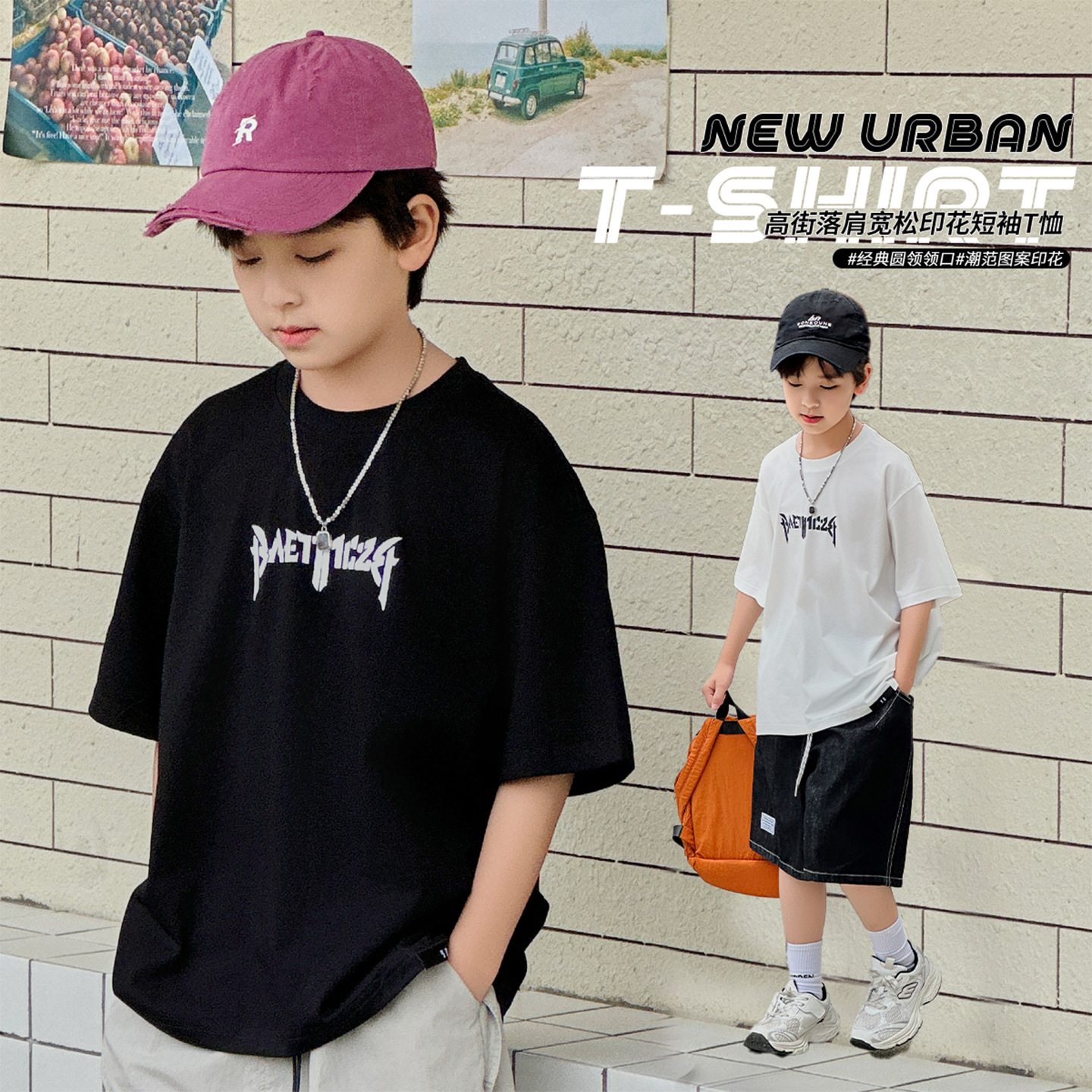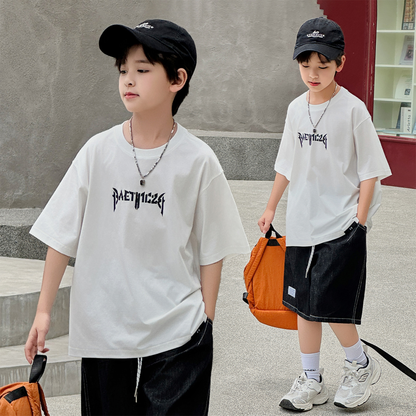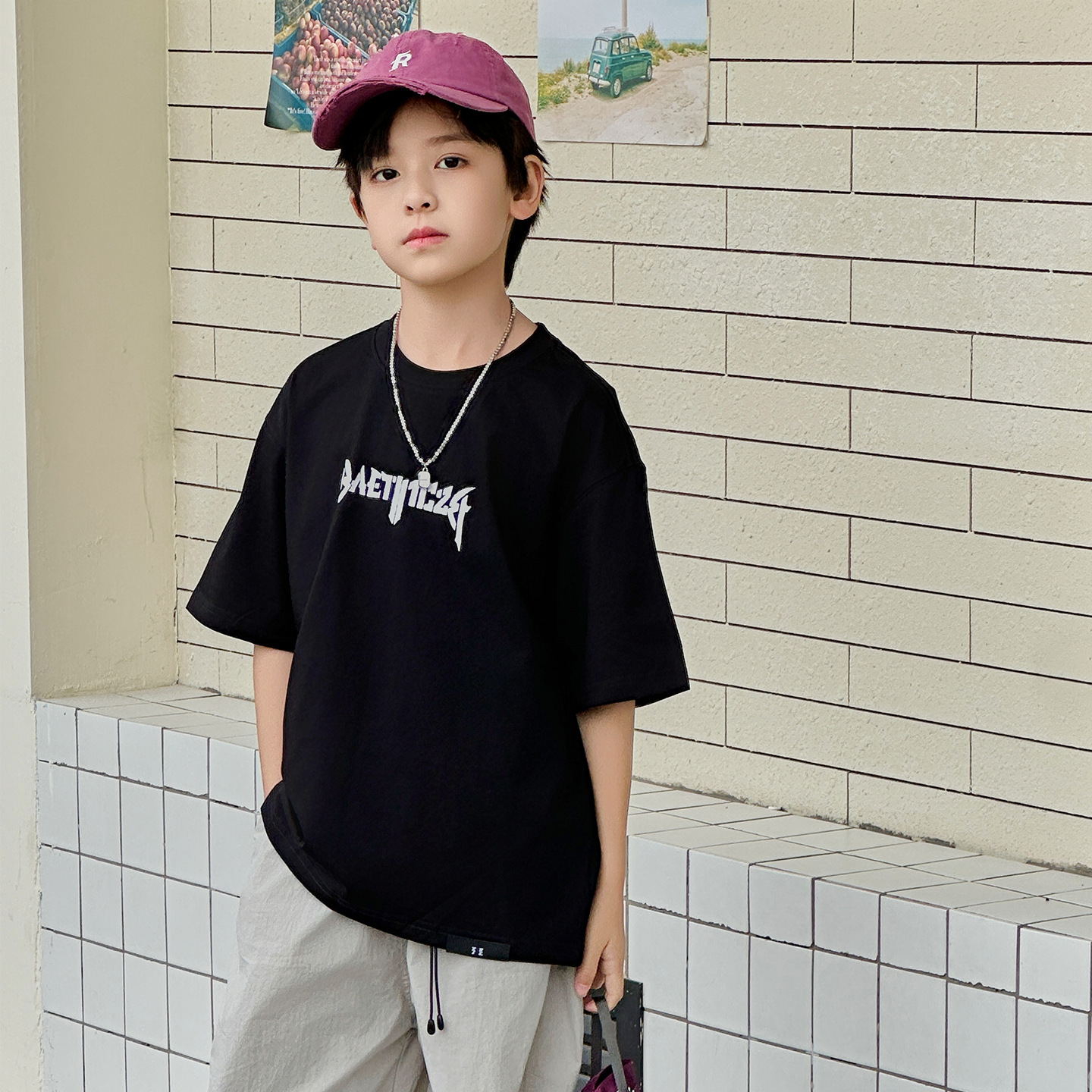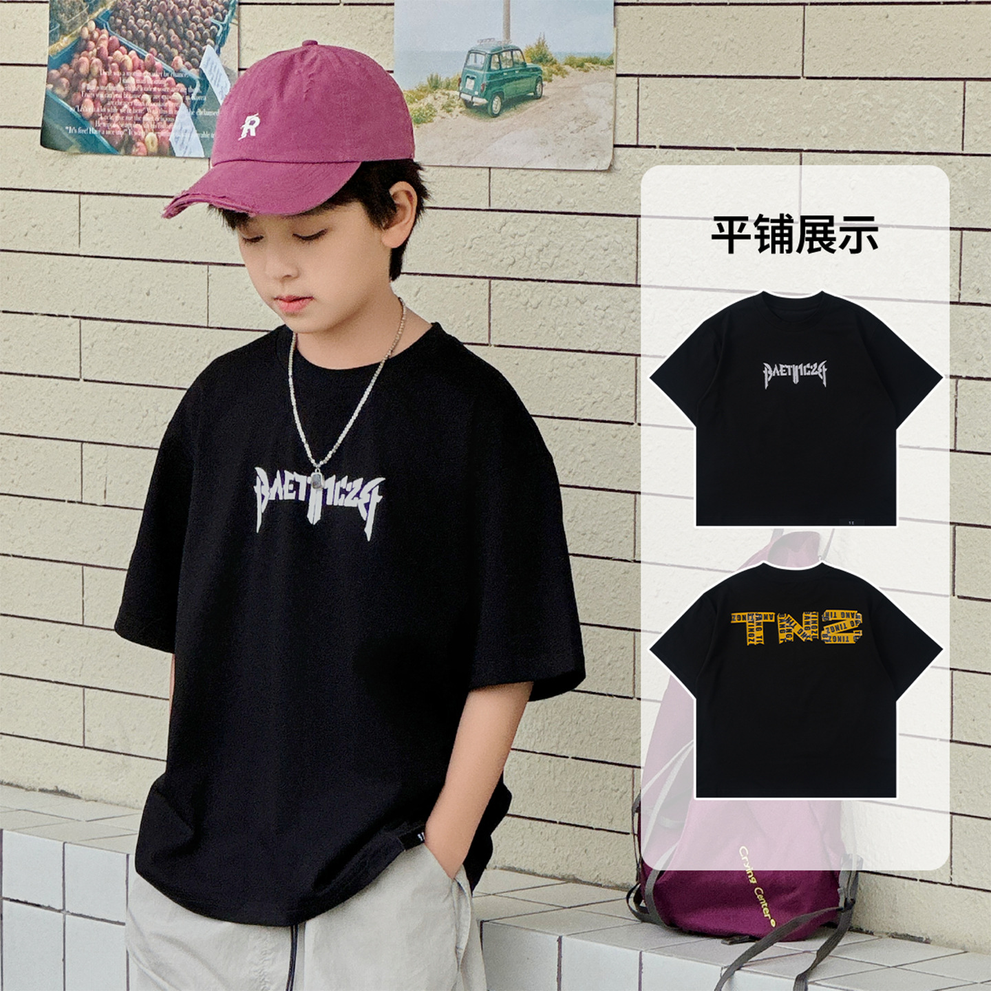 아동용 반팔 티셔츠 2025 소년 여름 신작 트렌디 브랜드 프린트 시원한 디자인 루즈한 반팔 탑스토어 가기